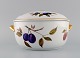 Royal Worcester, England. Stor Evesham lågterrin i porcelæn dekoreret med frugter og guldkant. 1980'erne. Måler: 25 x 13,5 cm. I flot stand. Stemplet.