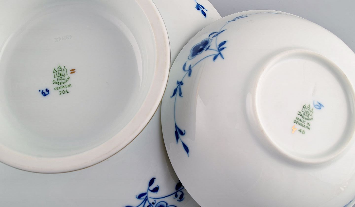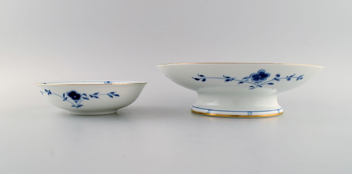 To Bing & Grøndahl Sommerfugl skåle i håndmalet porcelæn med guldkant. Midt 1900-tallet. Største måler: 24,5 x 7 cm. I flot stand. Stemplet. 2. Sortering.