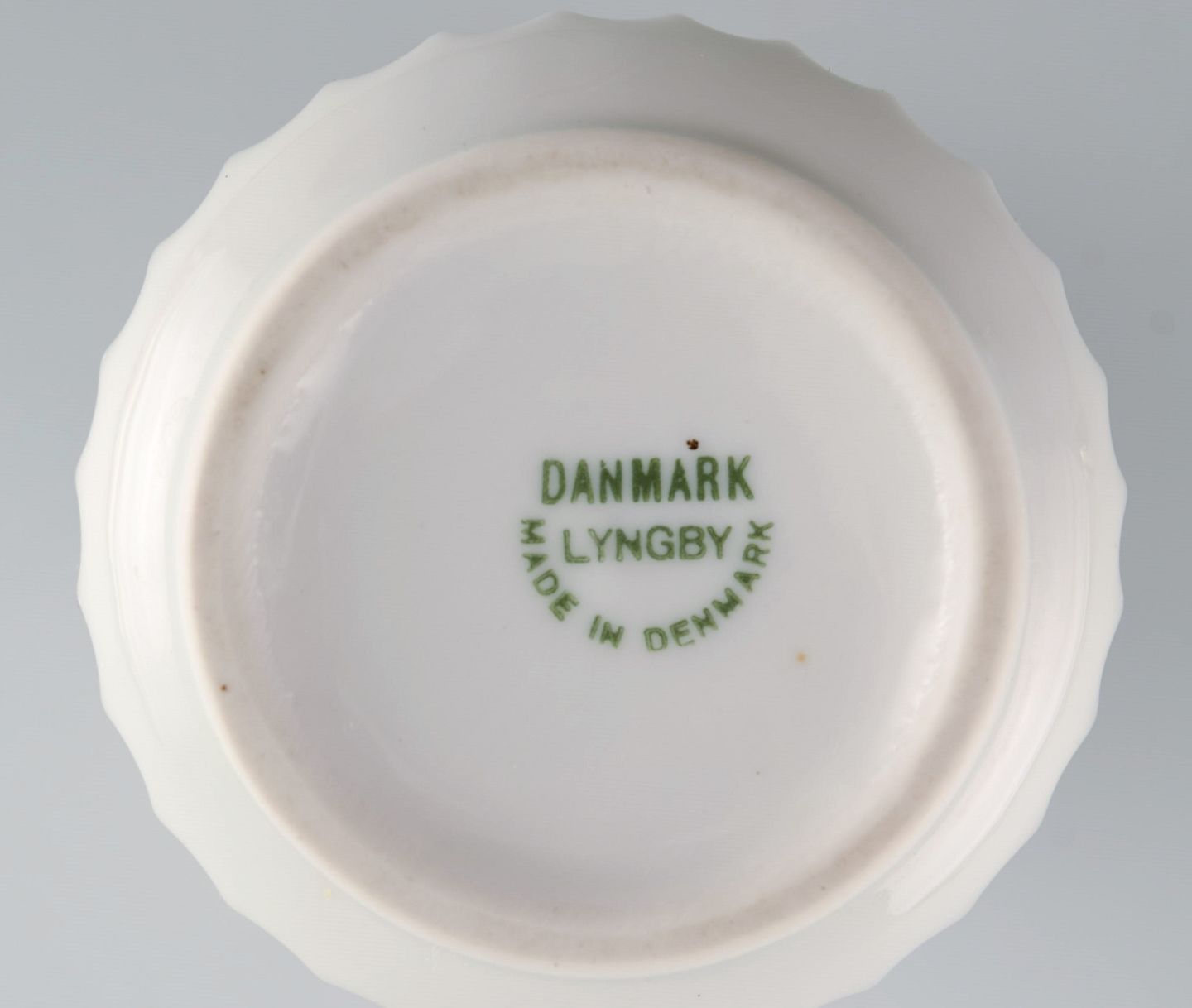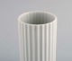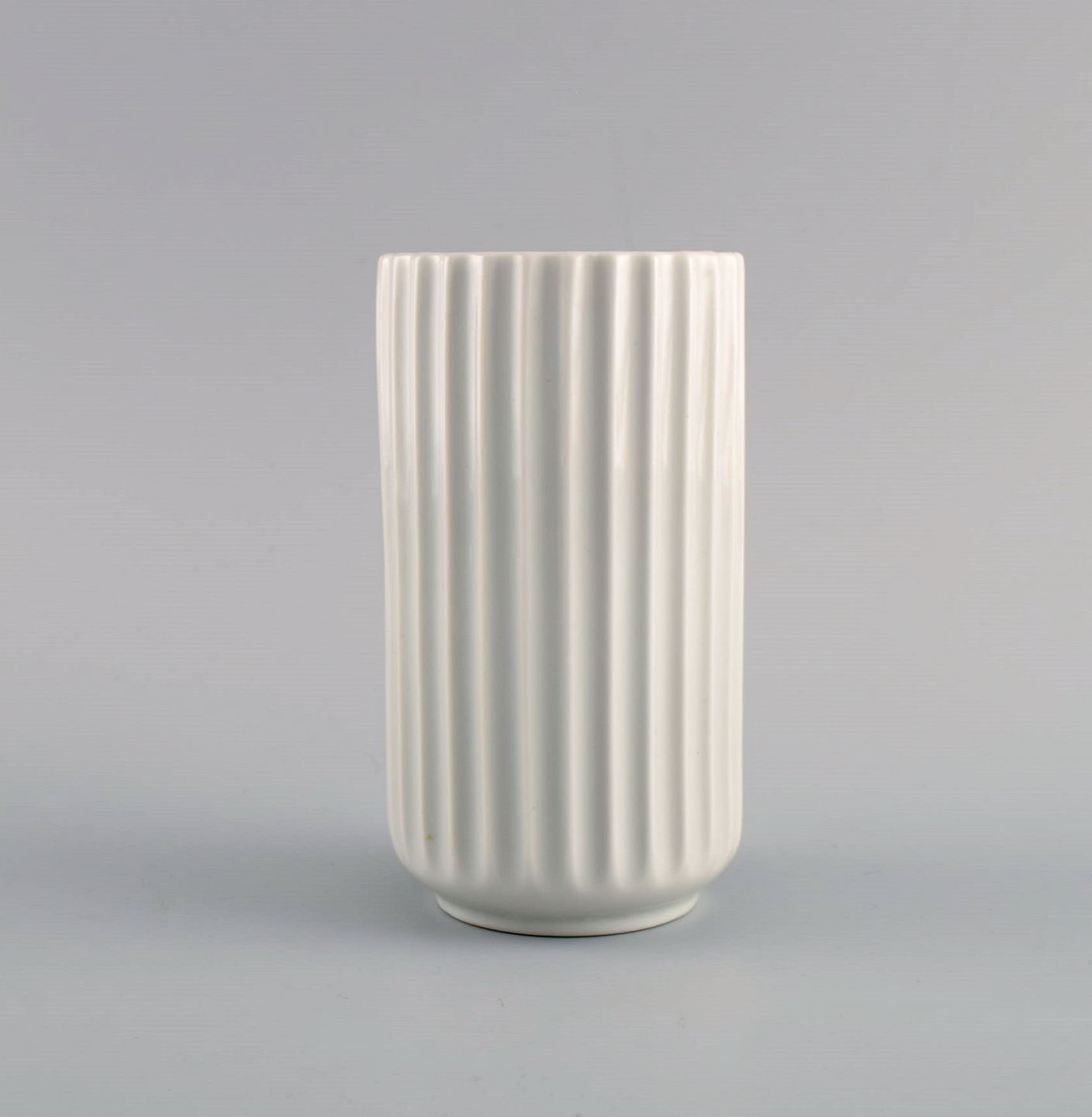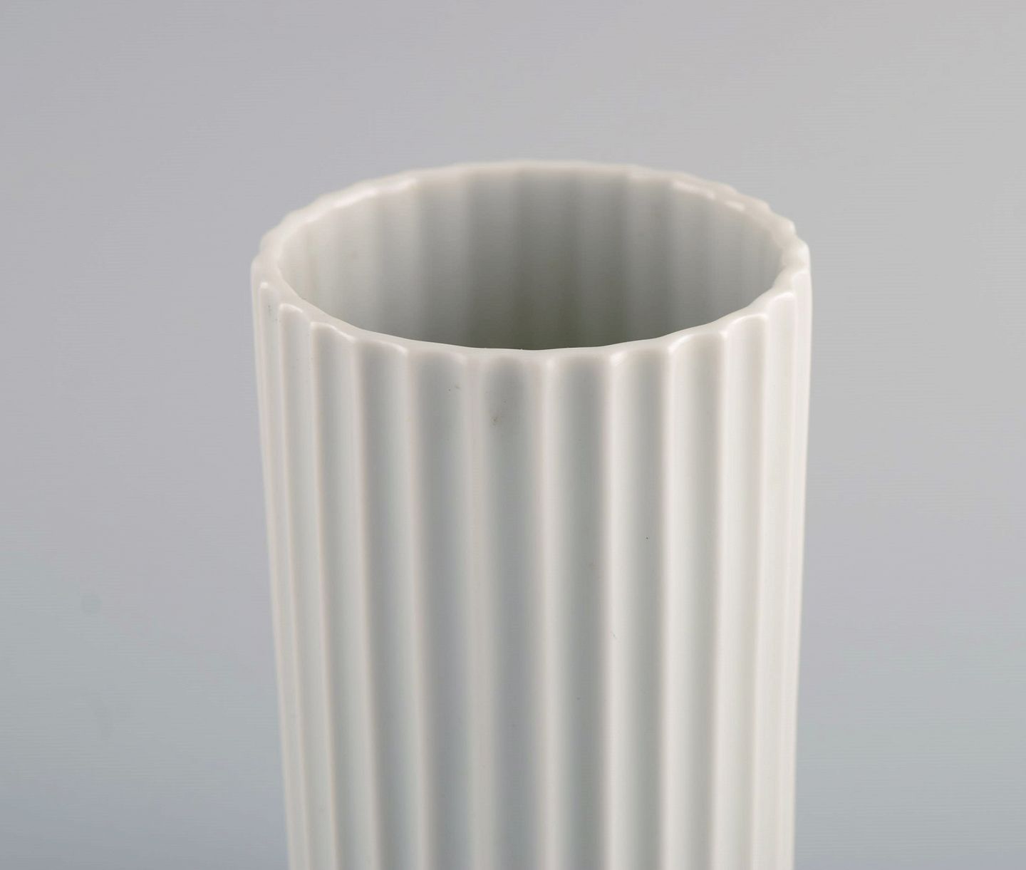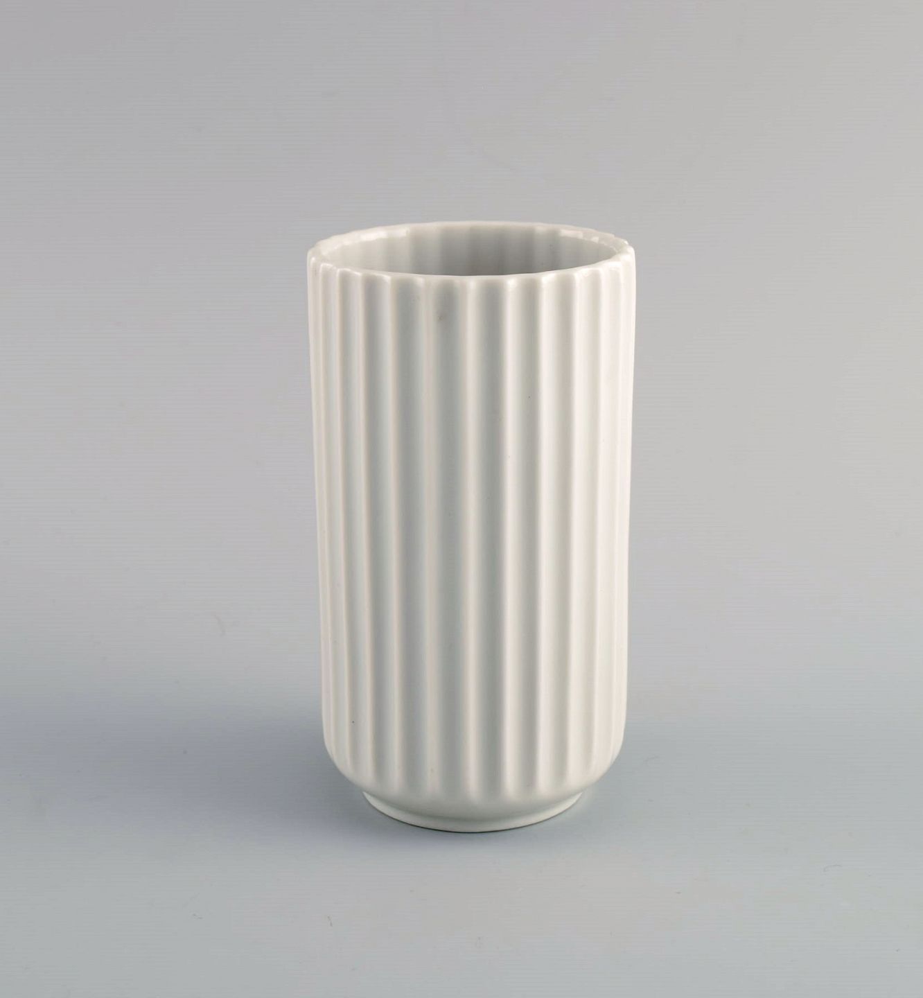 Tidlig Lyngby porcelænsvase med kanneleret korpus. Midt 1900-tallet. Måler: 12,3 x 6,5 cm. I flot stand. Stemplet.