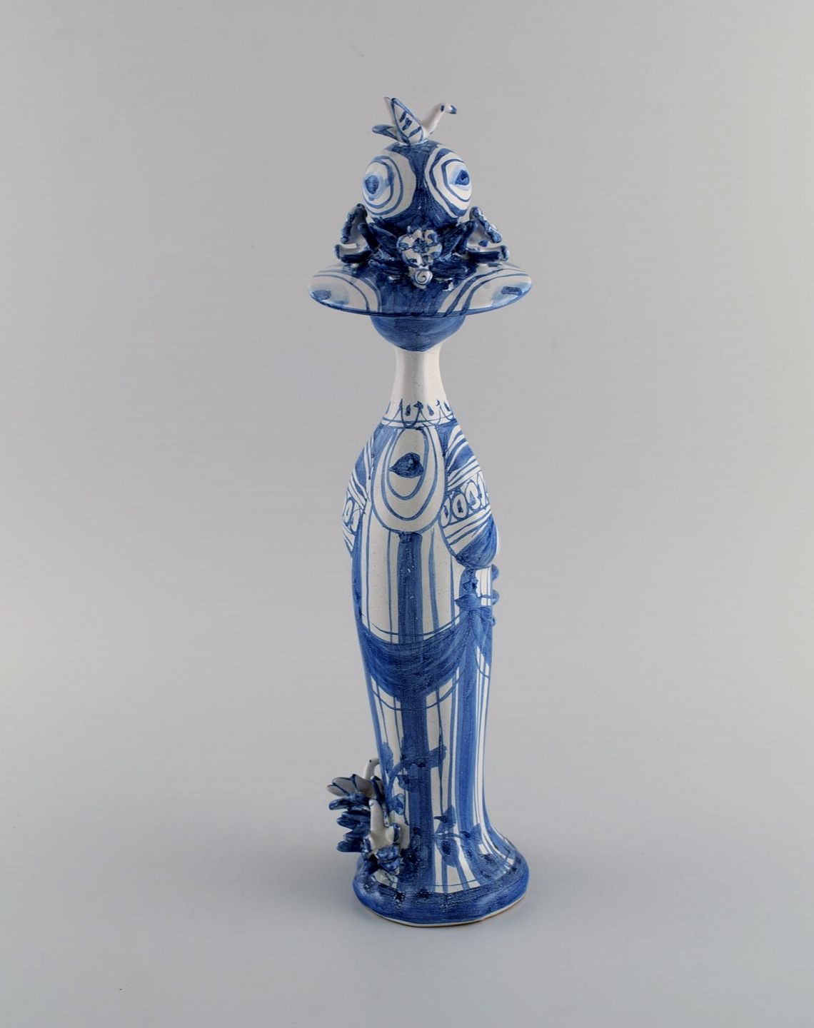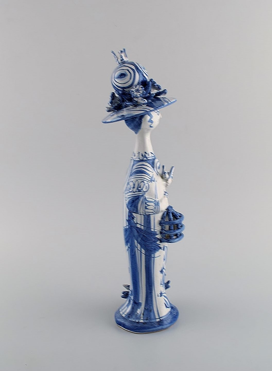 Bjørn Wiinblad unique ceramic figure. "Spring" in blue "Seasons". Signed and dated. 1971. Measures: 36 x 10 cm. In excellent condition.