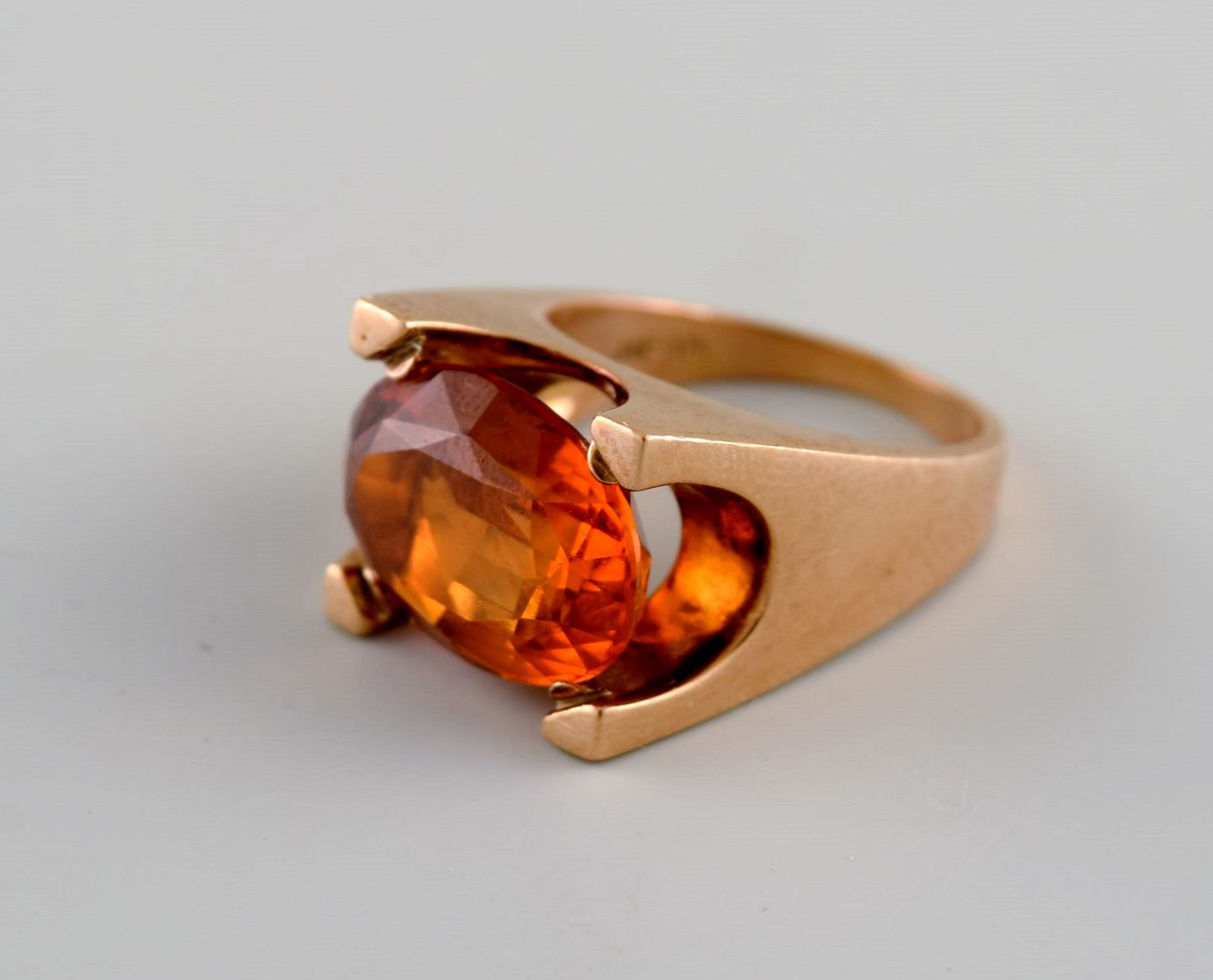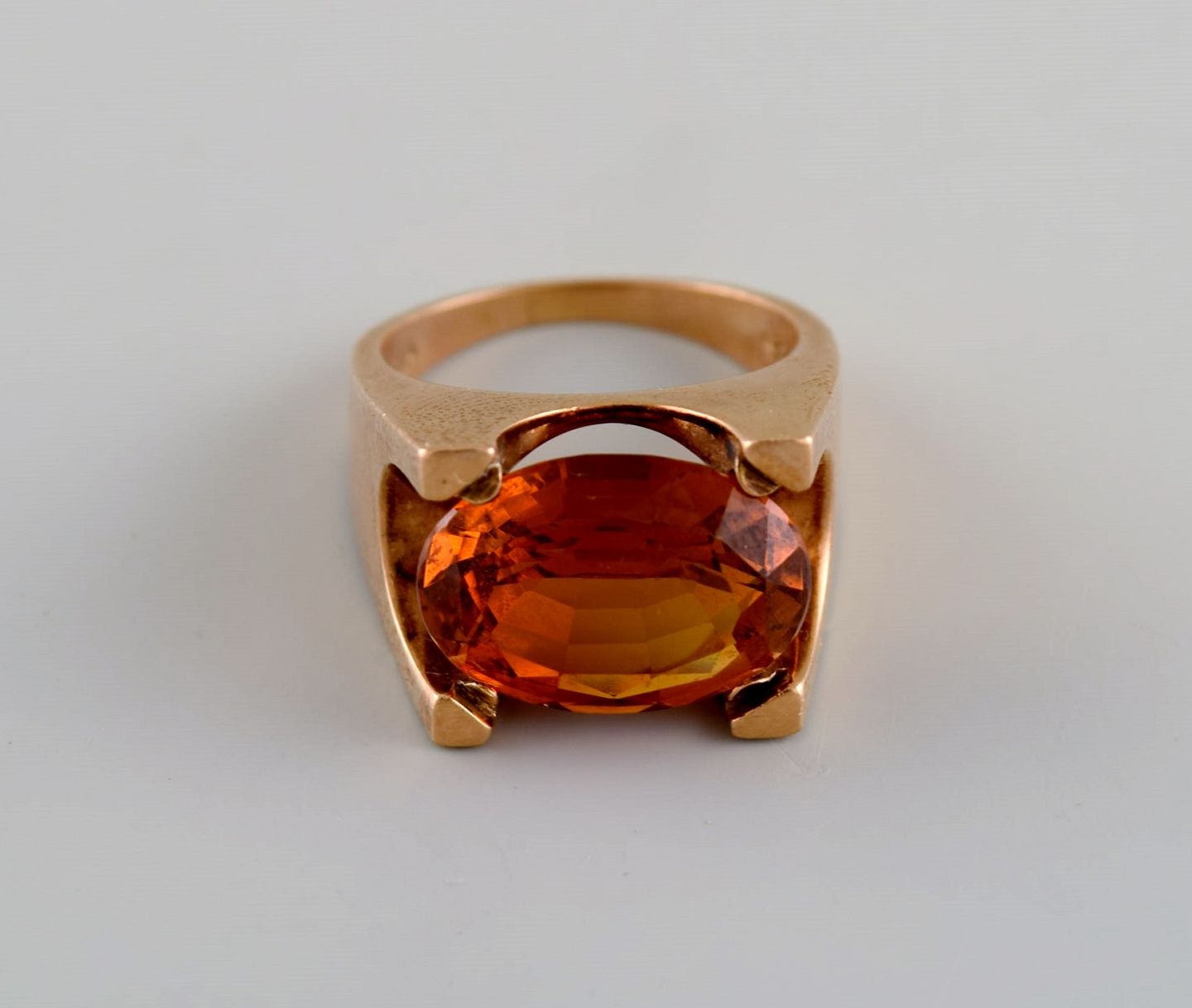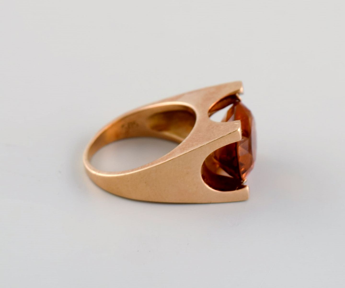 Just Andersen (1884-1943), Danmark. Art deco cocktail ring i 14 karat guld prydet med citrin. Original æske. 1920/30'erne.