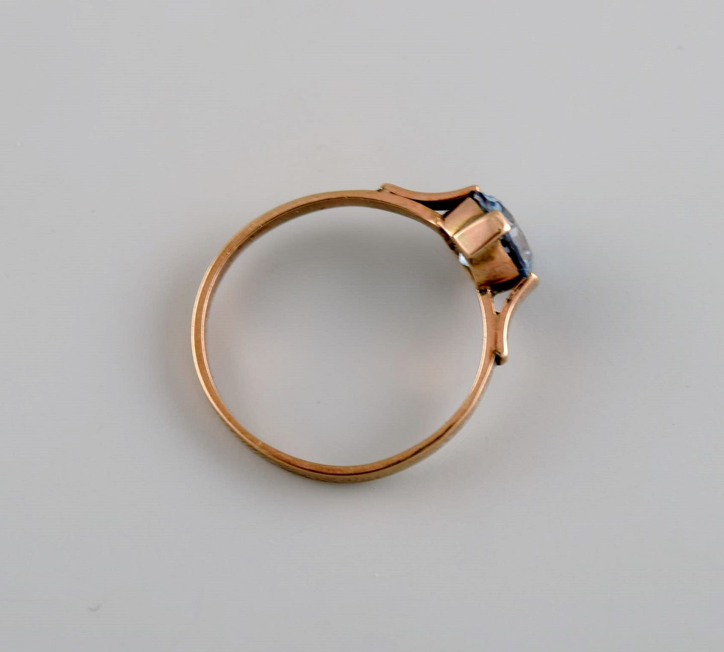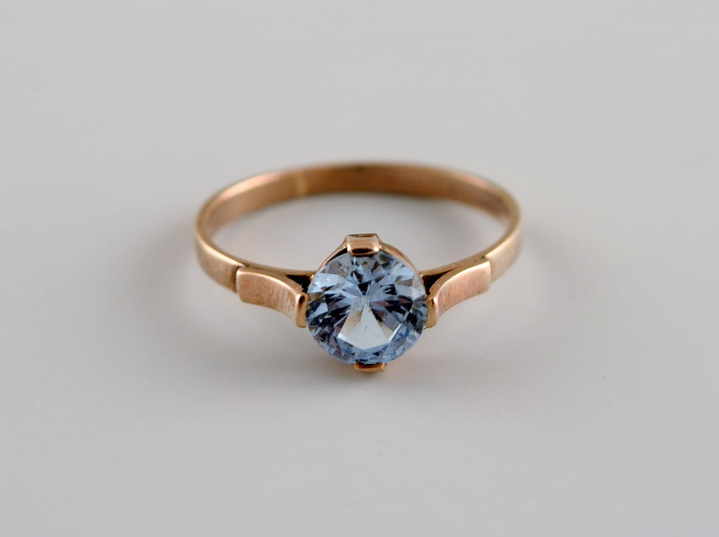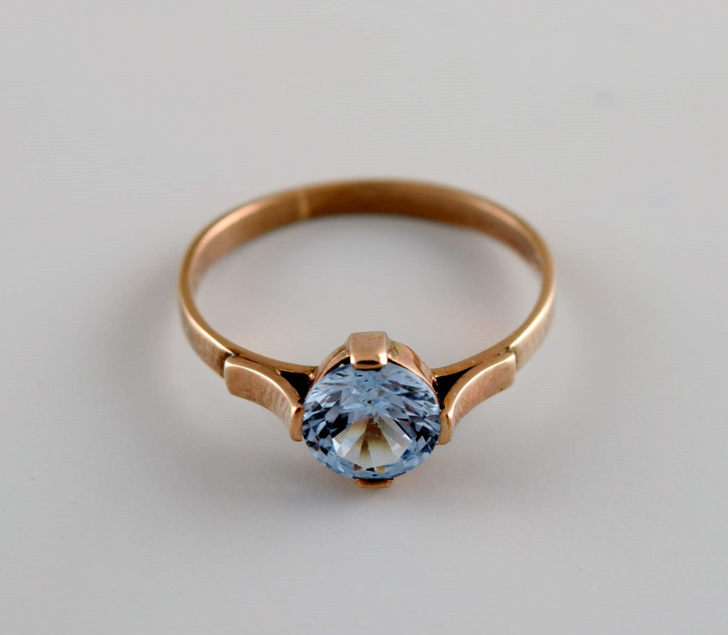 Scandinavian goldsmith. Vintage ring in 14 carat gold adorned with light blue semi-precious stone. Mid 20th century.