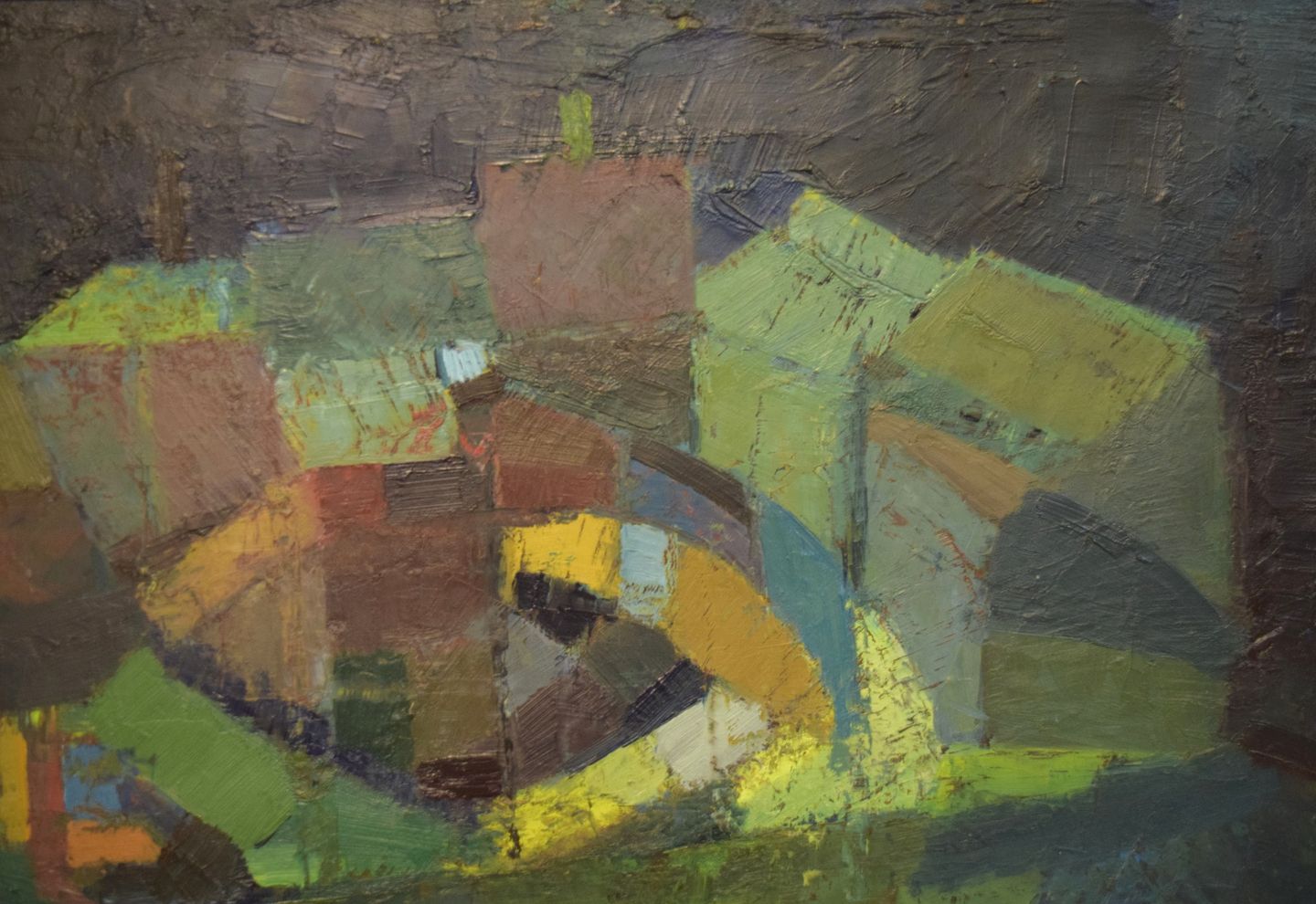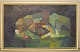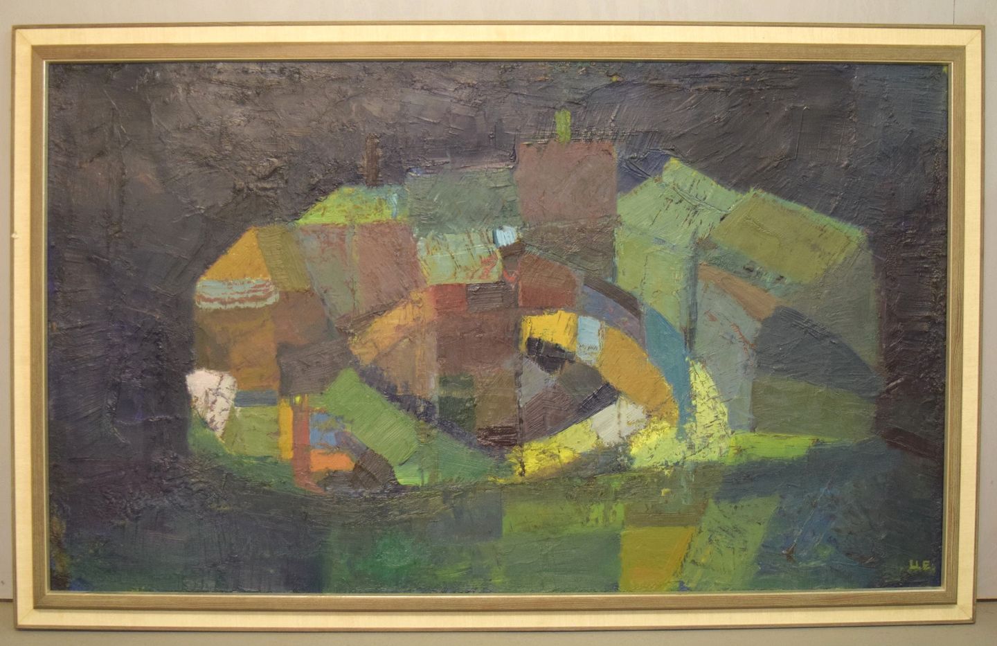 Ulla Ekman-Dahlbäck (1924-2011), svensk kunstner. Stort maleri. Olie på lærred. Abstrakt komposition. 1960'erne. Lærredet måler: 108 x 63 cm. Rammen måler: 5 cm. I flot stand. Signeret.