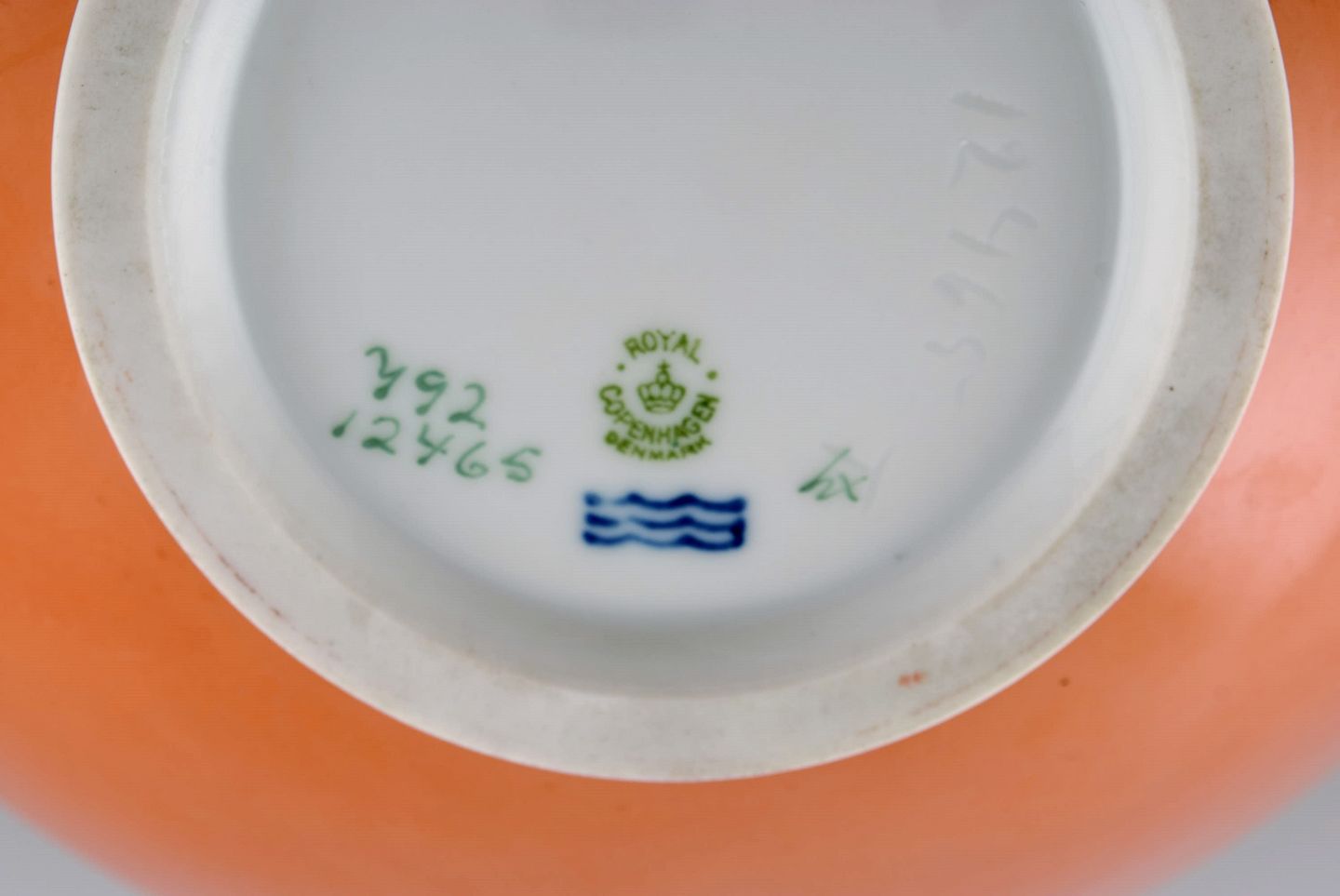 Royal Copenhagen Jægersborg porcelænsskål. Orange med gulddekoration. 1920'erne.