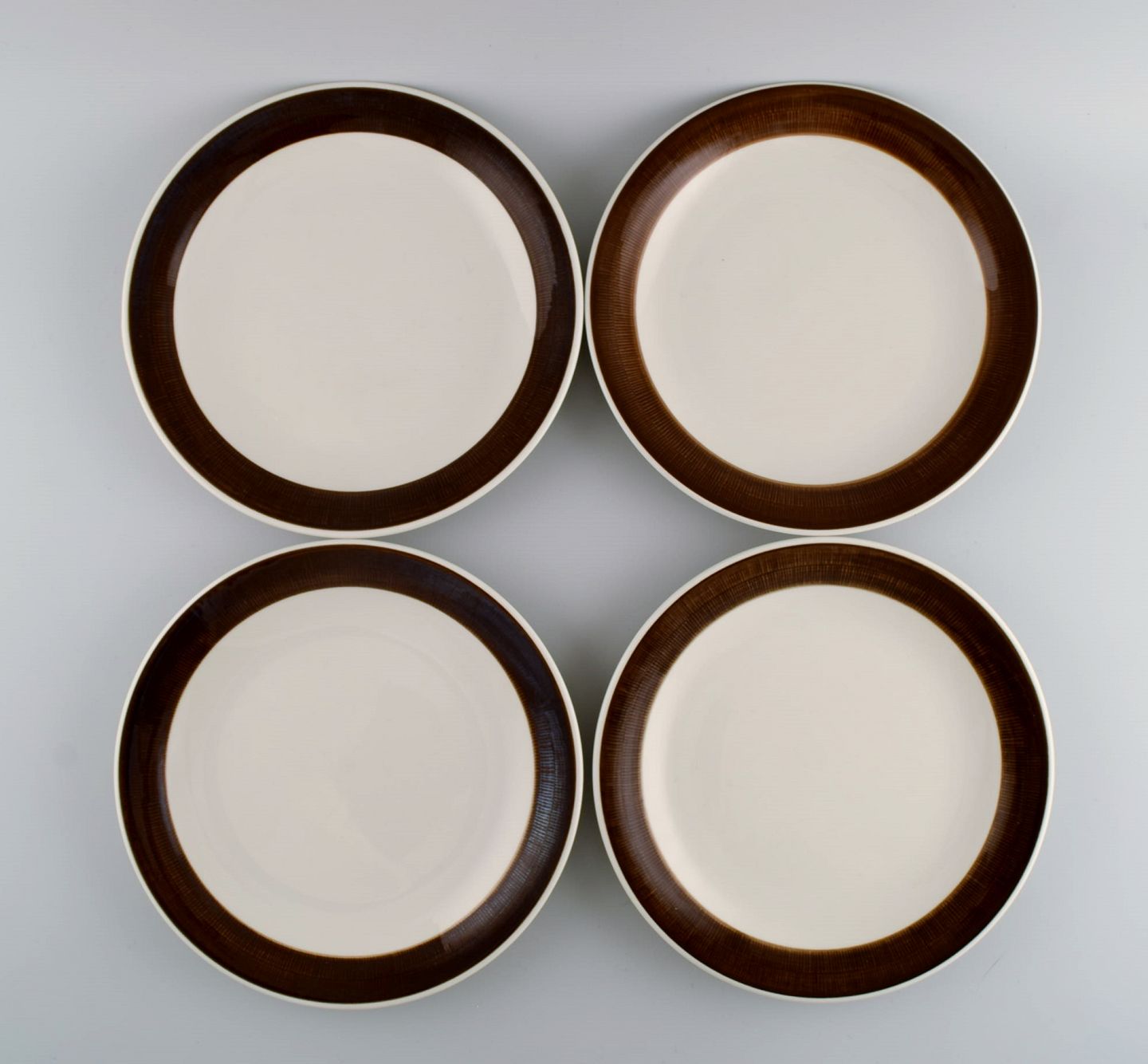 Hertha Bengtson (1917-1993) for Rörstrand. Fire Koka middagstallerkener i glaseret stentøj. 1960'erne.