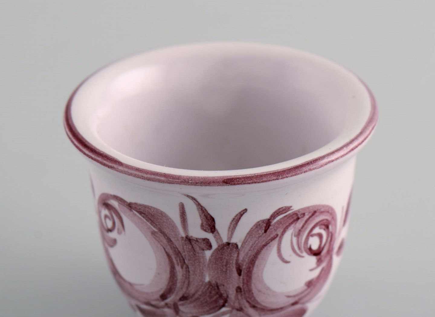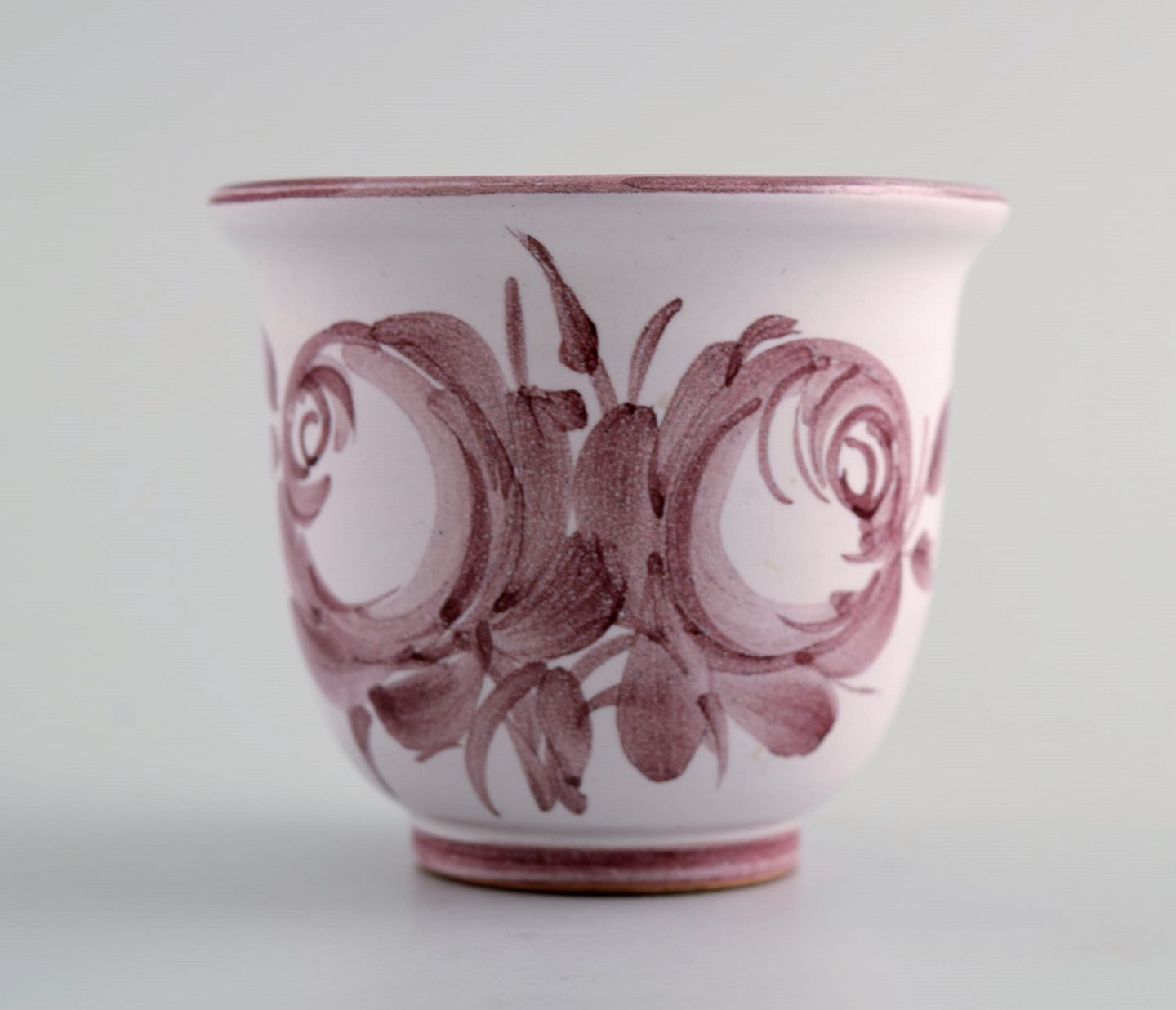 Bjørn Wiinblad (1918-2006), Danmark. Lille unika skål / vase i keramik med håndmalede lyserøde blomster. 1970'erne. Måler: 6 x 5,2 cm. I flot stand. Signeret.
