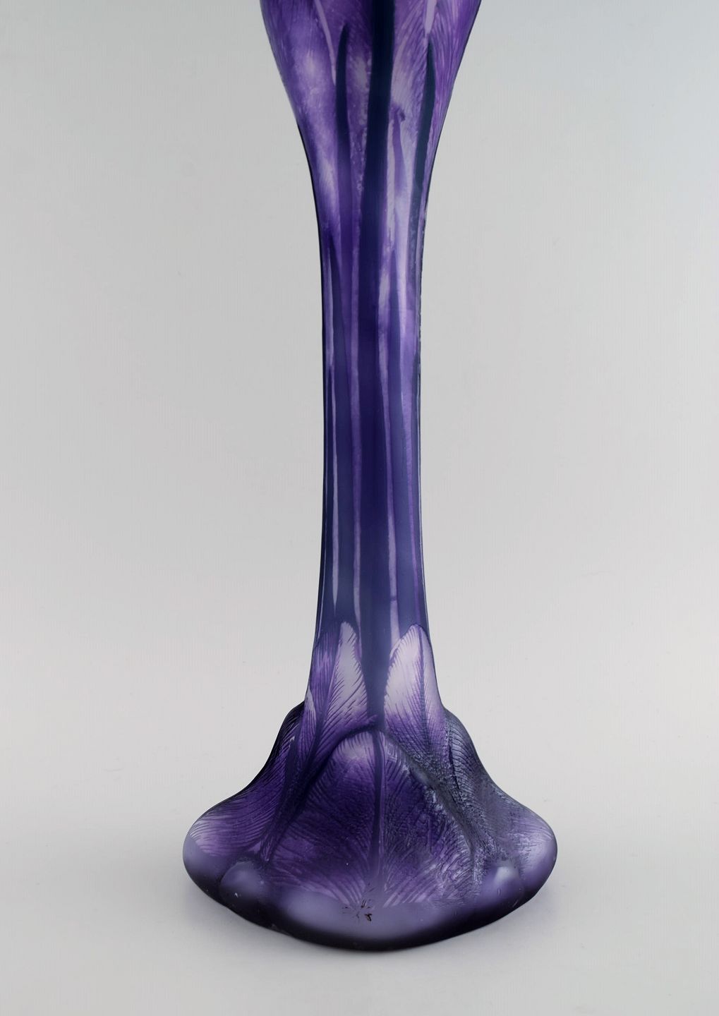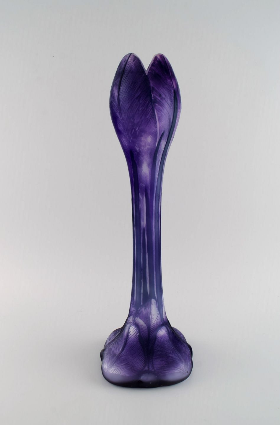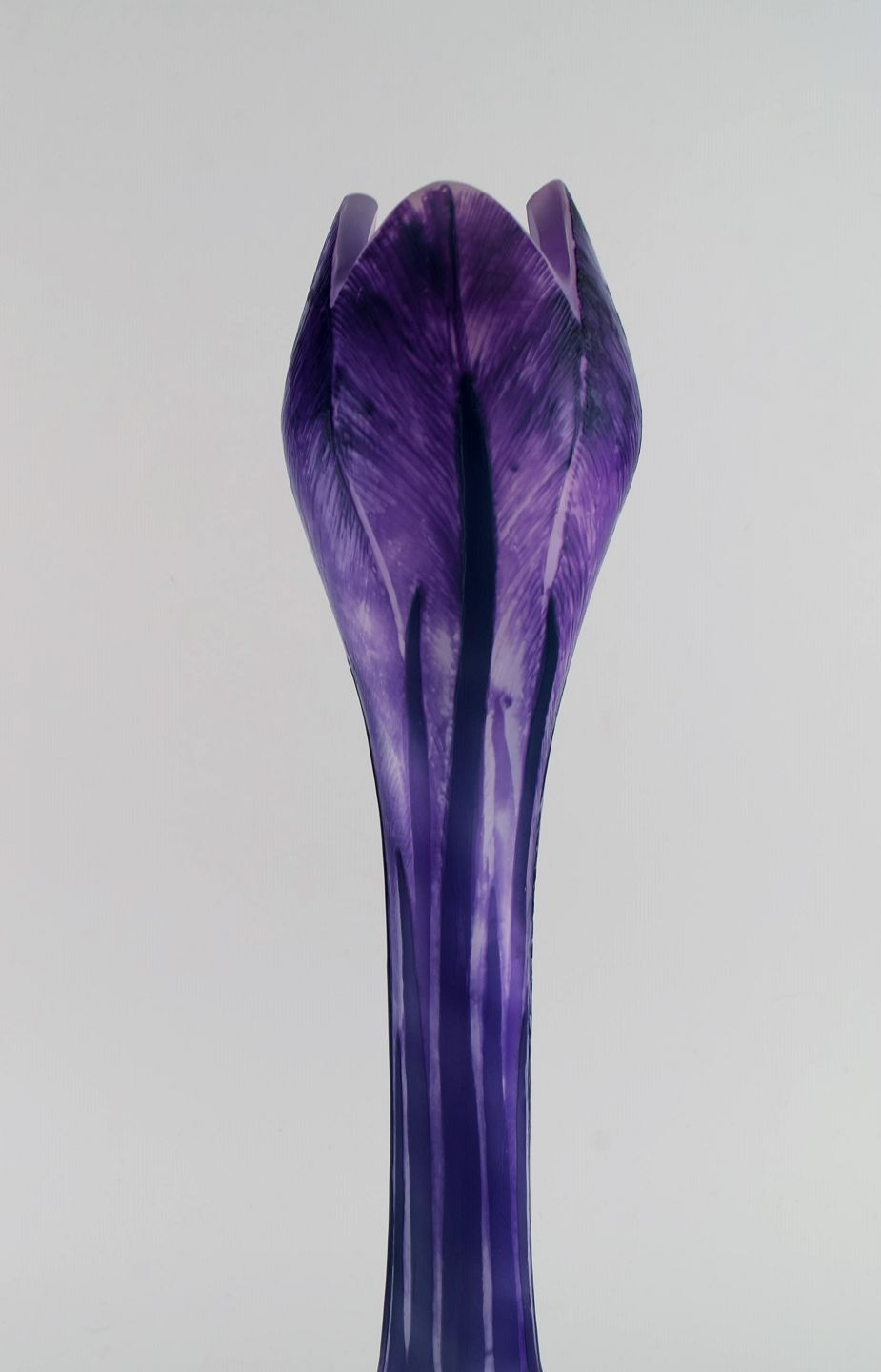 Daum Nancy, Frankrig. Stor art nouveau vase i lilla mundblæst kunstglas. Organisk formet som blomst. Tidligt 1900-tallet.
