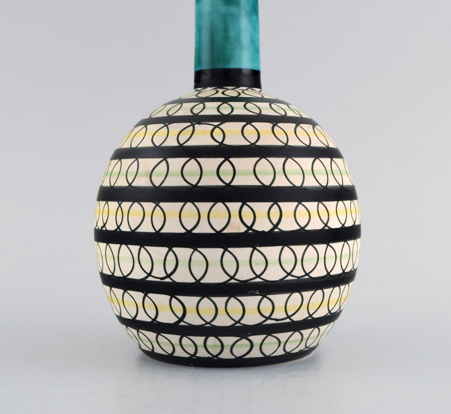 Svensk keramiker. Unika vase i glaseret stentøj. Farverig dekoration. Dateret 1959. Måler: 29 x 13 cm. I flot stand. Signeret og dateret.