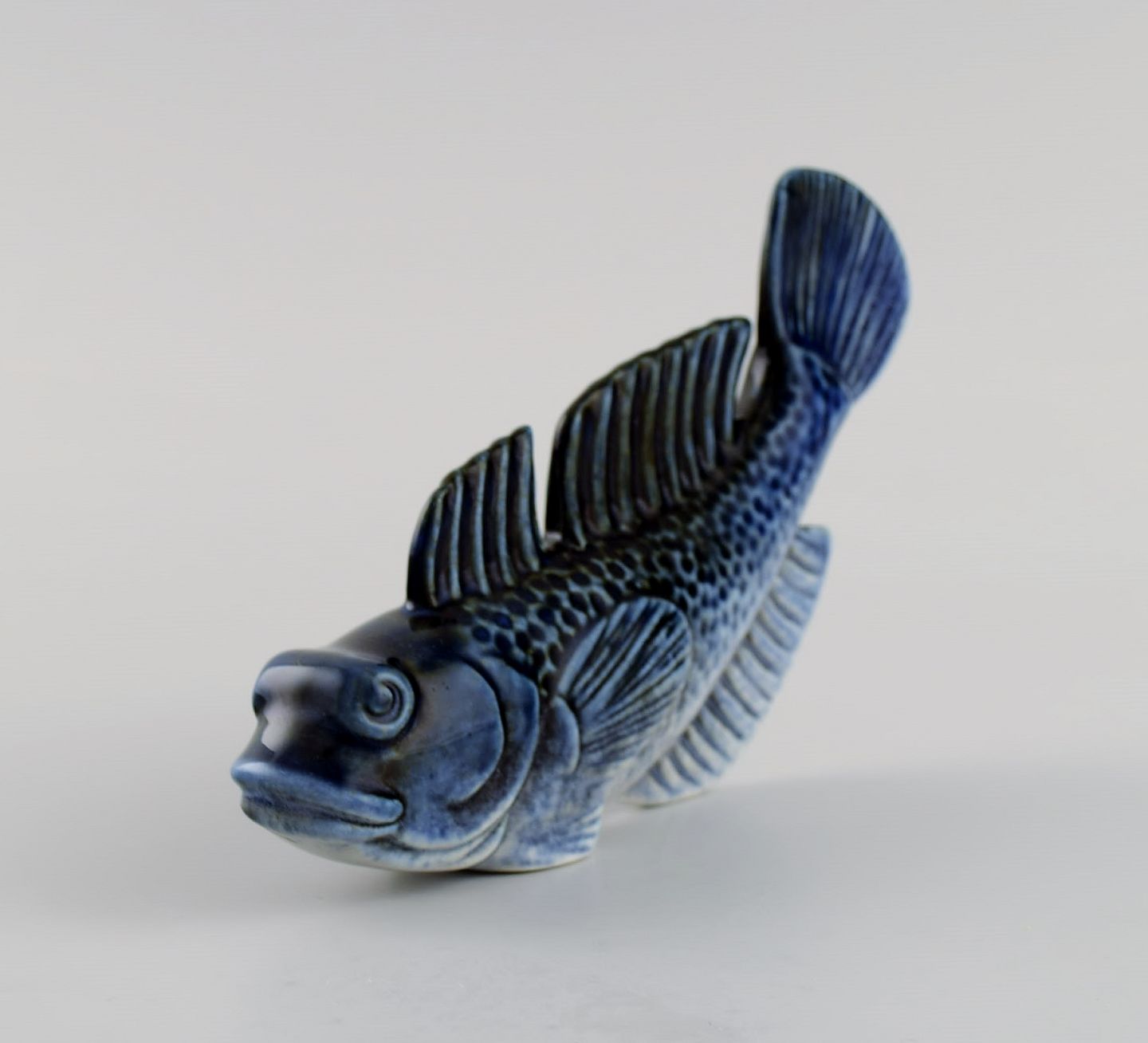 Sven Wejsfelt (1930-2009) for Gustavsberg. Unika Stim fisk i glaseret keramik. Fjæsing. 1980'erne. Måler: 15 x 9 cm. I flot stand. Stemplet.