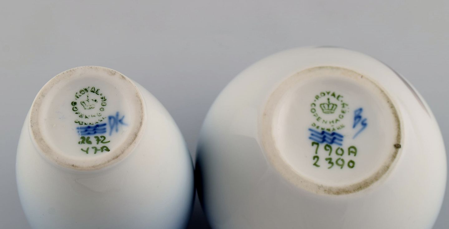 Two Royal Copenhagen vases in hand-painted porcelain with flowers. 1960s. Largest measures: 11.5 x 7 cm. In excellent condition. Stamped.