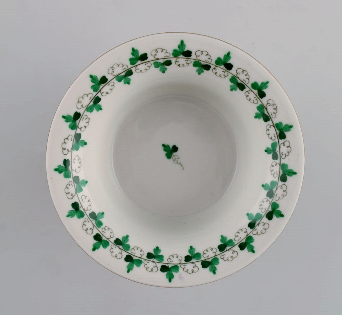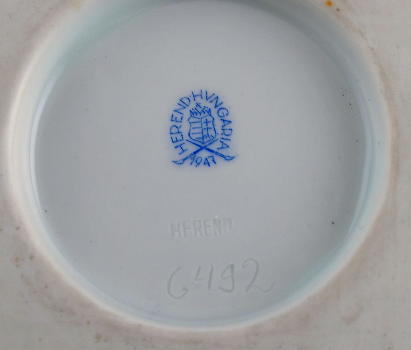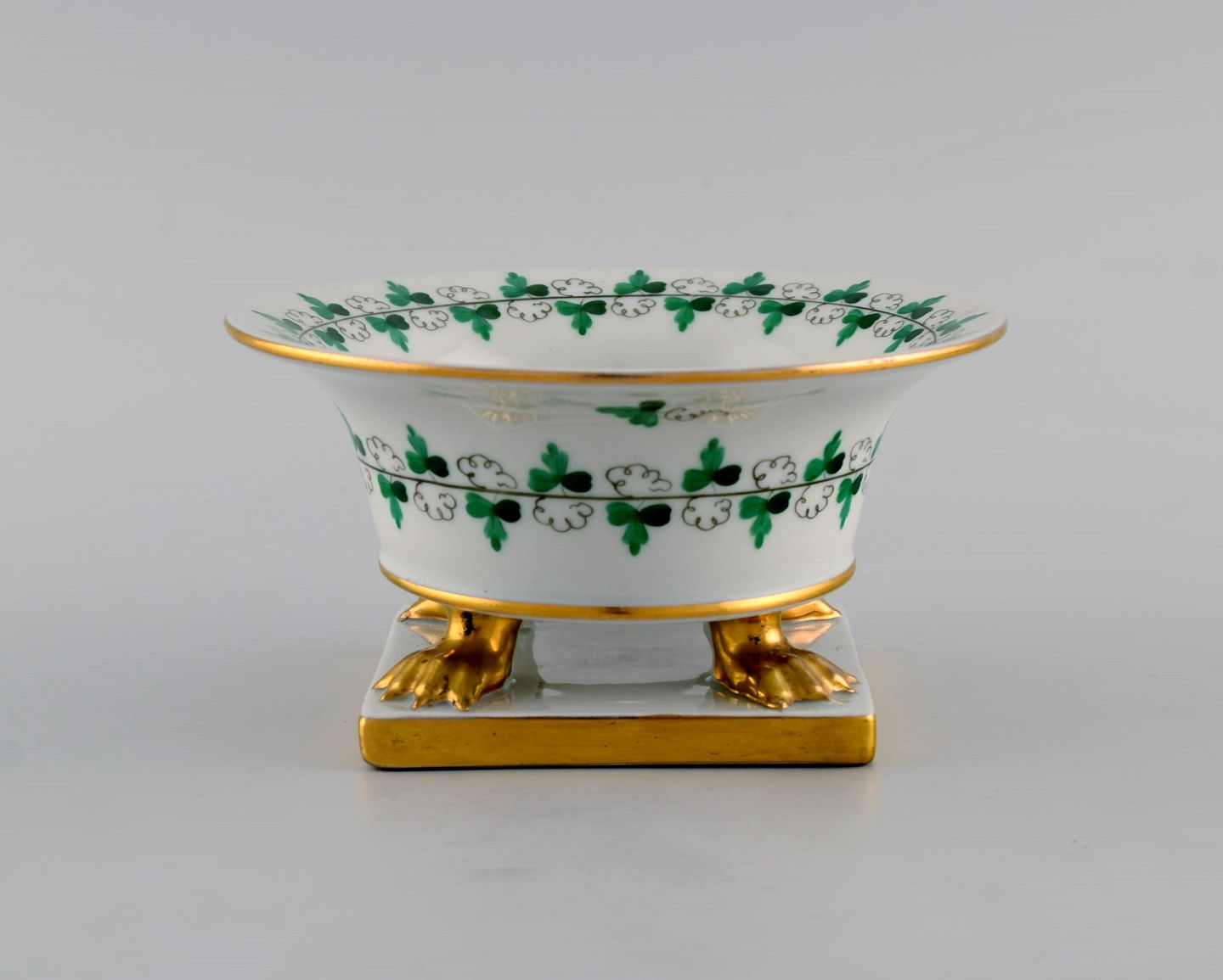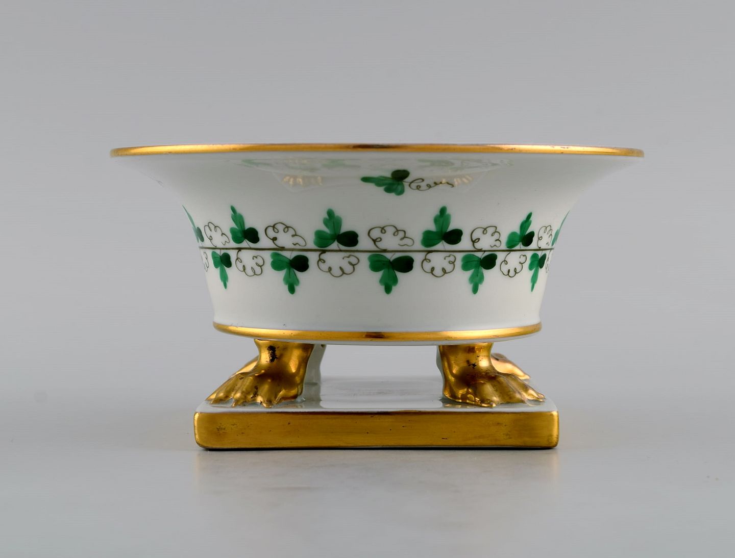 Herend skål på fødder i håndmalet porcelæn med gulddekoration. Midt 1900-tallet.