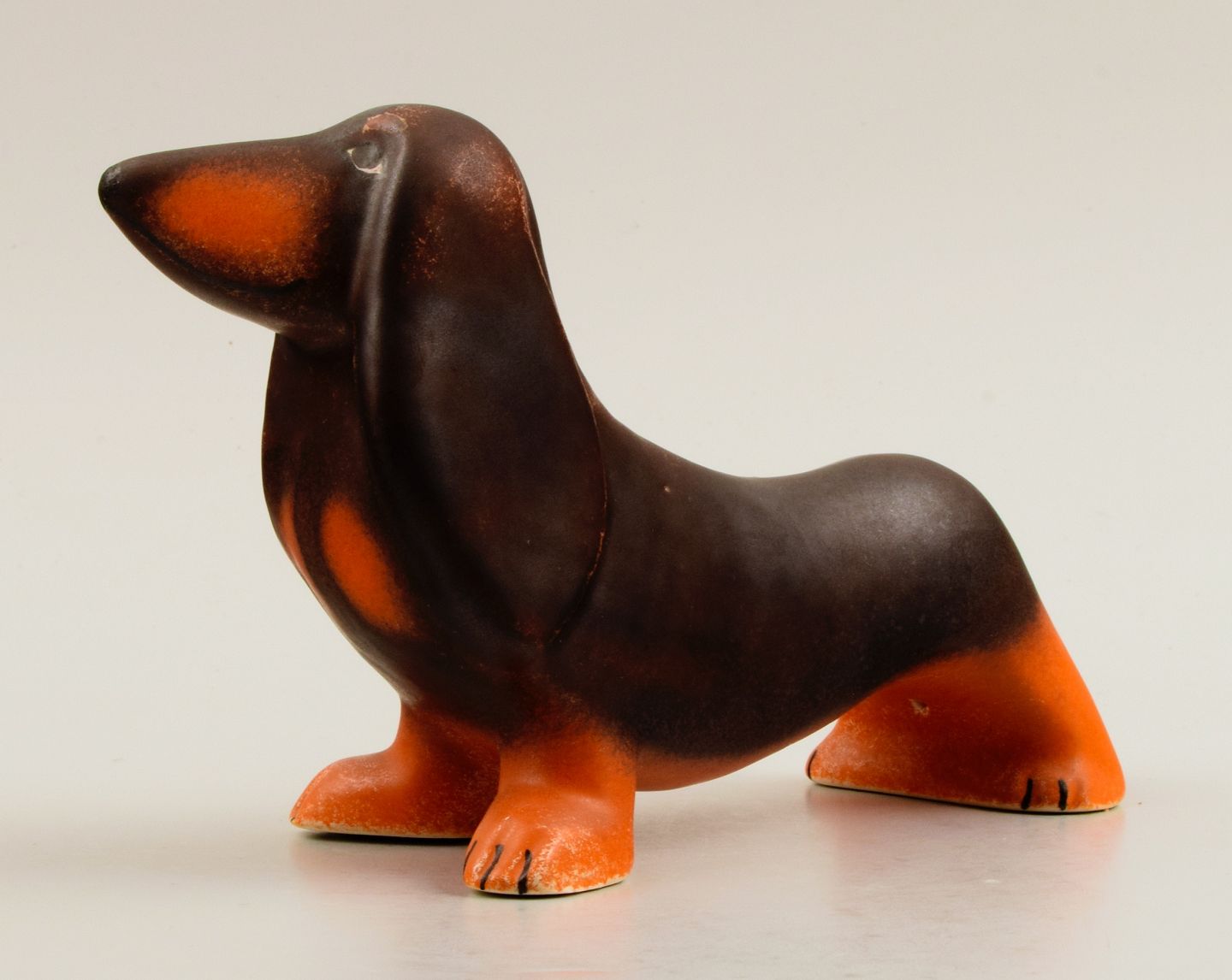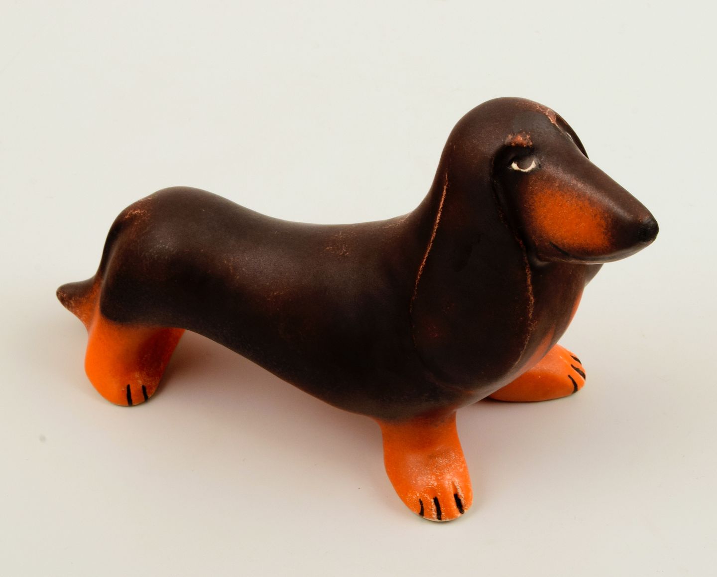 Lisa Larson for K-Studion/Gustavsberg. Gravhund i glaseret keramik. Sent 1900-tallet. Måler: L 15 x H 11 cm. I flot stand. Stemplet.