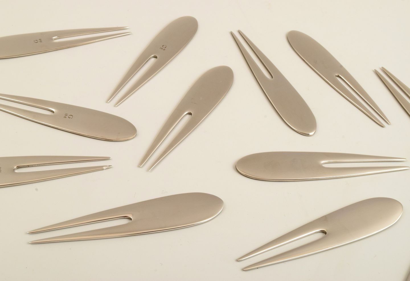 Ten hors d'oeuvre forks. 21st Century.