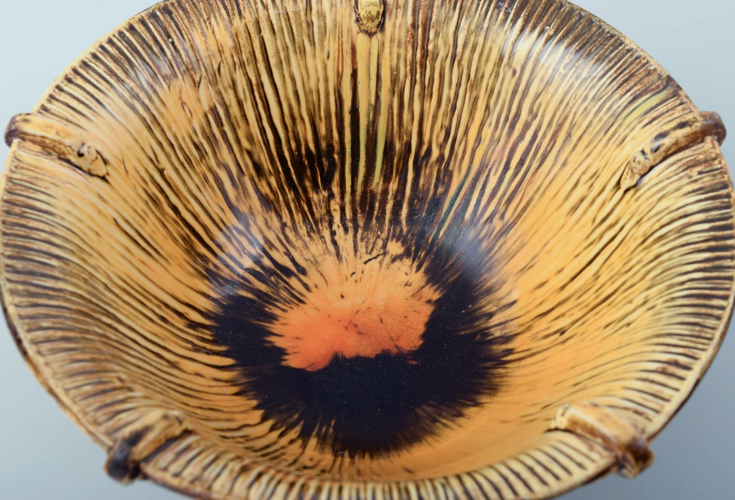 Svend Hammershøi for Kähler, HAK. Stor skål i glaseret stentøj. Smuk gul uranglasur. 1930/40'erne. Måler: D 22,0 cm. x H 8,5 cm. Signeret. I flot stand.