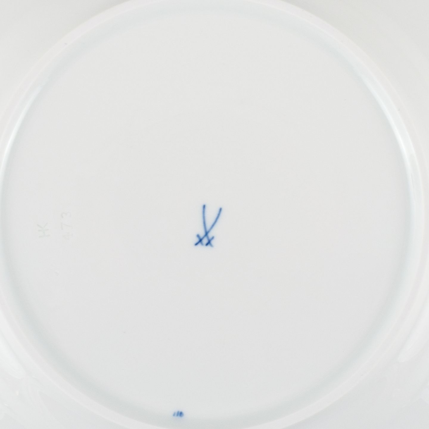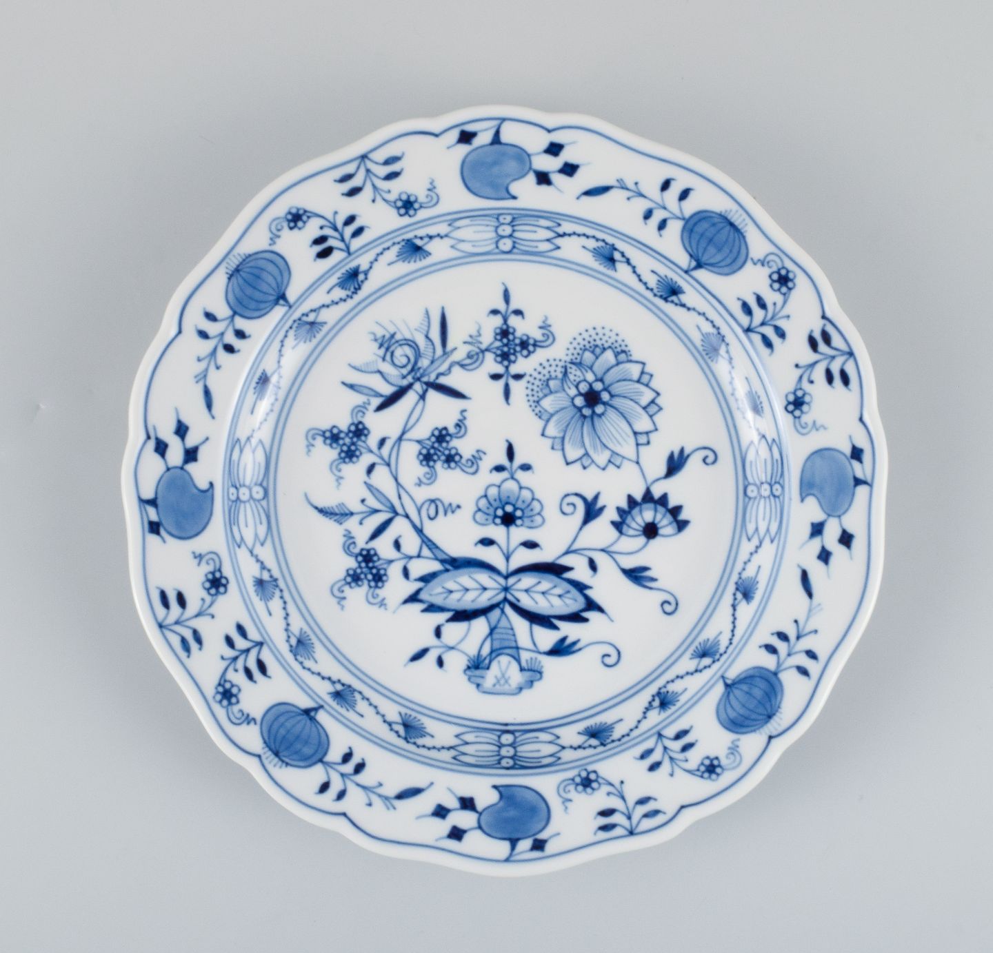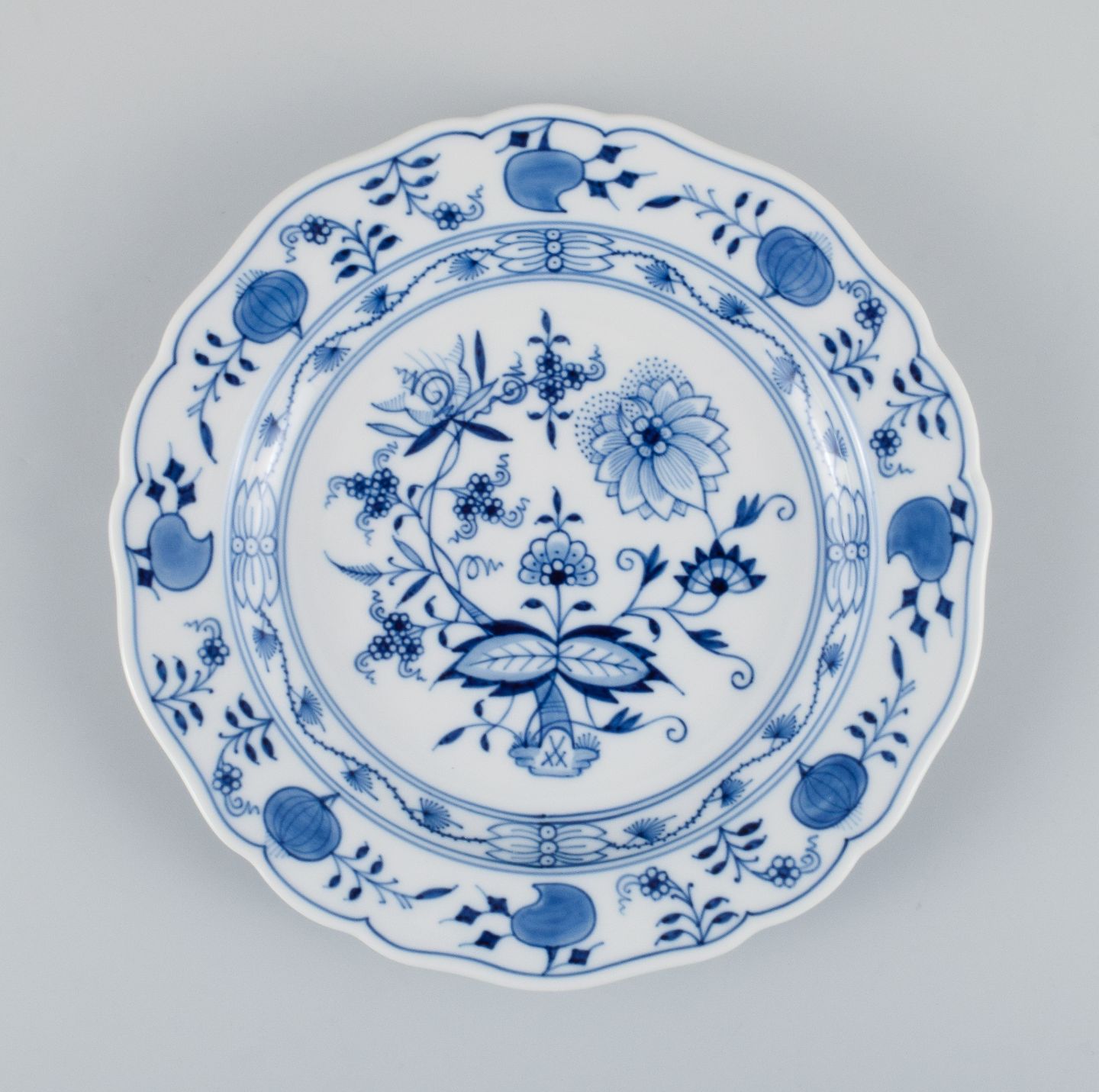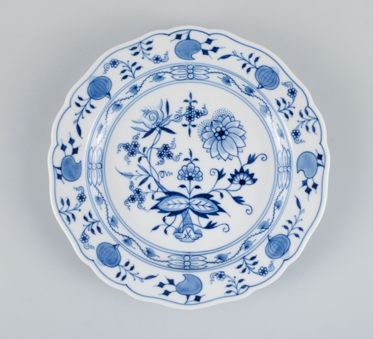 Seks antikke Meissen Løgmønstret frokosttallerkener i håndmalet porcelæn.