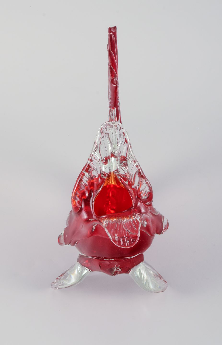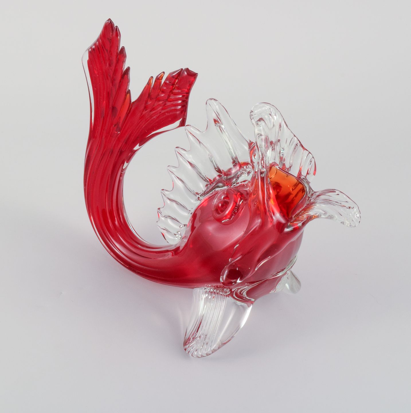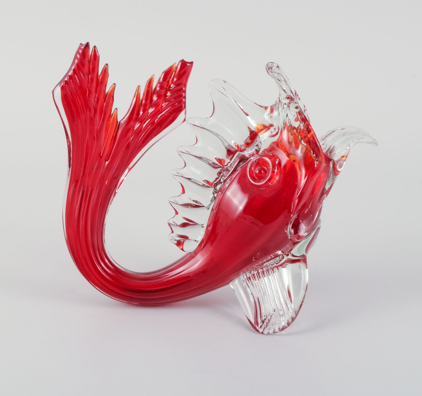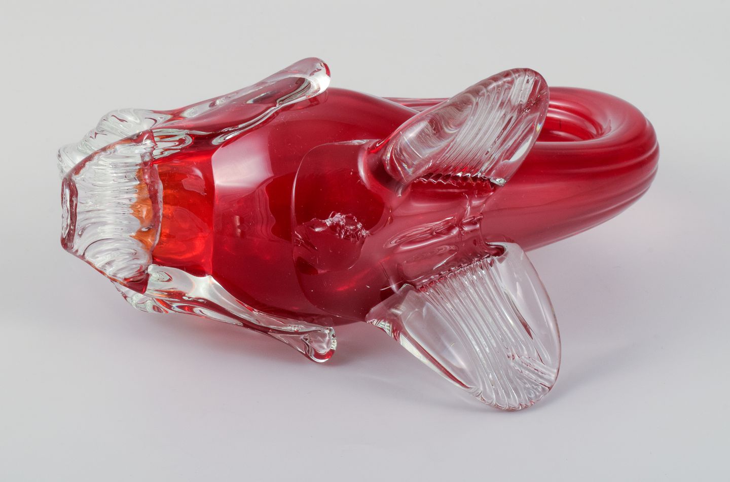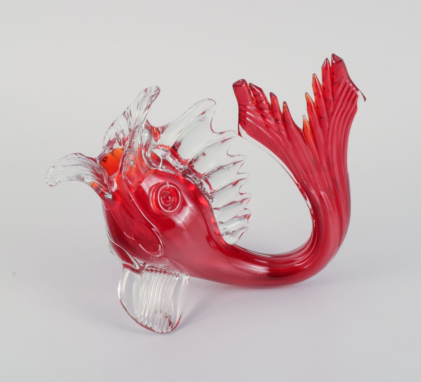 Stor rød Murano fisk i mundblæst kunstglas, 1960/70erne.