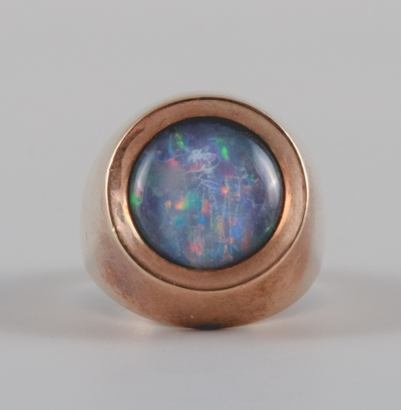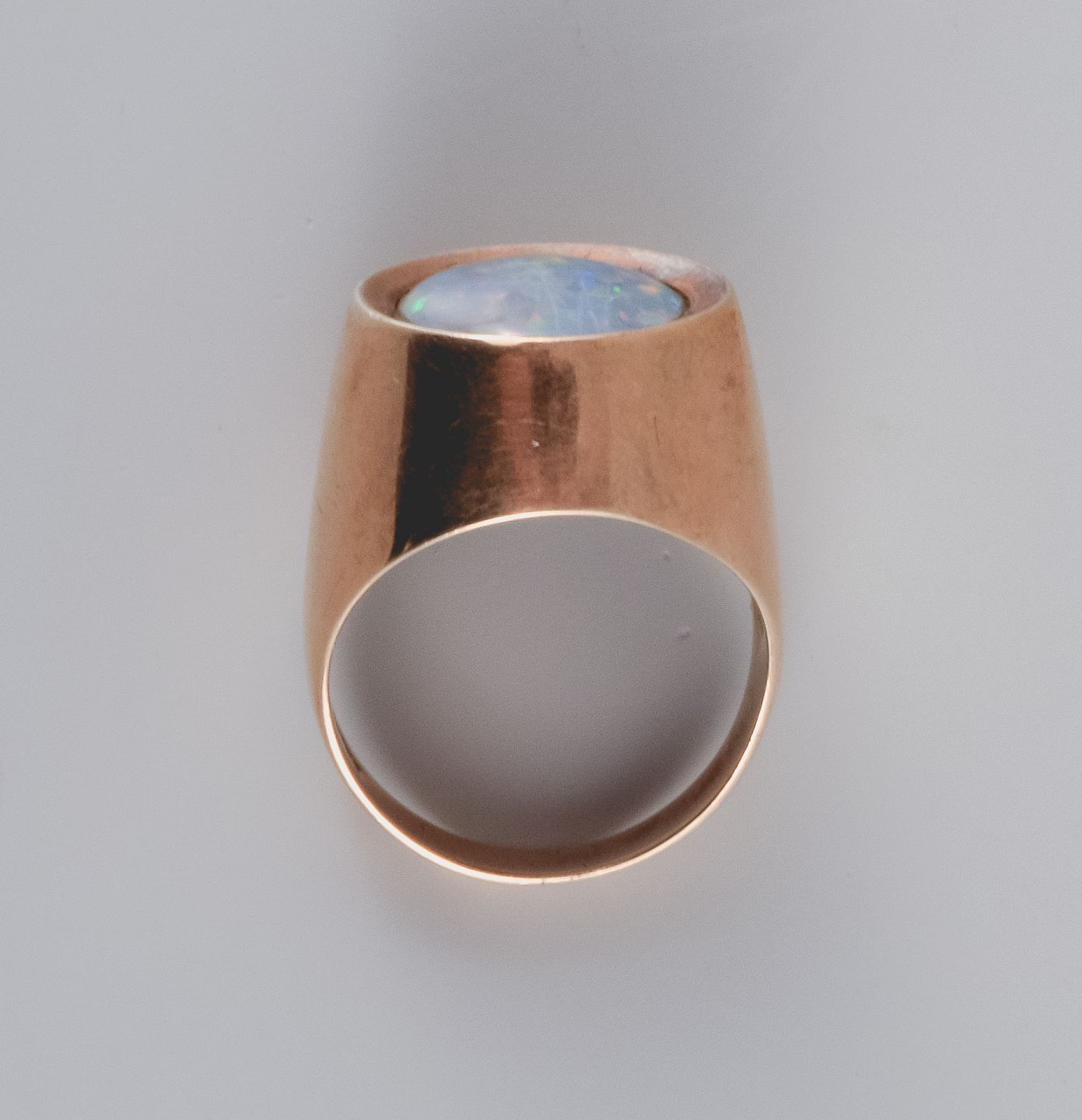 14 karat guldring, skandinavisk guldsmed, prydet med halvædelsten, ca. 1960erne.