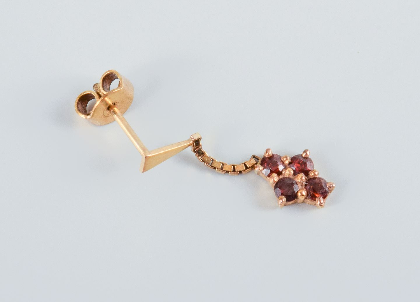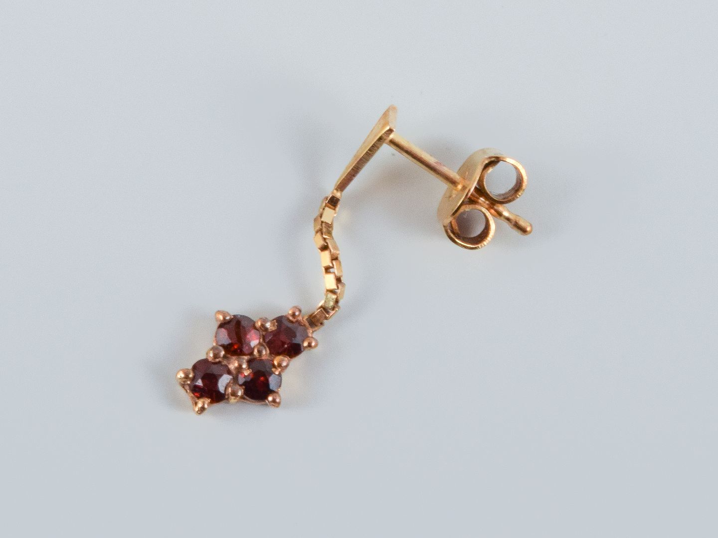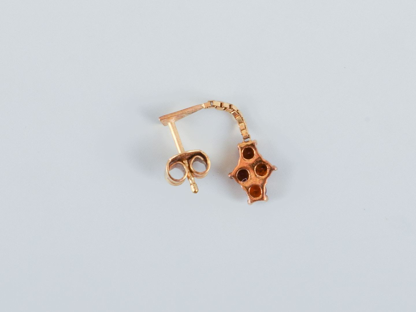 Unknown goldsmith, a pair of earrings adorned with semi-precious stones. Unmarked. Measured at 14 carats. Measuring: total length 27mm.