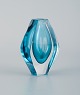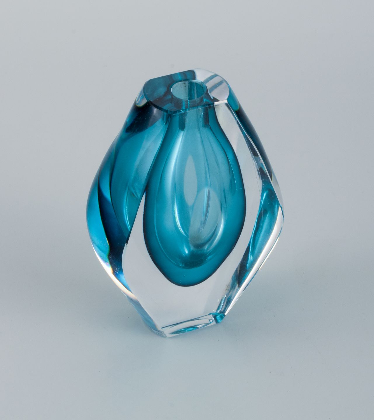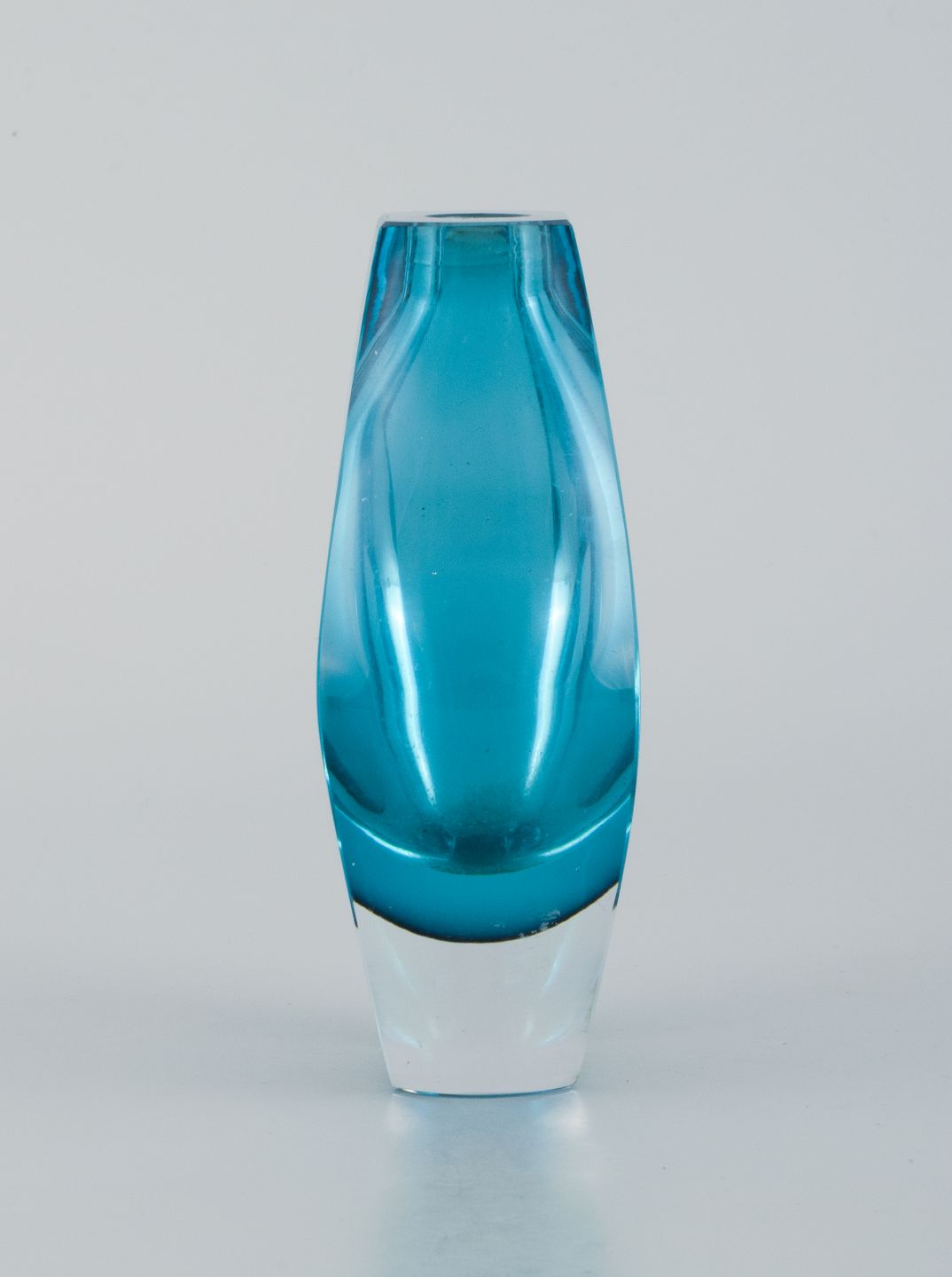 Murano vase i blå og klar mundblæst kunstglas. Italiensk design, 1970’erne. Måler: H 11,5 x B 7,5 cm. I perfekt stand.