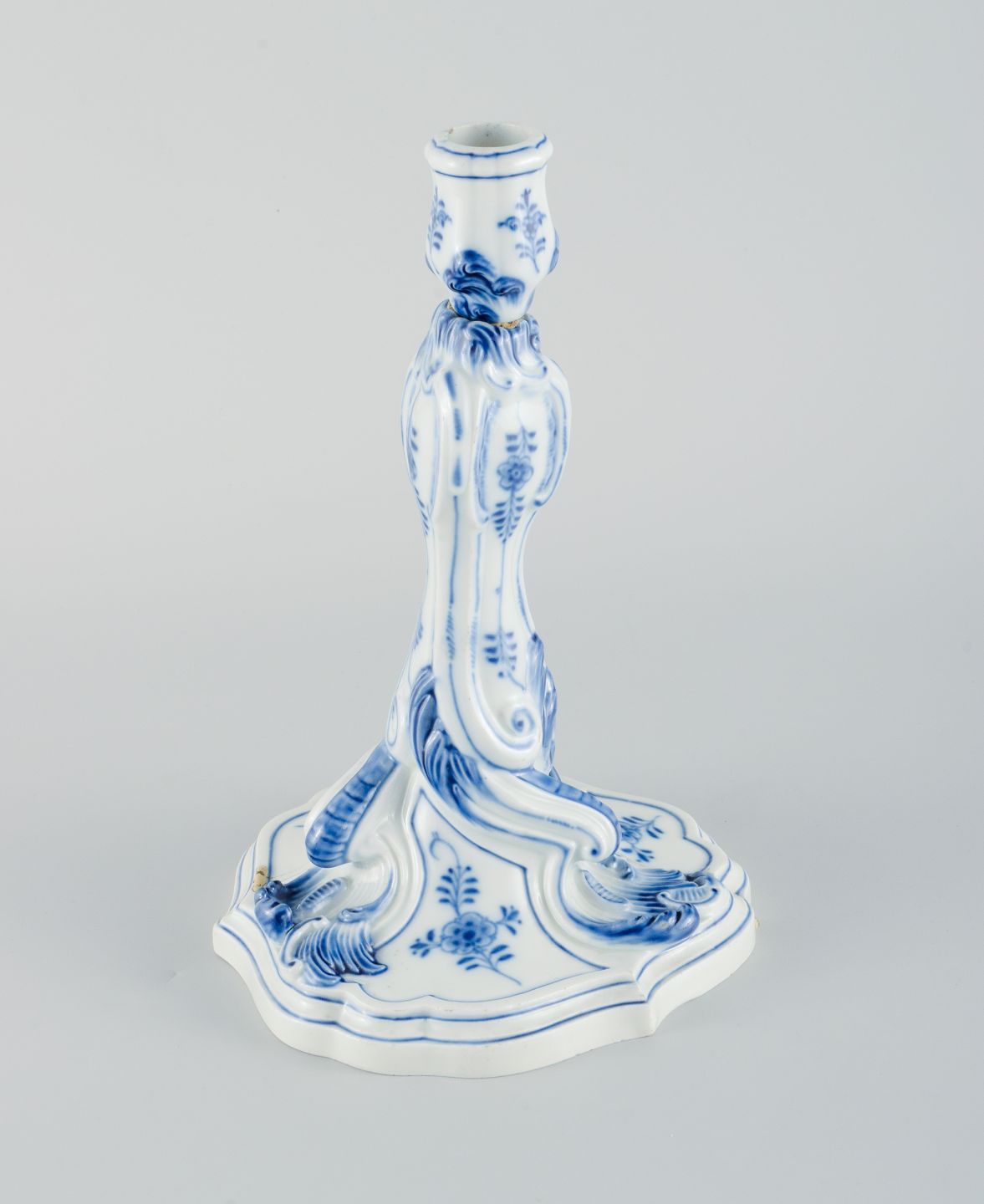 Meissen, Tyskland. Stor antik løgmønstret lysestage. 1800-tallet. H 24,5 cm x D 16,0 cm. Ældre reparation, lang hårrevne, klinket. 1. sortering Stemplet.