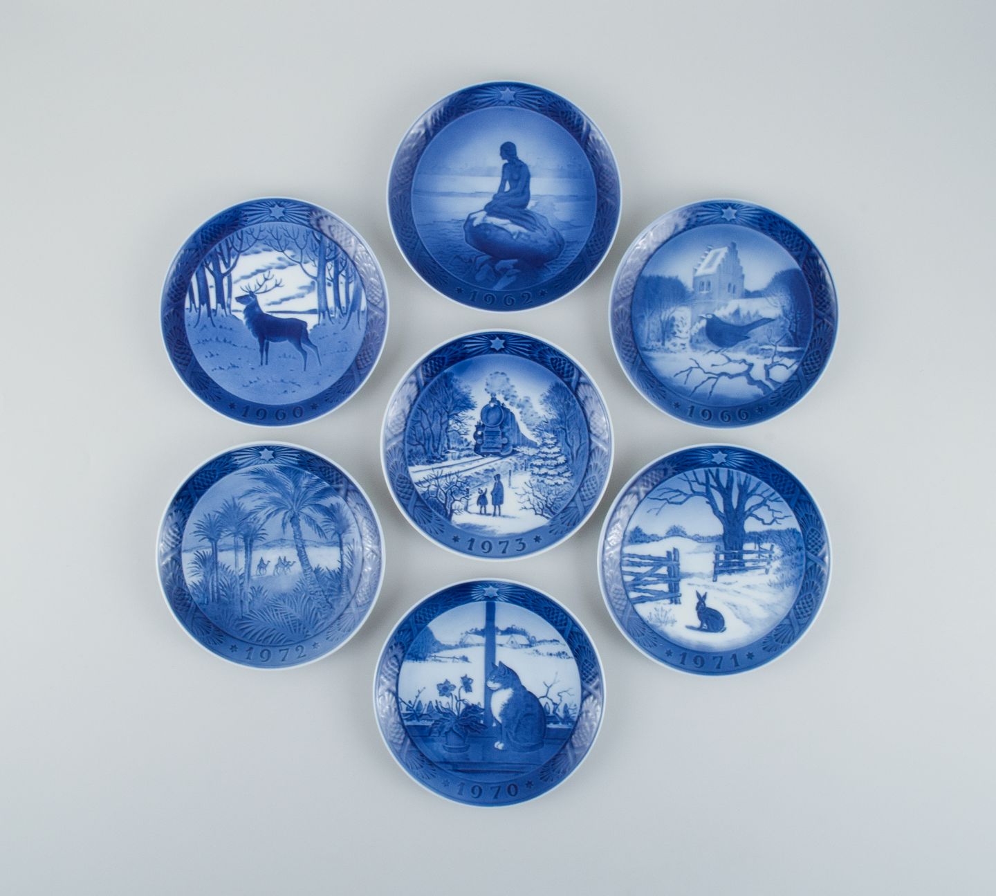 14 Royal Copenhagen juleplatter fra 1960/70/80'erne. Diameter: 18,5 cm. I flot stand. Stemplet. 1. Sortering.
