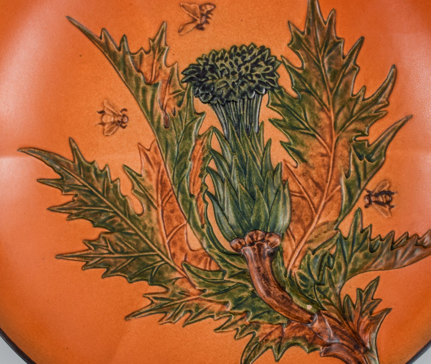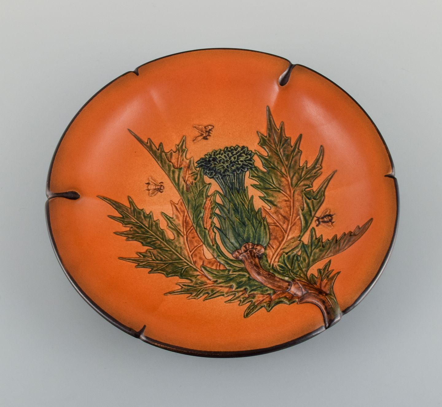 Ipsens, Denmark. Hand-painted glazed ceramic dish with flower and bees. 1920s. Model number 126. In excellent condition. Marked. Measuring: 27.0 cm. x 4.0 cm. deep.
