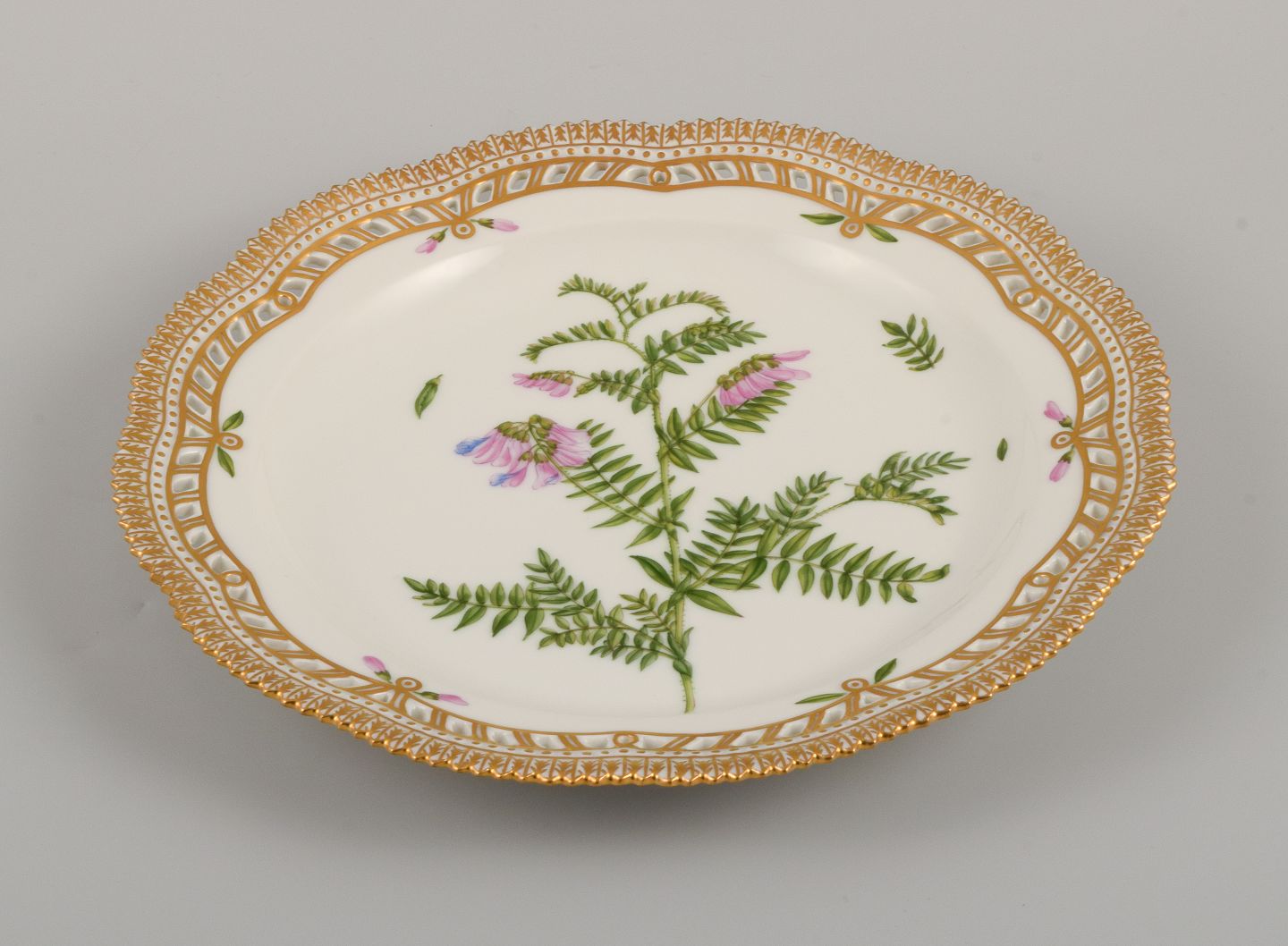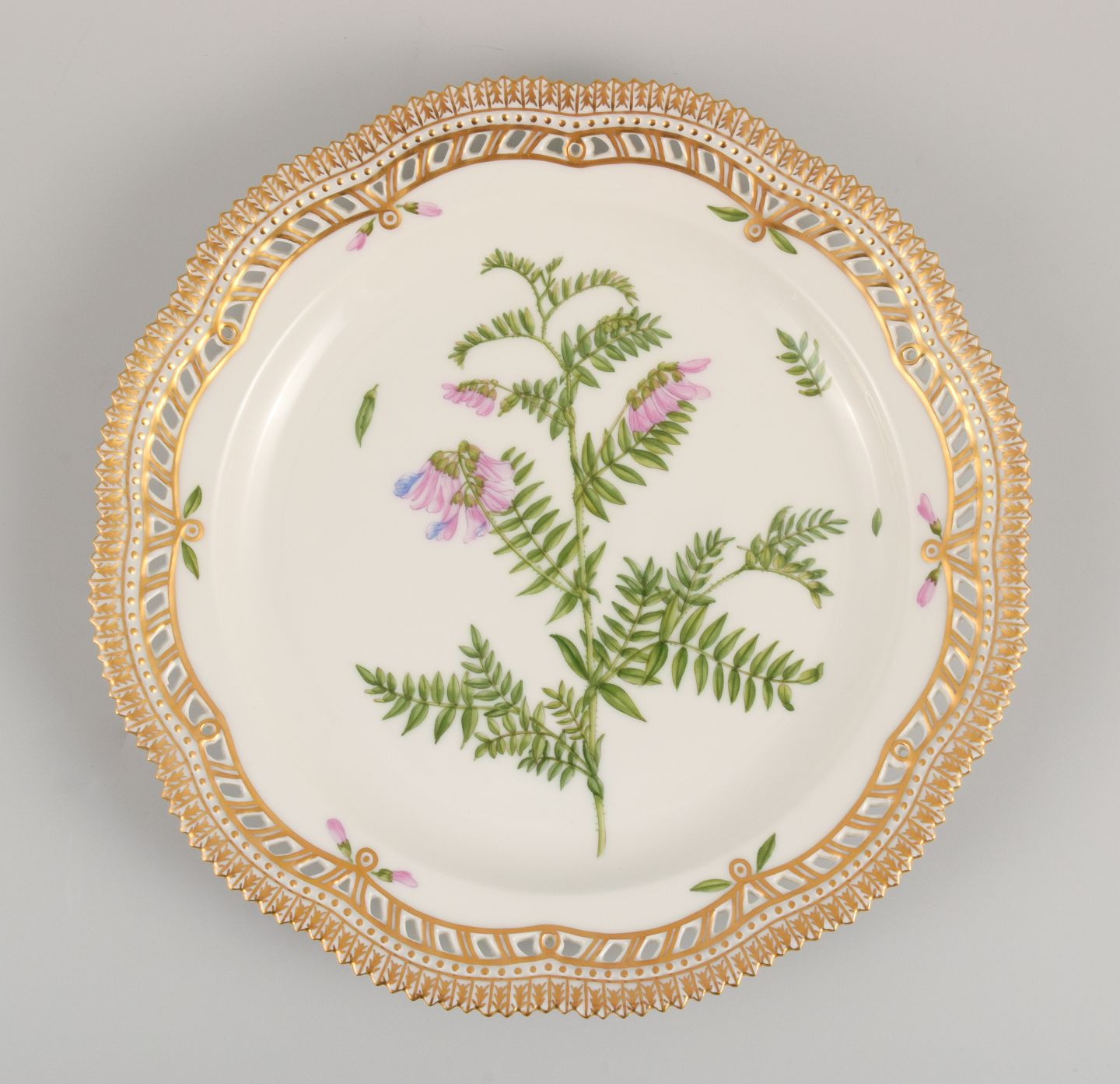Royal Copenhagen Flora Danica plate in openwork porcelain with hand-painted flowers and gold decoration. Model number 20/3526. Dated 1968. Diameter: 27 cm. First factory quality. In excellent condition. Marked