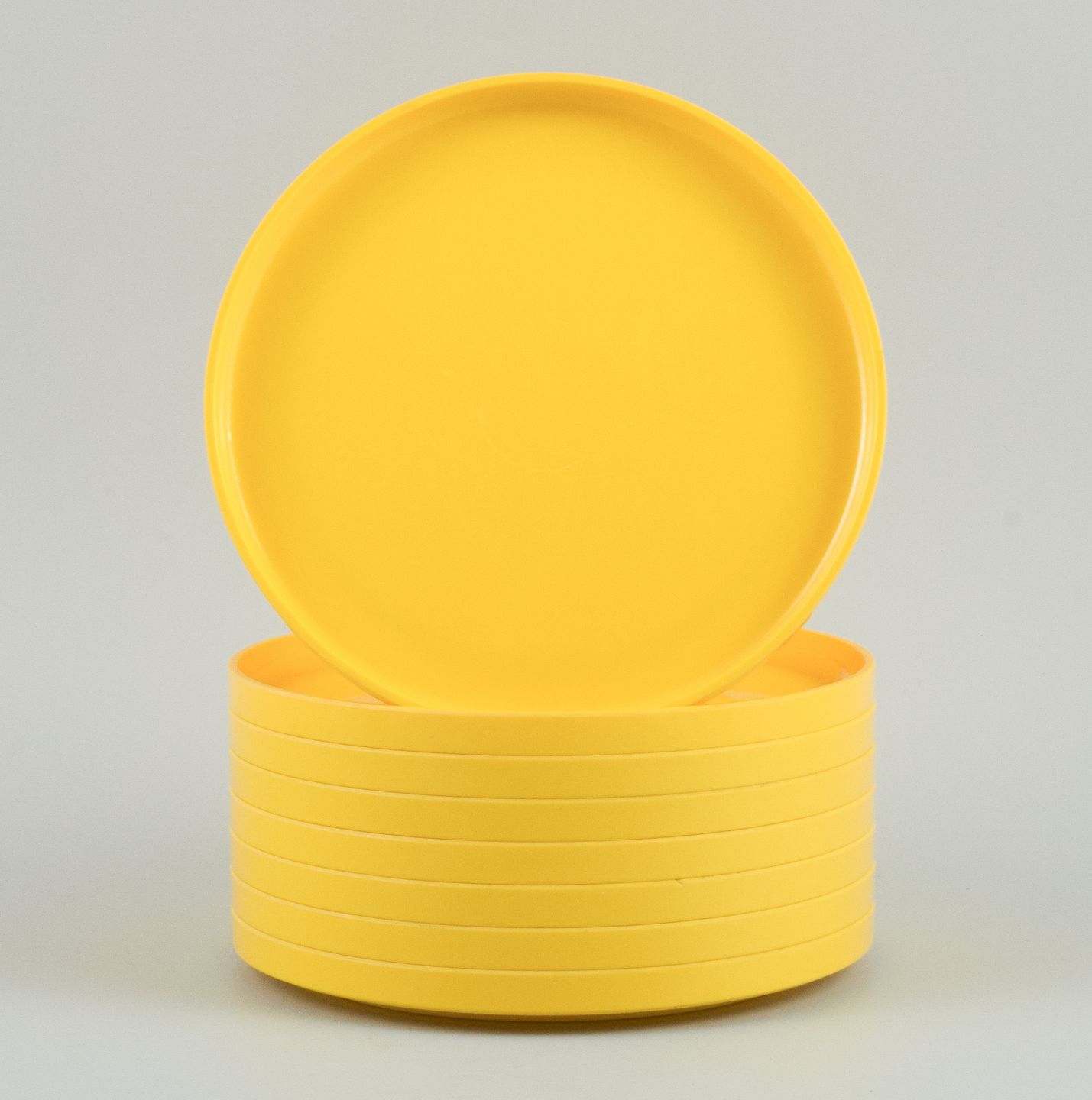 Massimo Vignelli for Heller, Italy. A set of 8 plates in yellow melamine. 1970/80s. Stackable. In excellent condition. Marked. D 19,5 x H 2,0 cm.