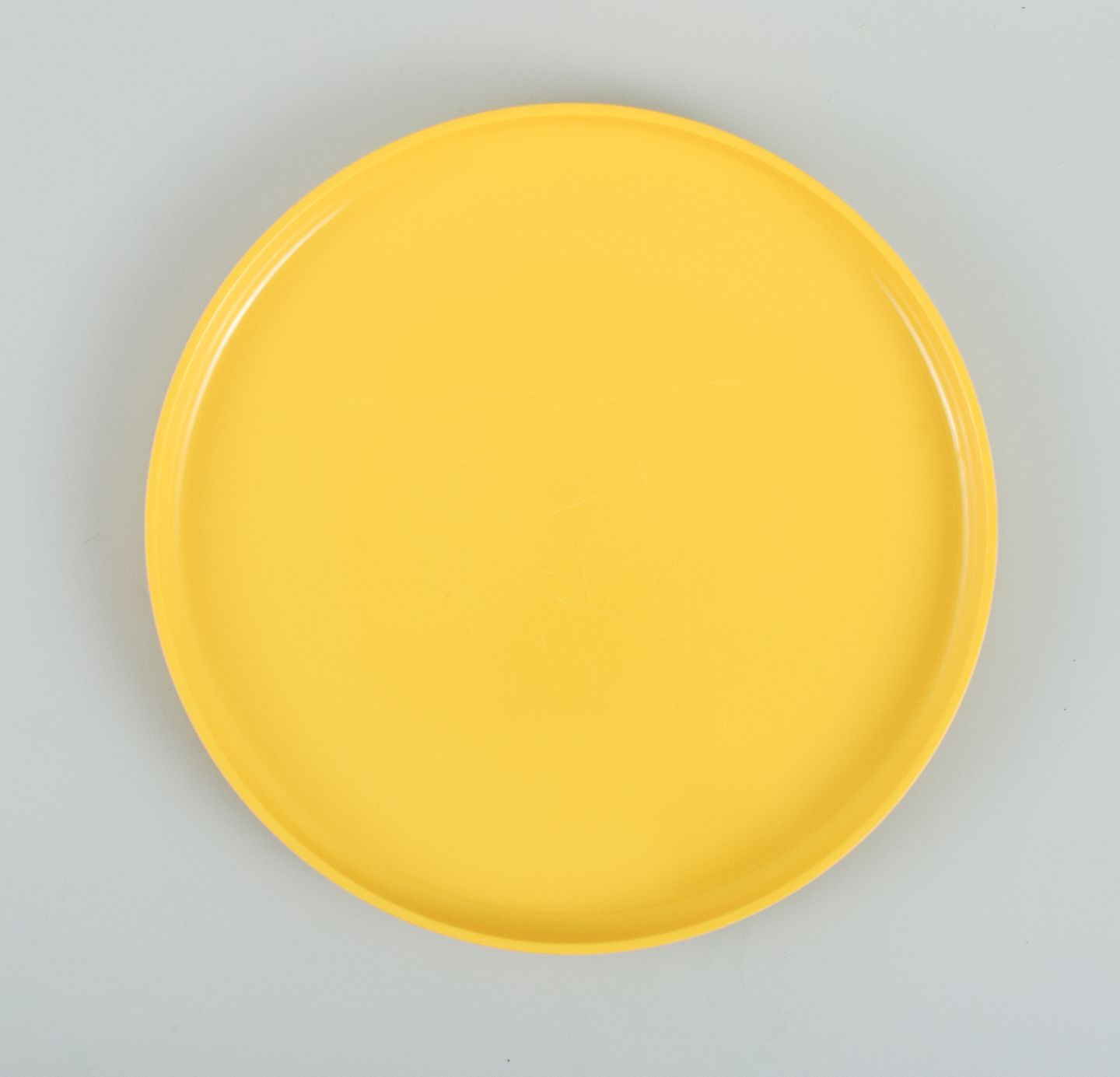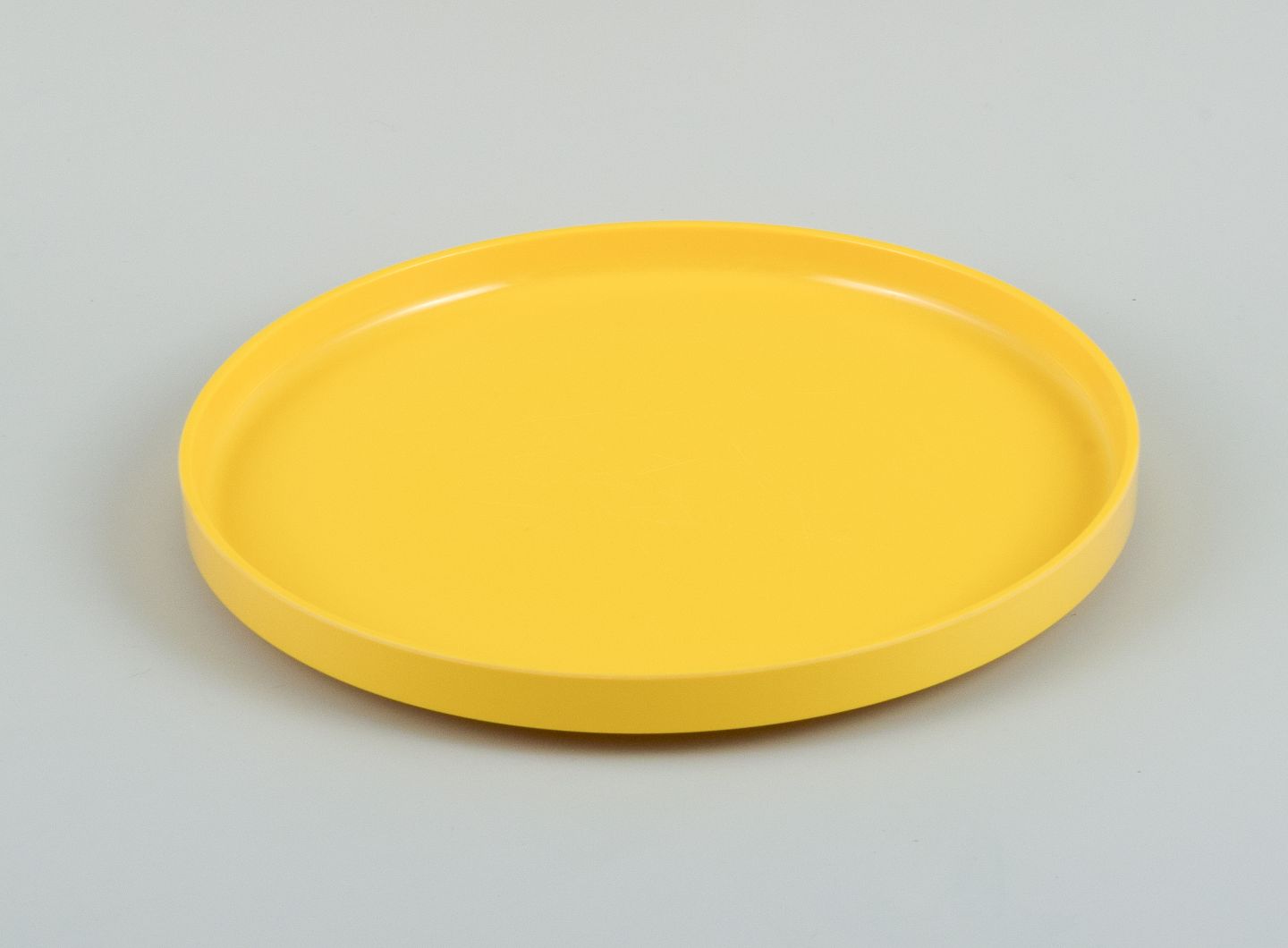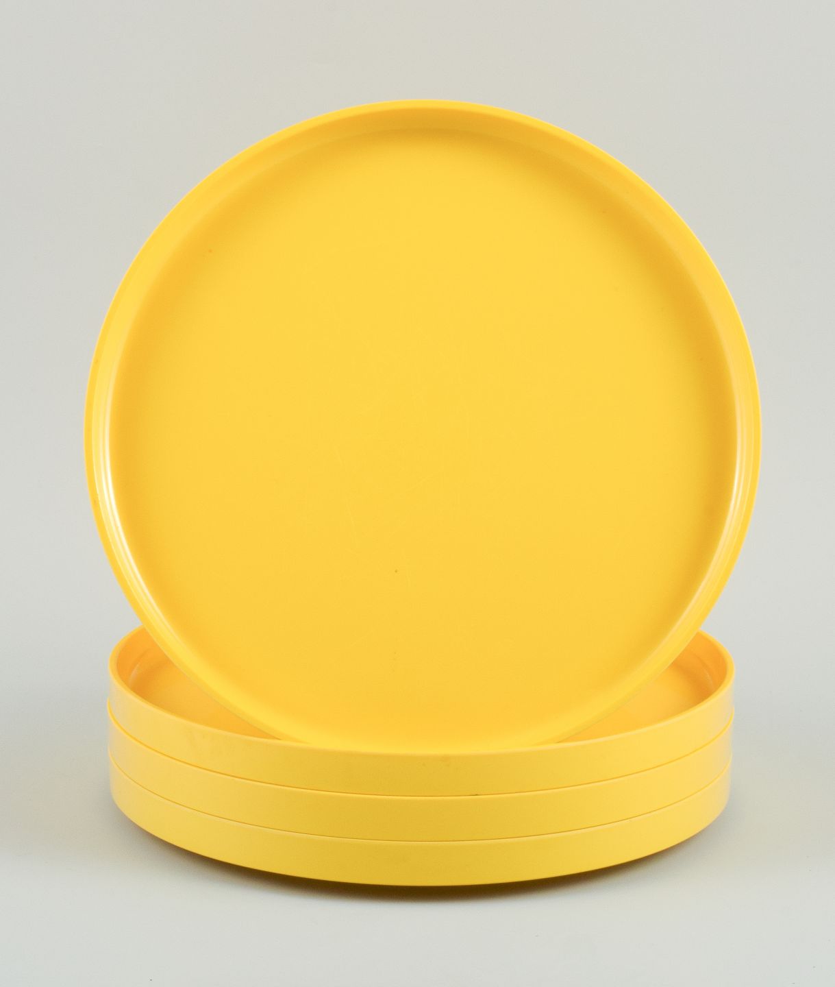Massimo Vignelli for Heller, Italien. Et sæt på 4 middagstallerkner i gul melamin. 1970/80’erne. Stabelbare. I flot stand. Stemplet. D 25,0 x H 2,5 cm