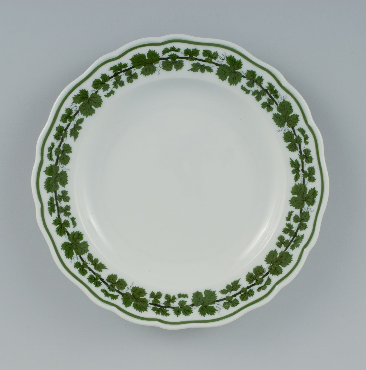 Meissen. Green Ivy. Tre tekopper med tilhørende underkopper og sidetallerkner.