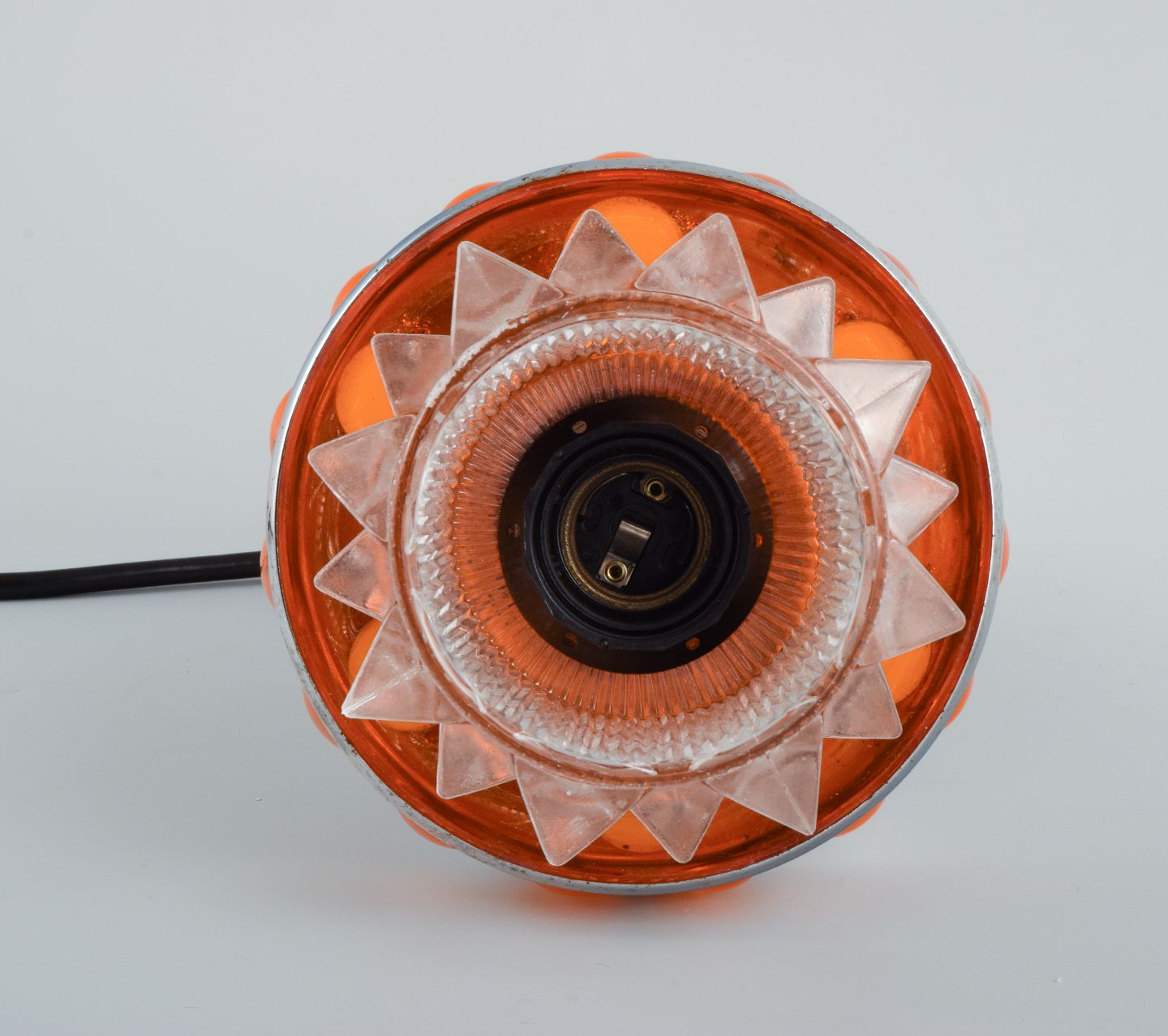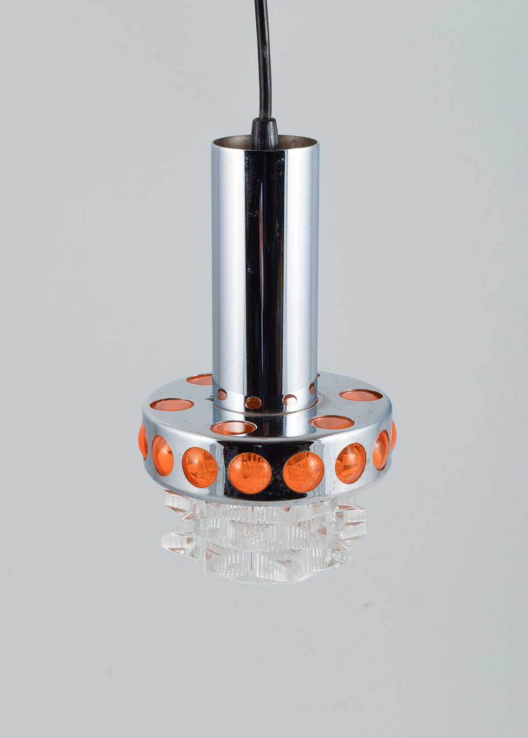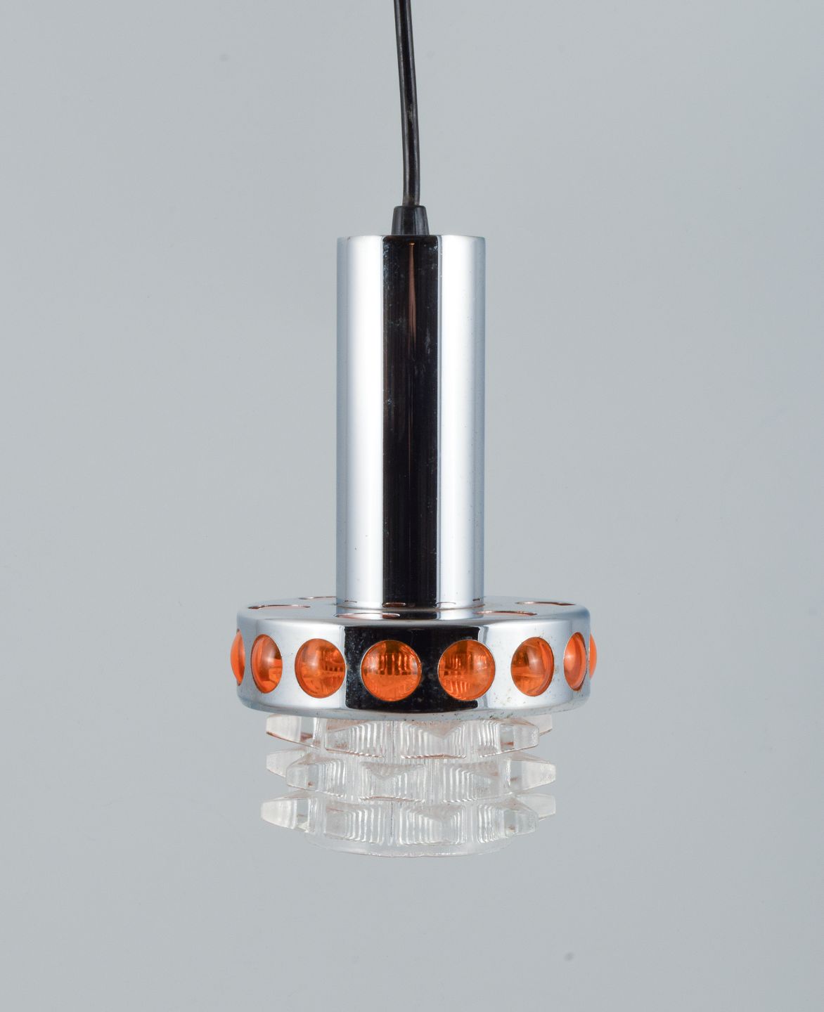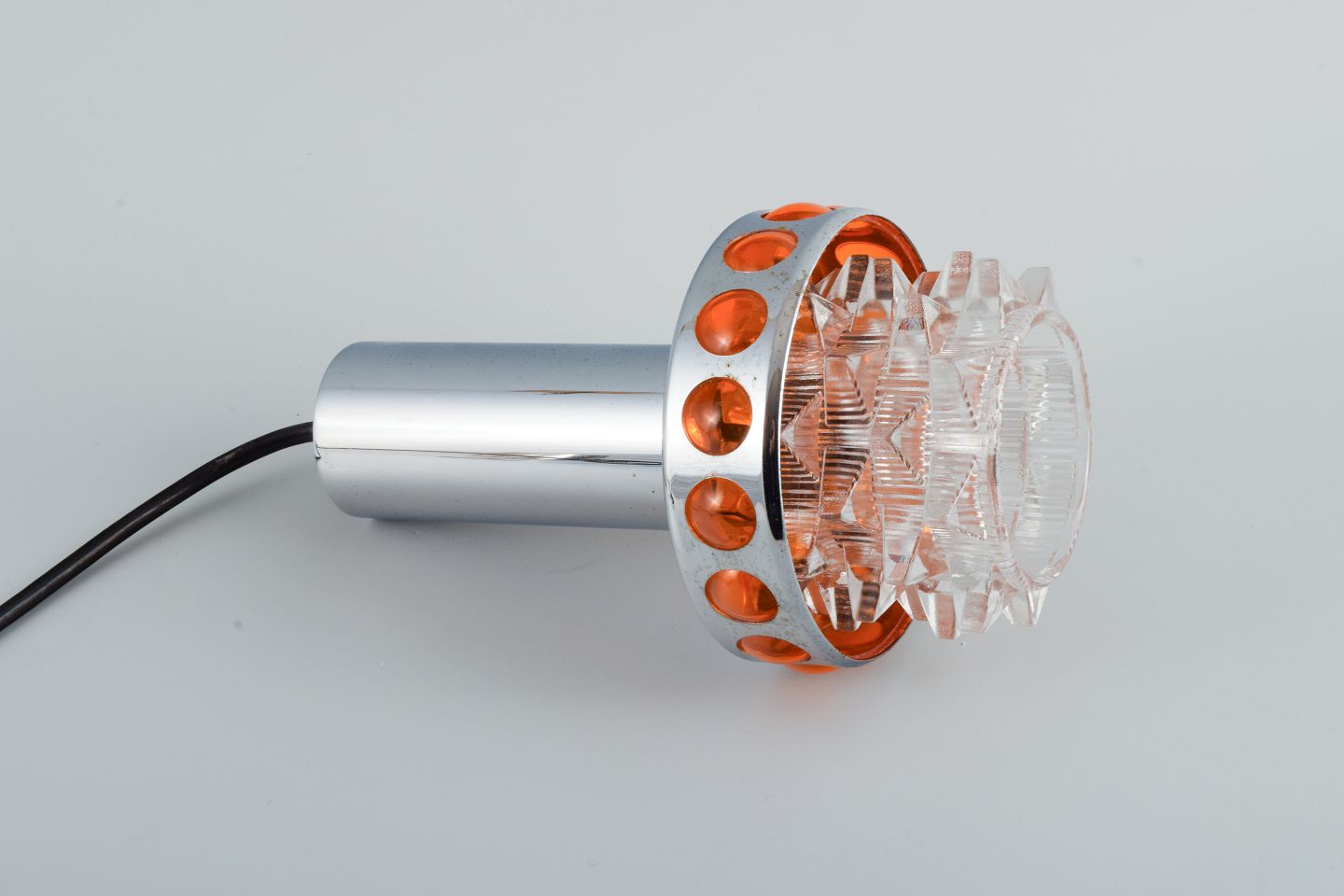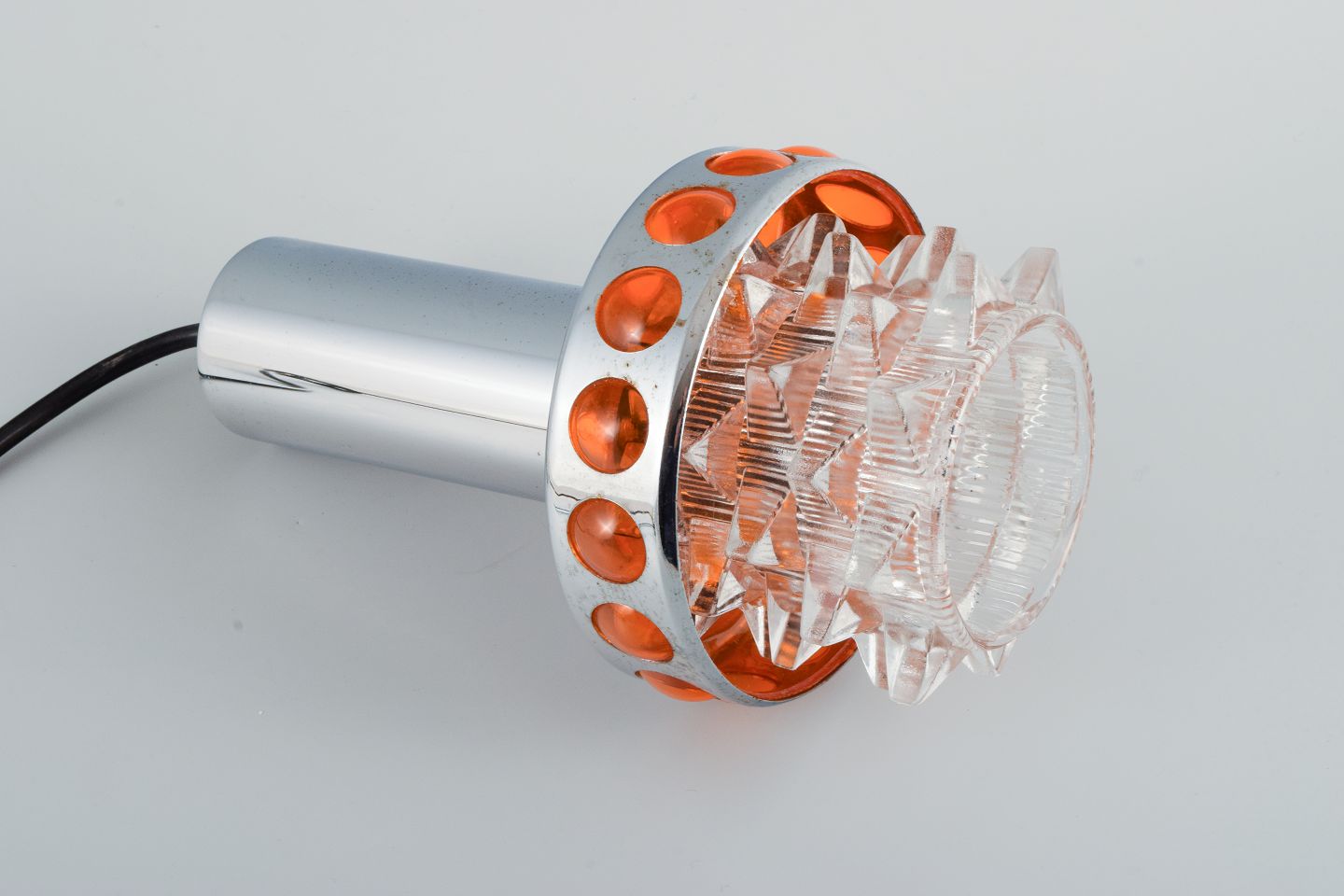 RAAK, Holland. Designerlampe i krom, orange plast og klart glas.