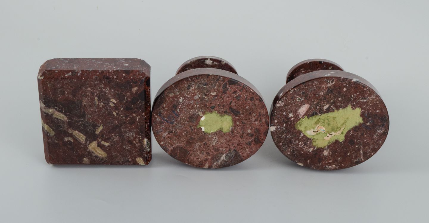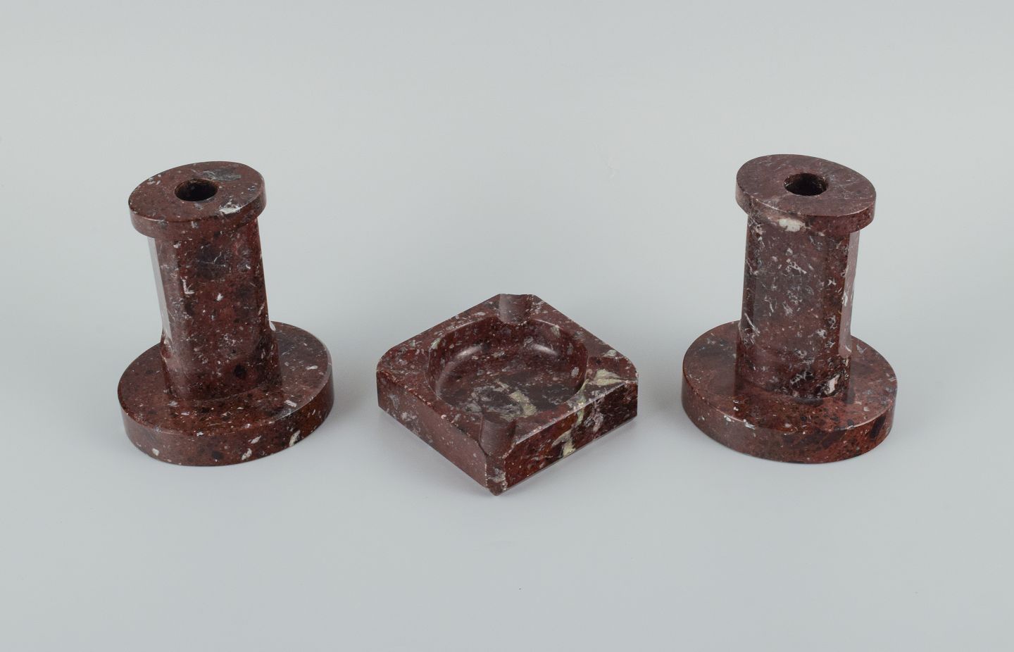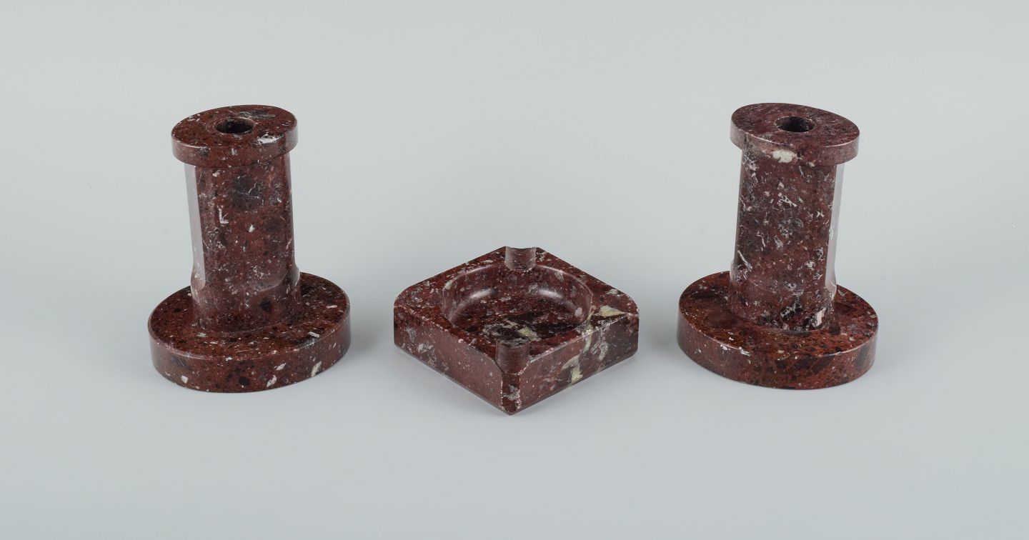Tysk designer, et par lysestager og askebæger i marmor. Ca. 30/40’erne. I flot stand. Stage måler H 13,5 x D 10,5 cm.