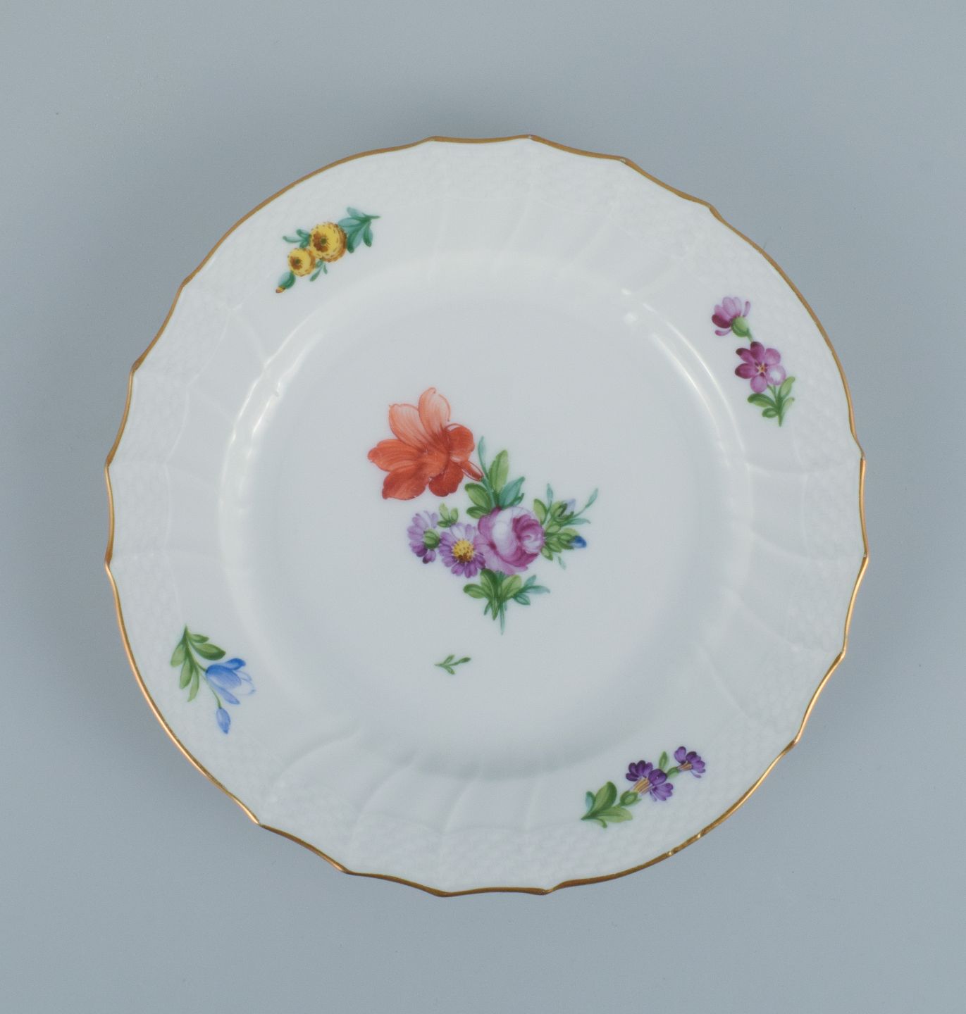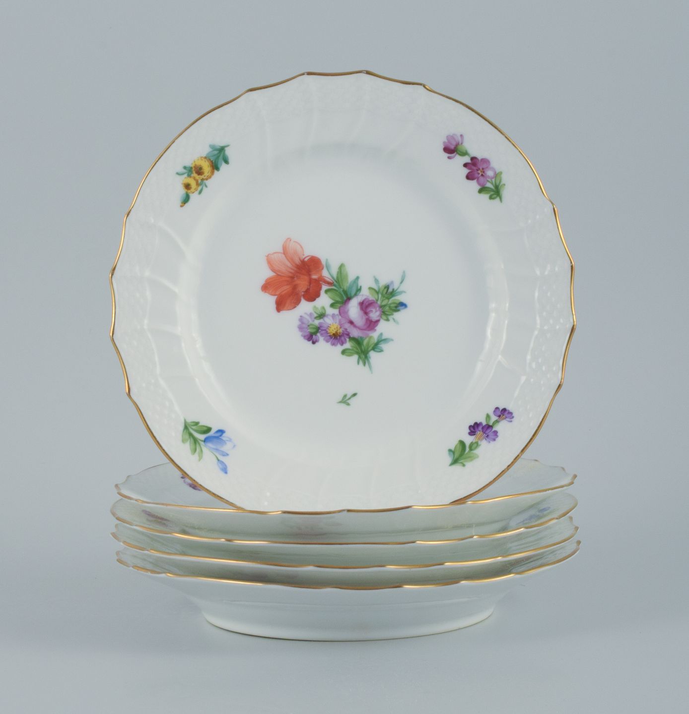 Royal Copenhagen, Light Saxon Flower, five lunch plates. Decoration number 493/1623. Approx. 1920s. Second factory quality. Measurements: 22.5 cm. Perfect condition.
