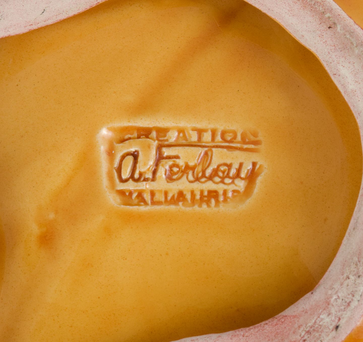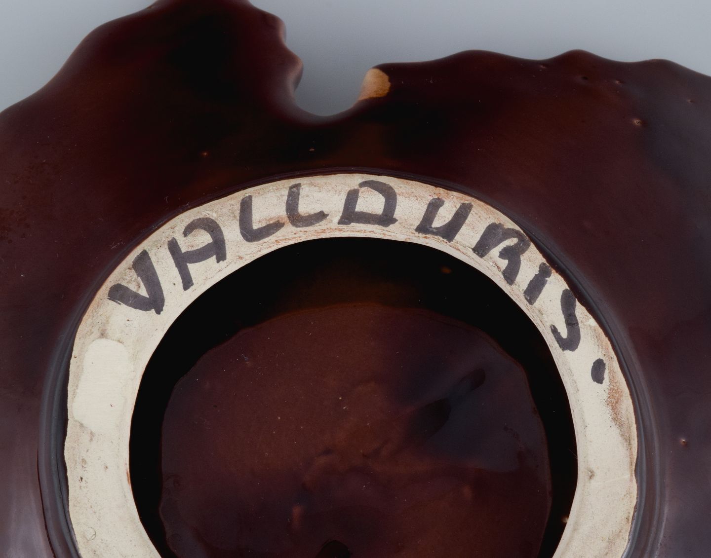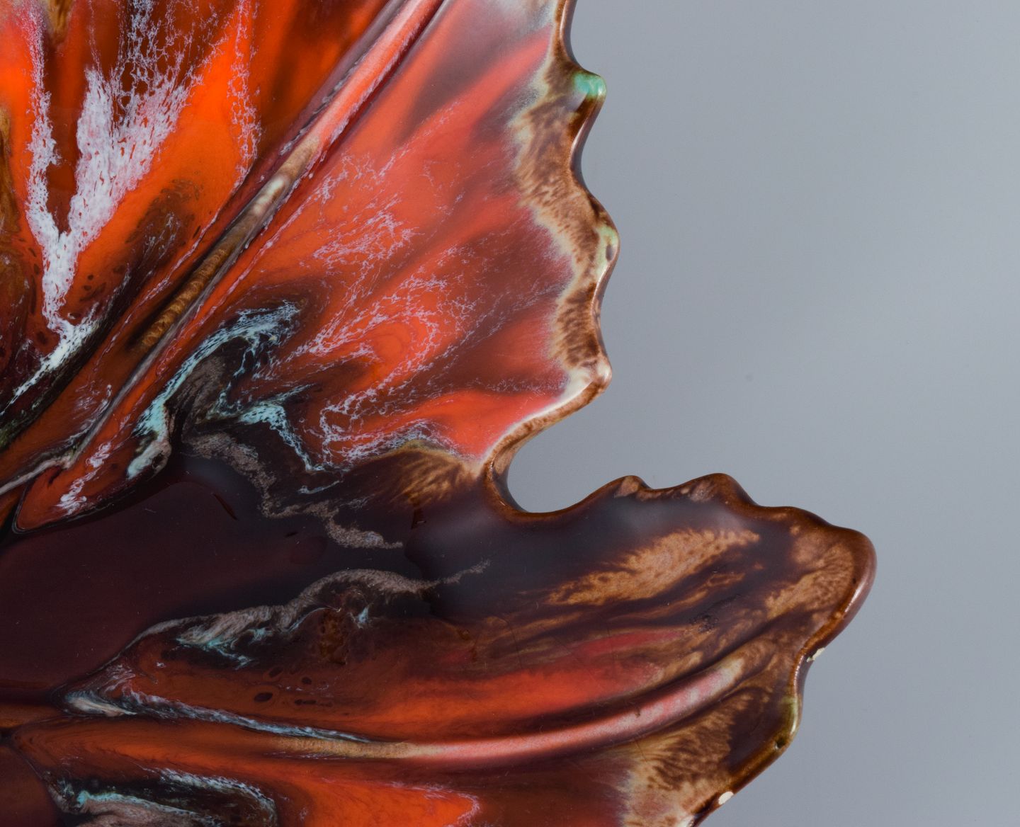 Vallauris, Frankrig, tre bladformede fade i farvestrålende glasurer.