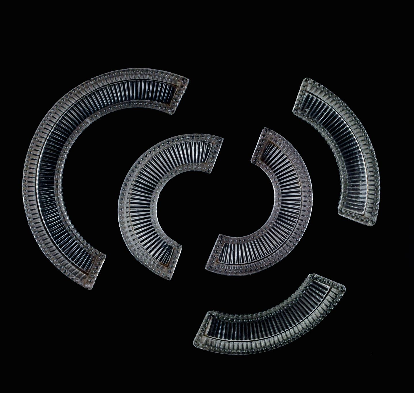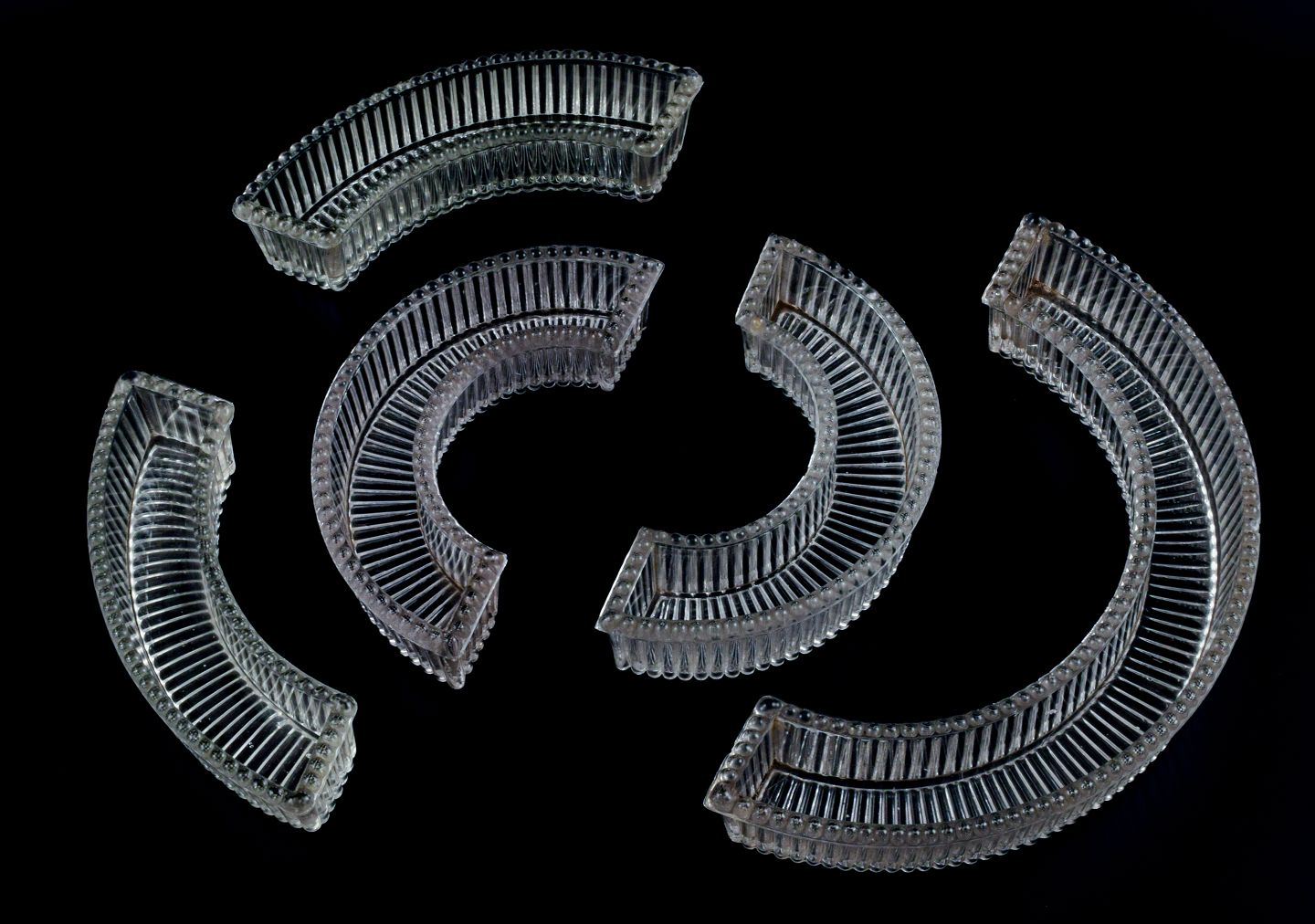 Baccarat, Frankrig, opsats / "Surtout de Table" bestående af fem dele krystalglas i rillet design. Art deco. 1930/40'erne. Diameter total: D 29,5 x H 4,3 cm.