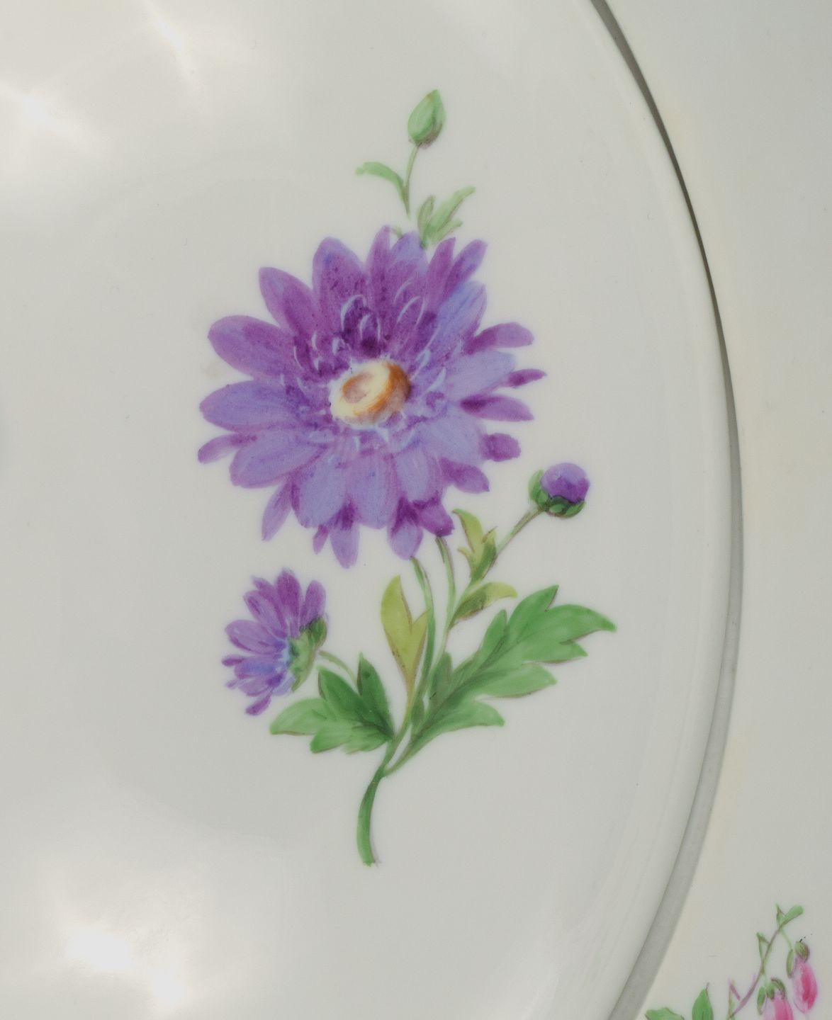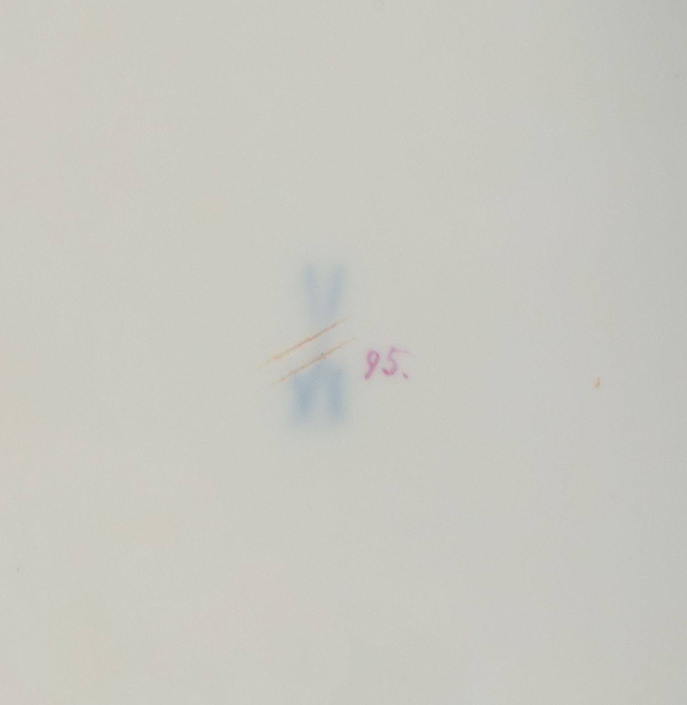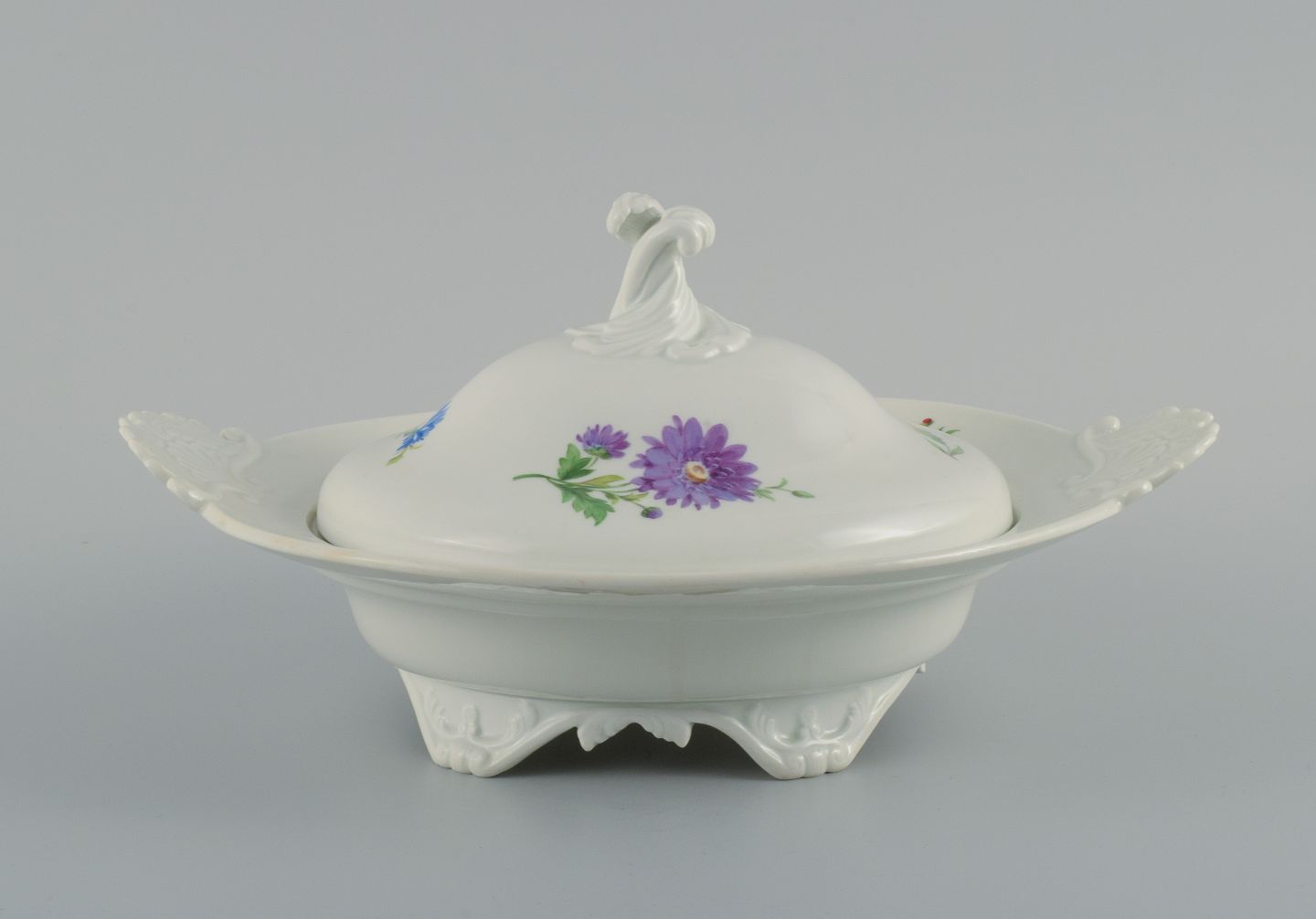 Meissen, stor rund lågterrin. Håndmalet med blomster. Sent 1800-tallet. Stemplet. I perfekt stand. Tredje sortering. Mål: L 35,0 x H 16,0 cm.