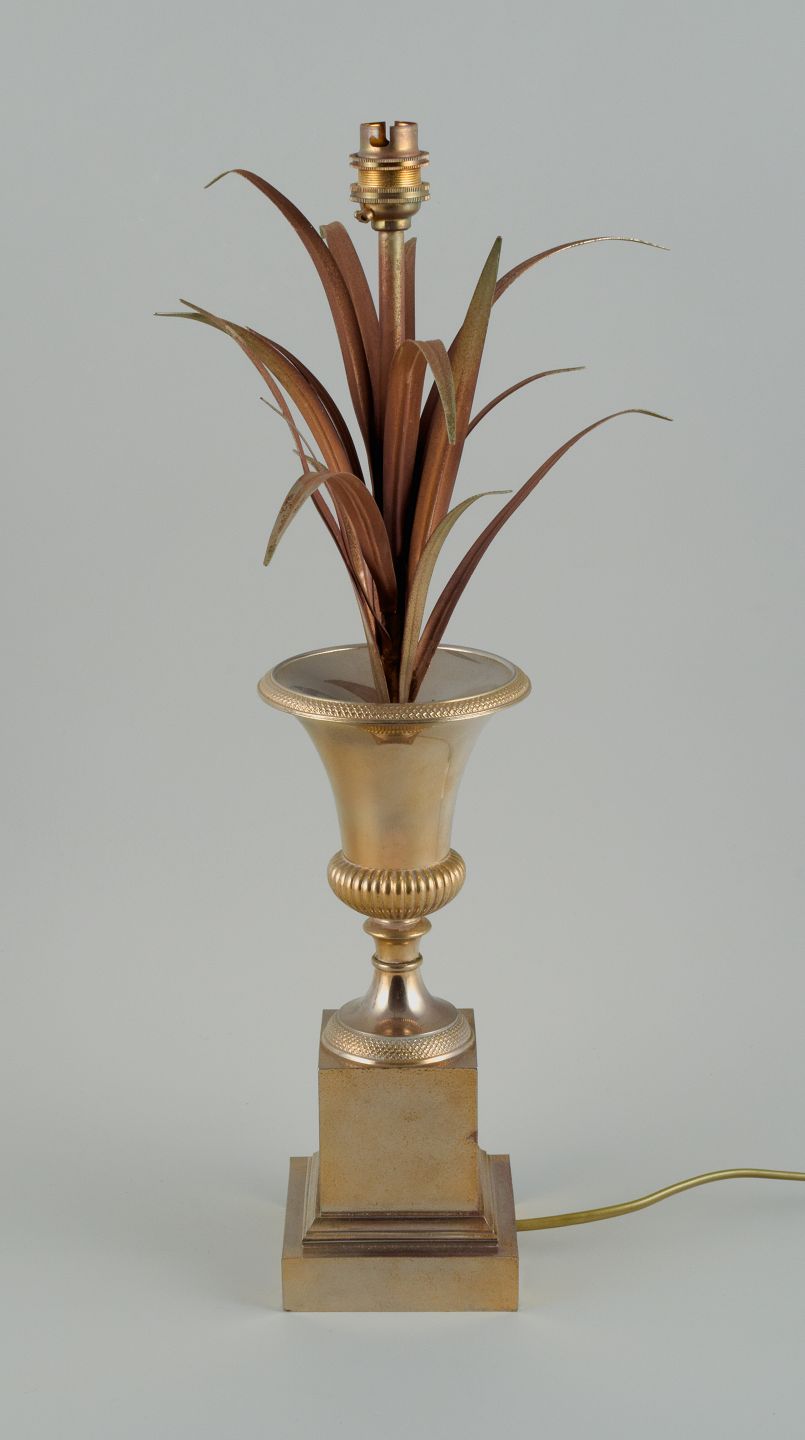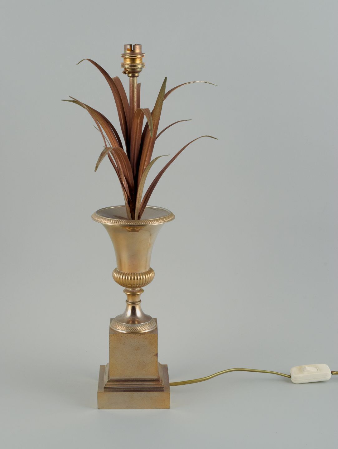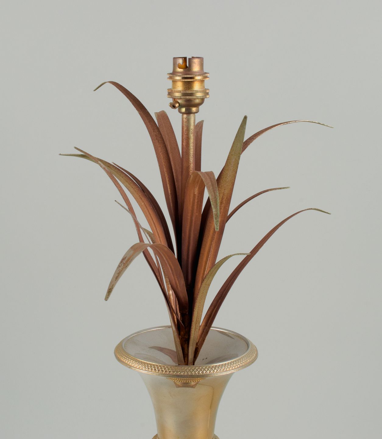 Charles & Fils, Frankrig. Et par bordlamper i patineret metal, udformet med palmeblade i vase. Ca. 1970. I perfekt stand. Stemplet Charles & Fils, Made in France. Mål: H 50,0 x D 11,0 cm.