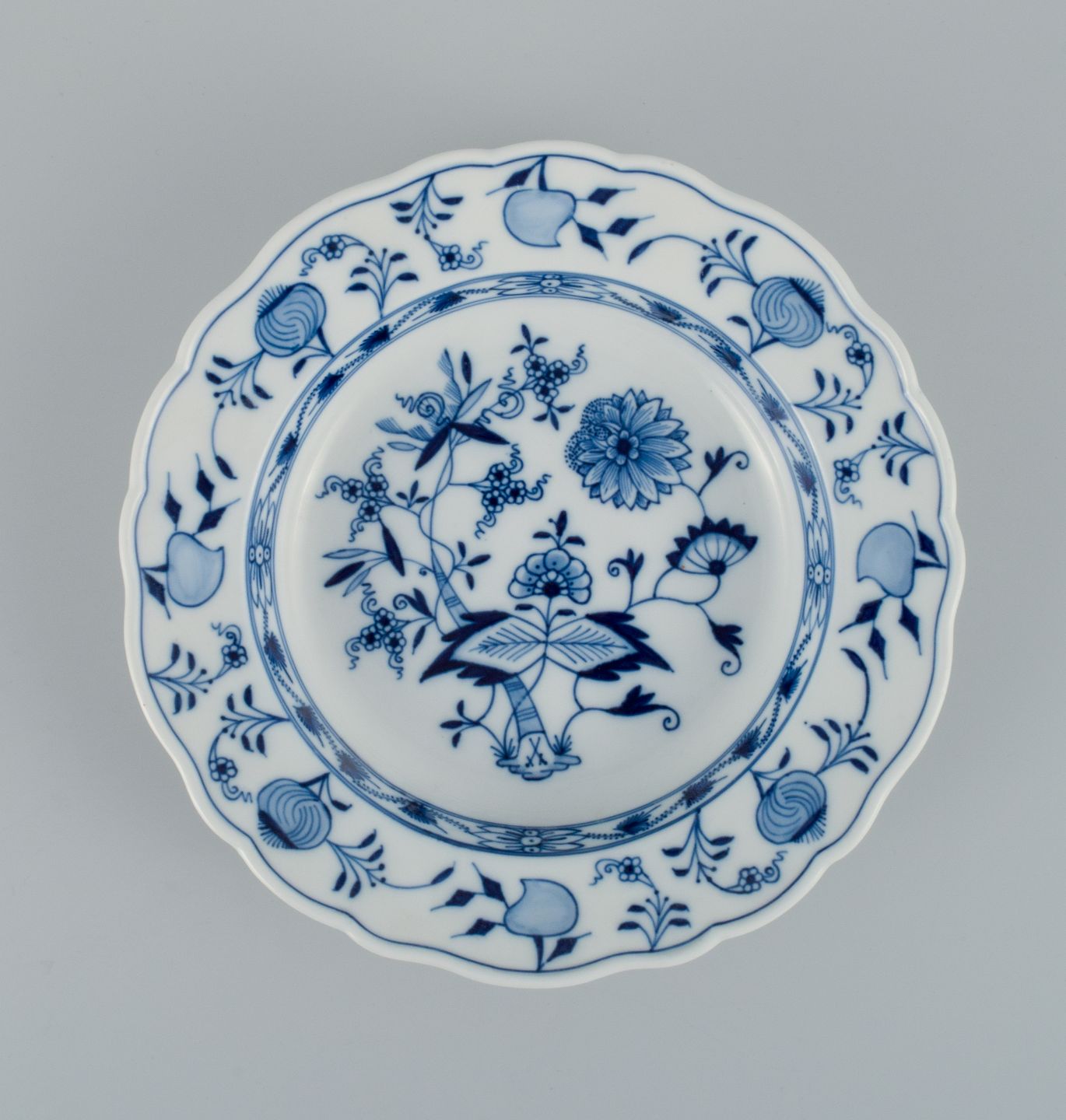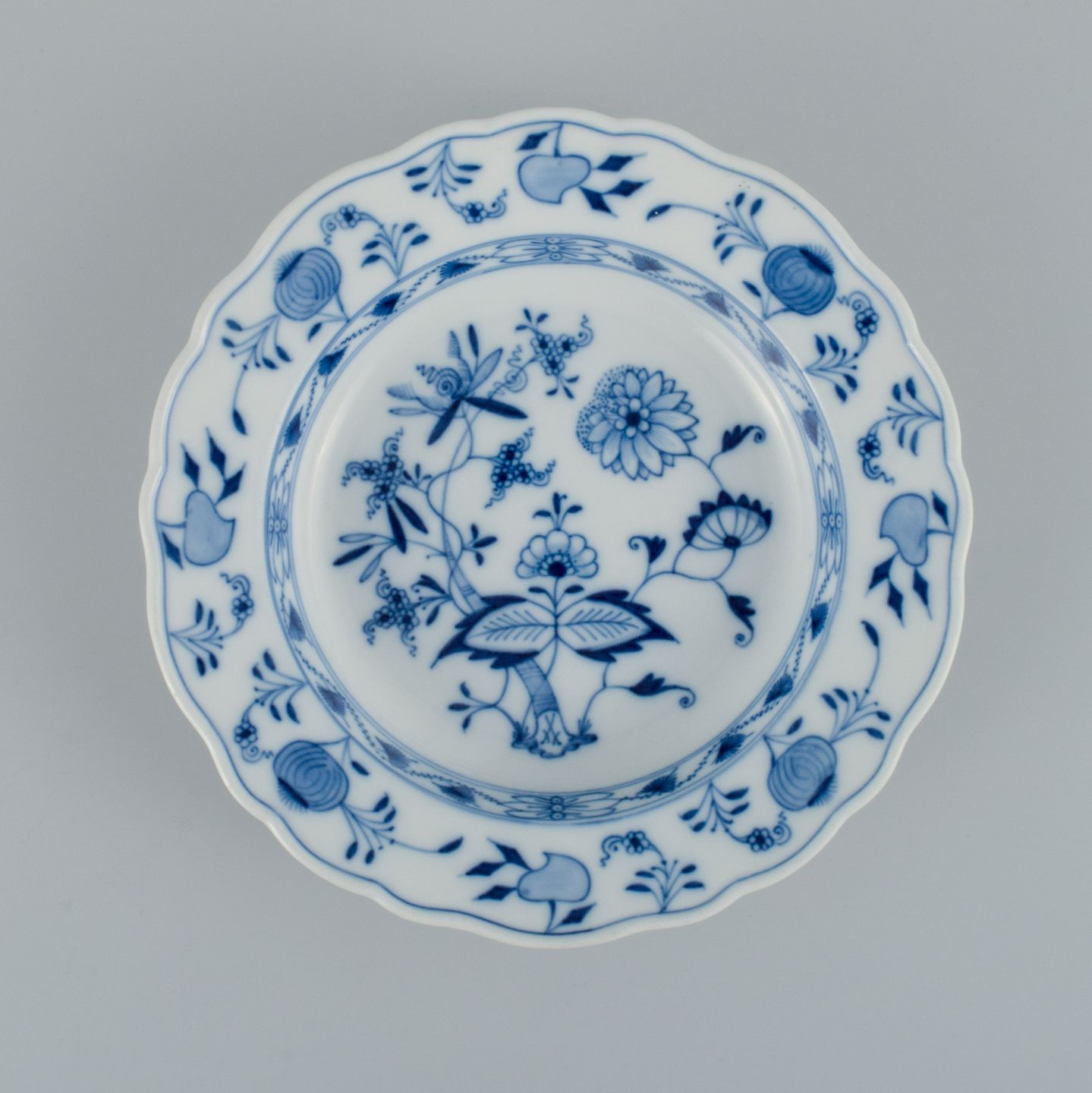 Meissen, et sæt på tre dybe tallerkner, håndmalet, løgmønstret.