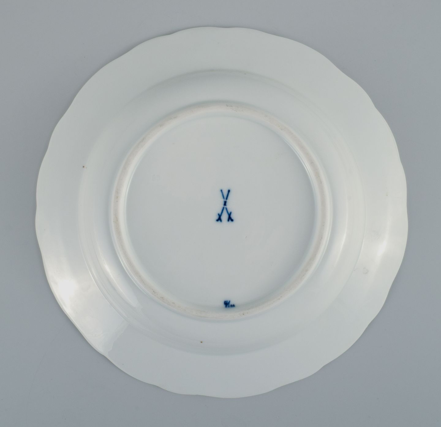Meissen, et sæt på tre dybe tallerkner, håndmalet, løgmønstret. Sent 1800-tallet. I perfekt stand. Tredje sortering. Stemplet. Mål: D 23,4 x H 5,0 cm.