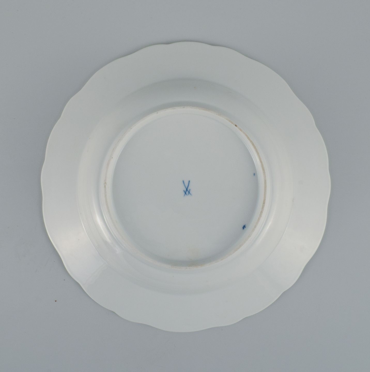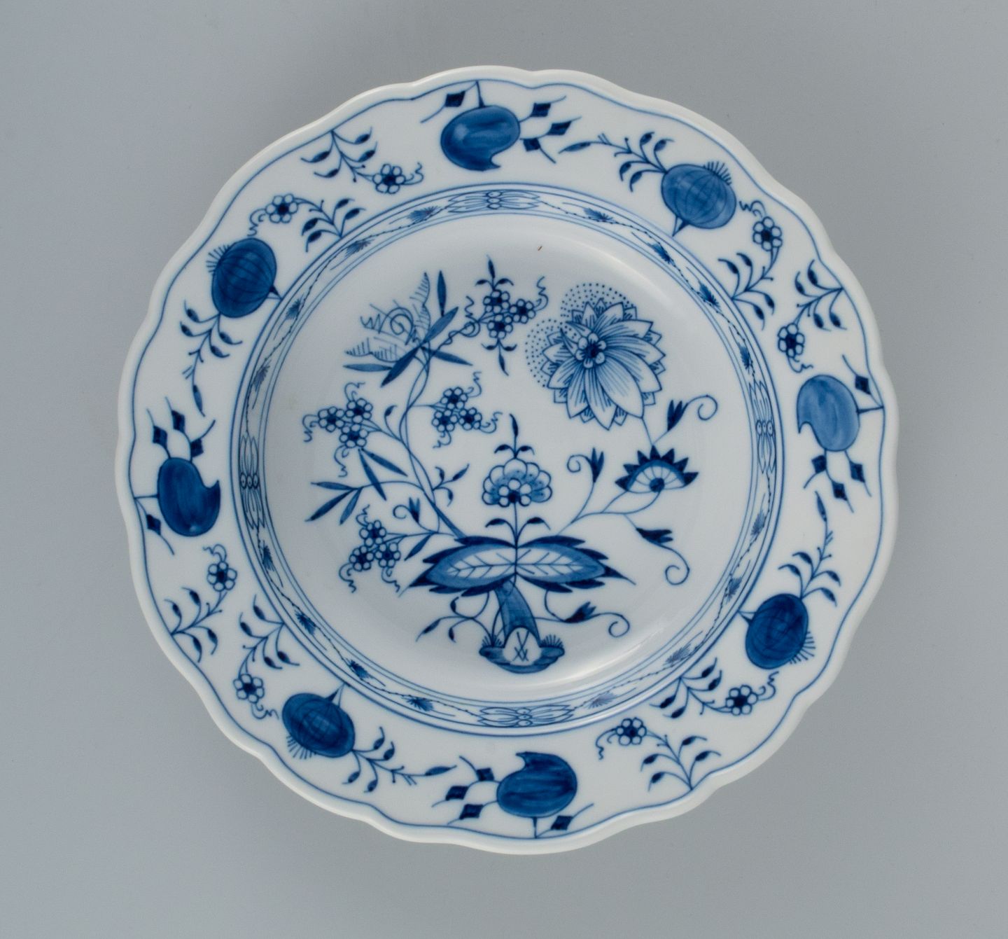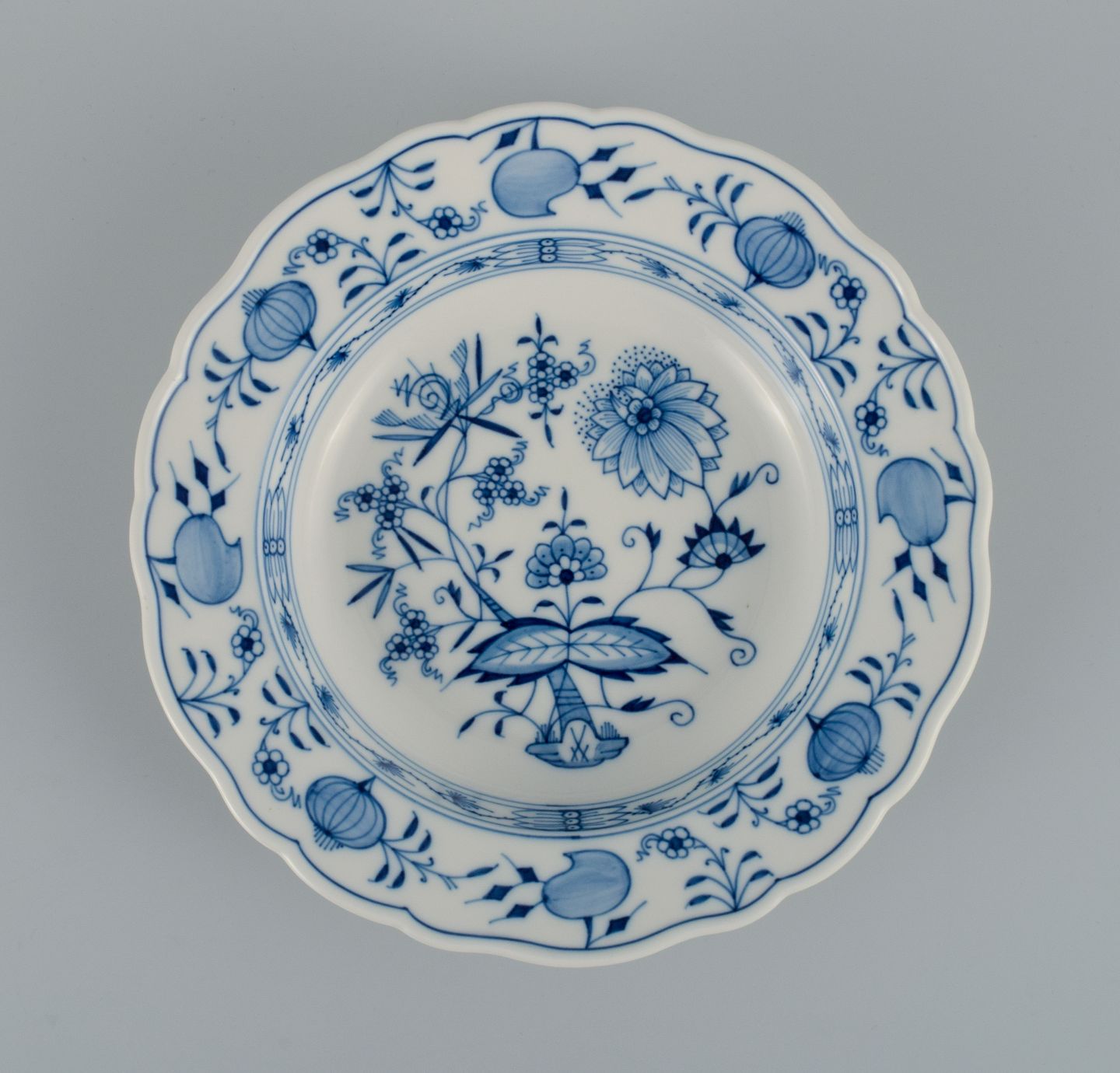 Meissen, et sæt på fire dybe tallerkner, håndmalet, løgmønstret. Sent 1800-tallet. I perfekt stand. Første sortering. Stemplet. Mål: D 23,4 x H 5,0 cm.