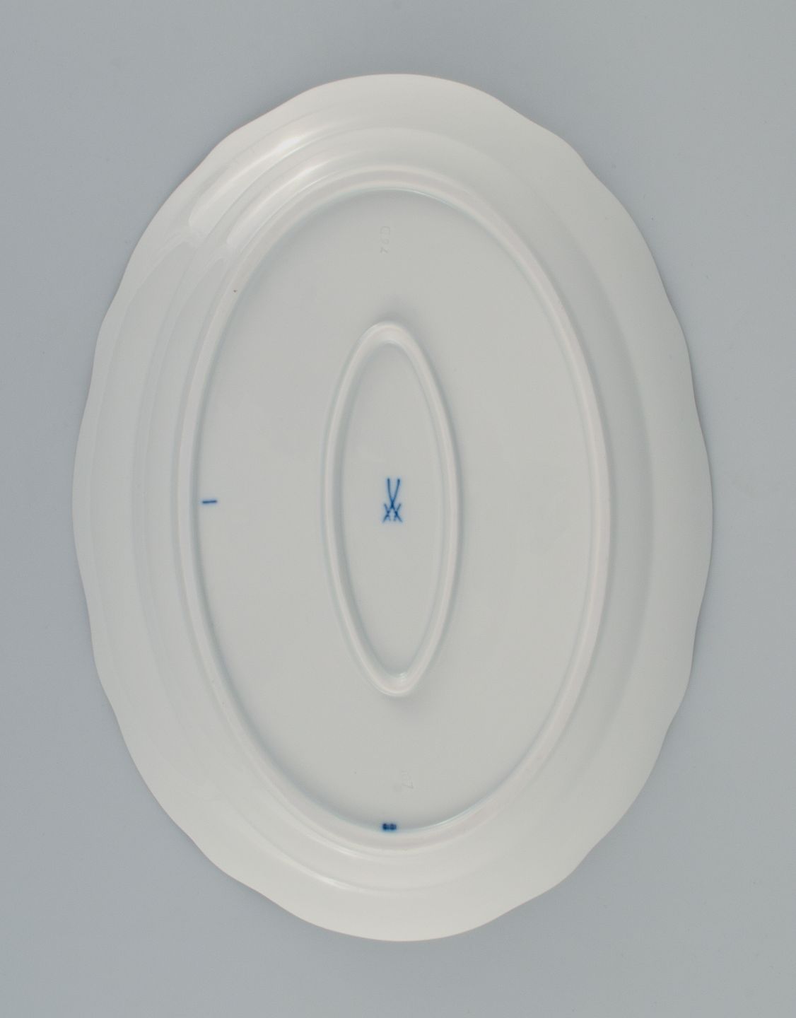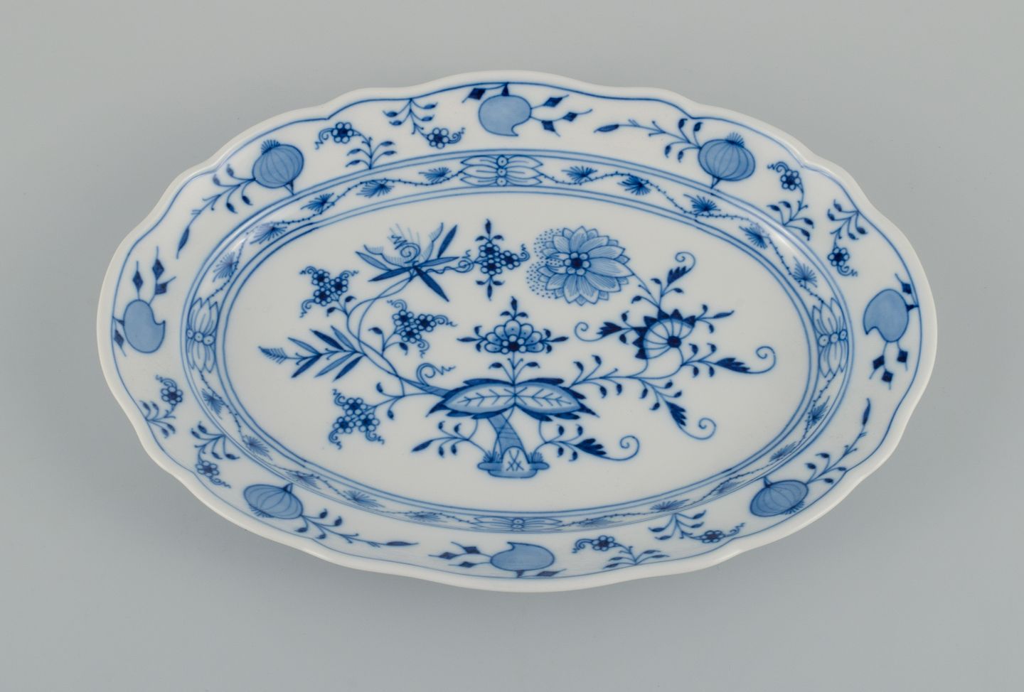 Meissen, Blue Onion oval dish. Approx. 1900. Fourth factory quality. Perfect condition. Marked. Dimensions: L 30,0 x D 22,0 x H 3,5 cm.