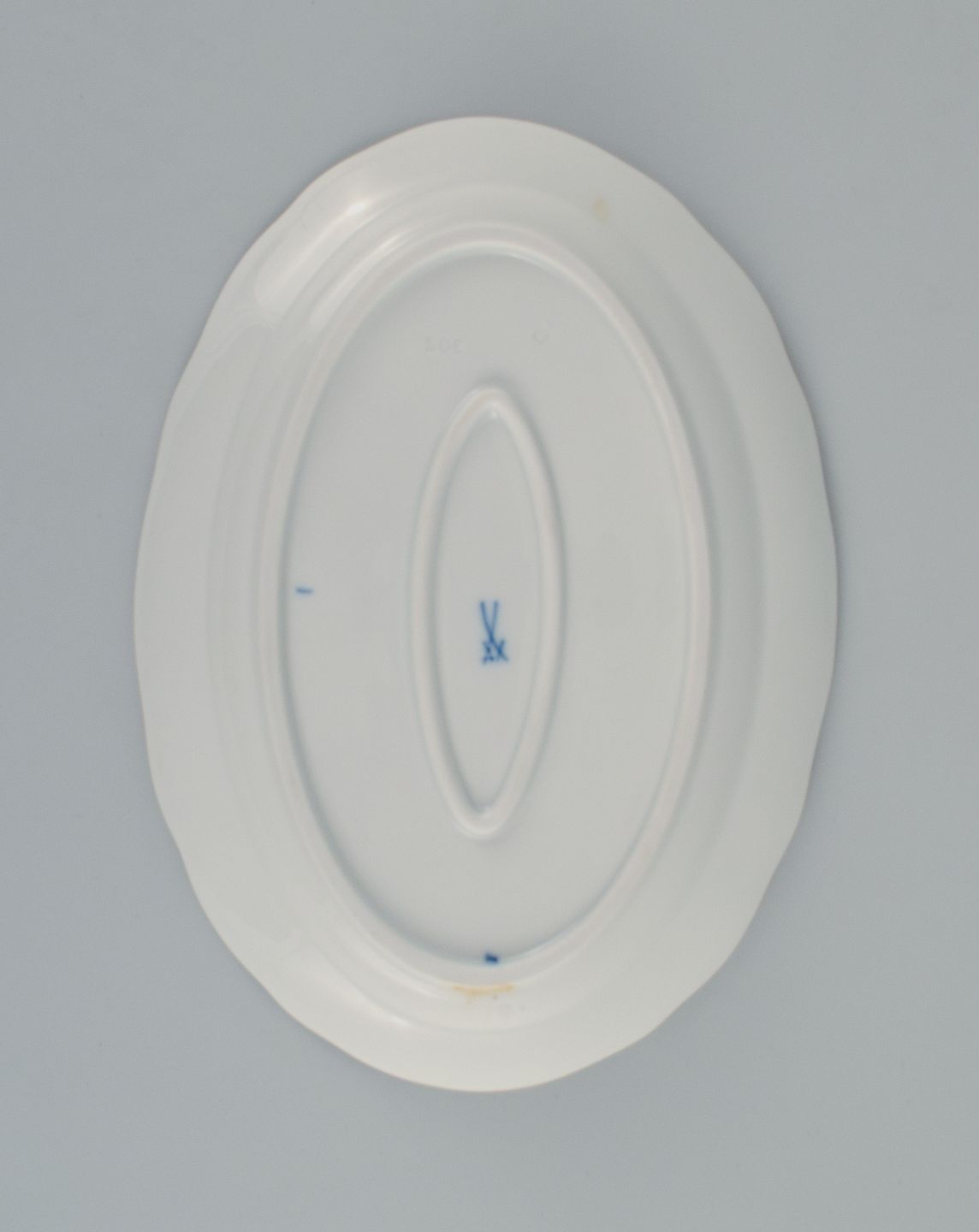 Meissen, Blue Onion oval dish. Approx. 1900. Fourth factory quality. Perfect condition. Marked. Dimensions: L 22,5 x D 16,0 x H 3,0 cm.
