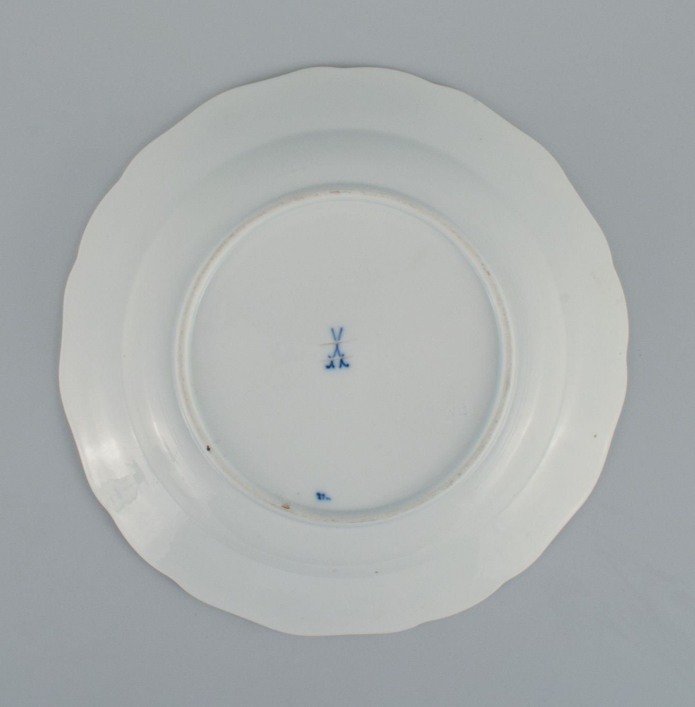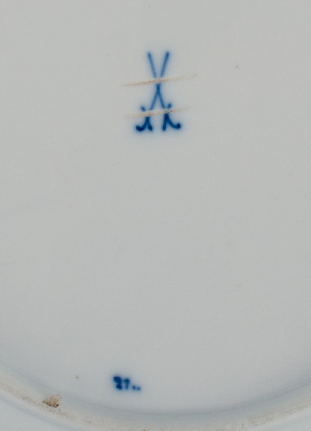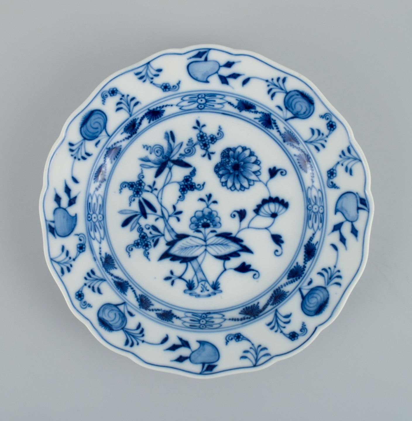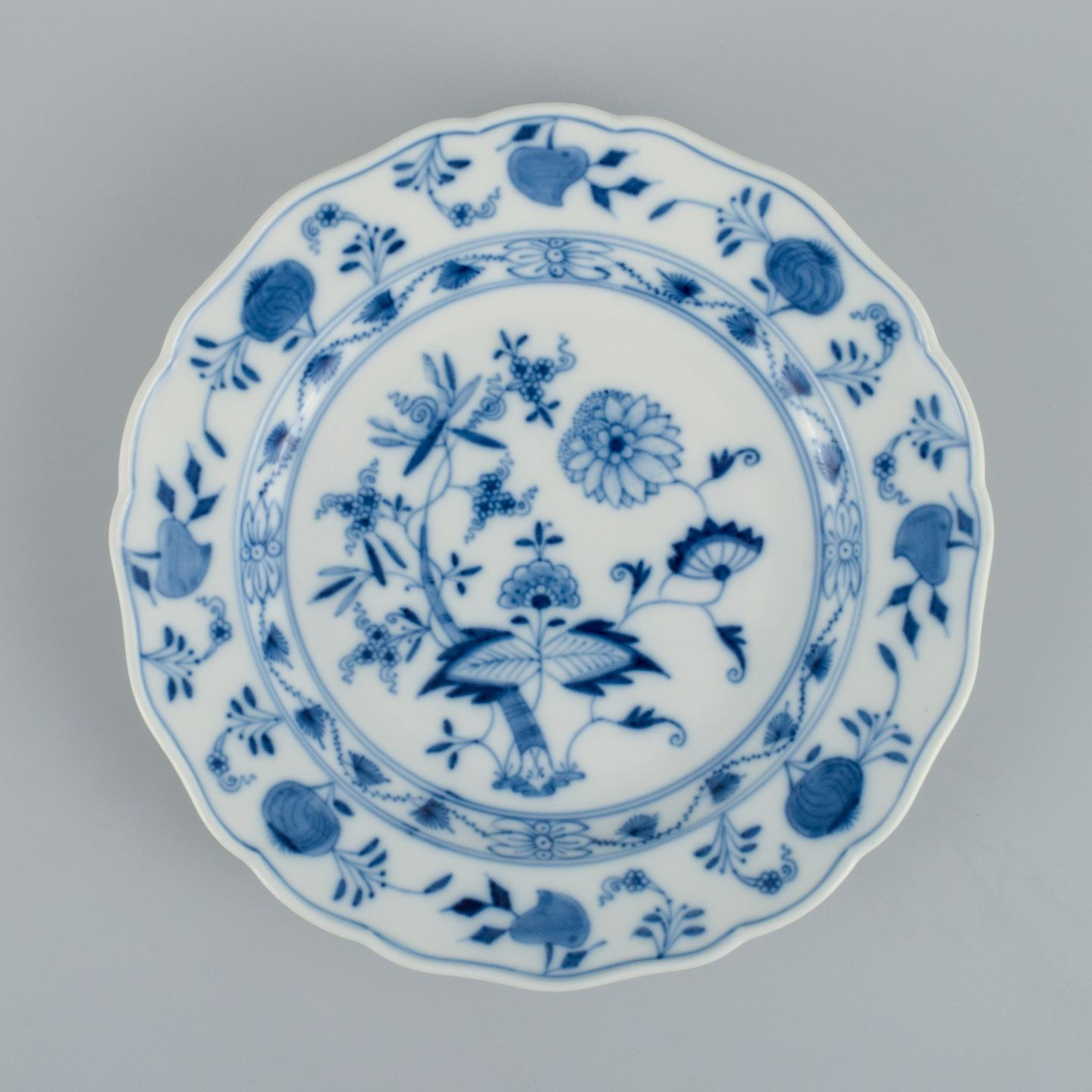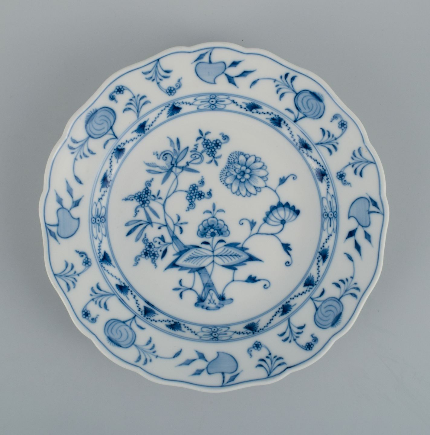 Meissen, et sæt på seks løgmønstret middagstallerkner. Ca. 1900. Tredje sortering. I perfekt stand. Stemplet. Mål: D 25,0 x H 3,0 - 3,5 cm.