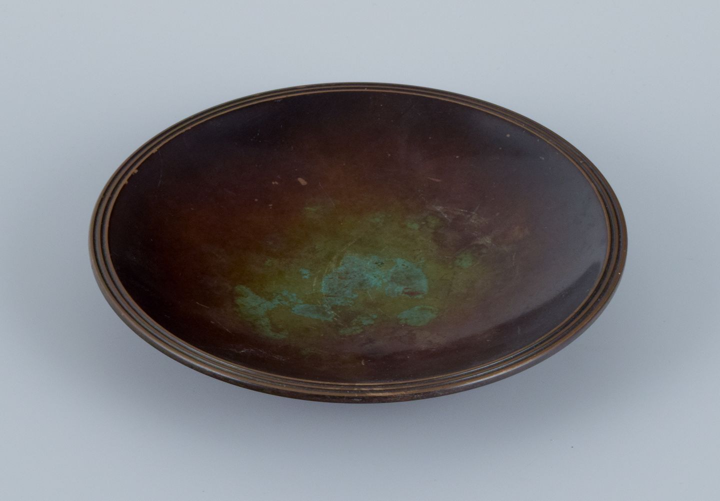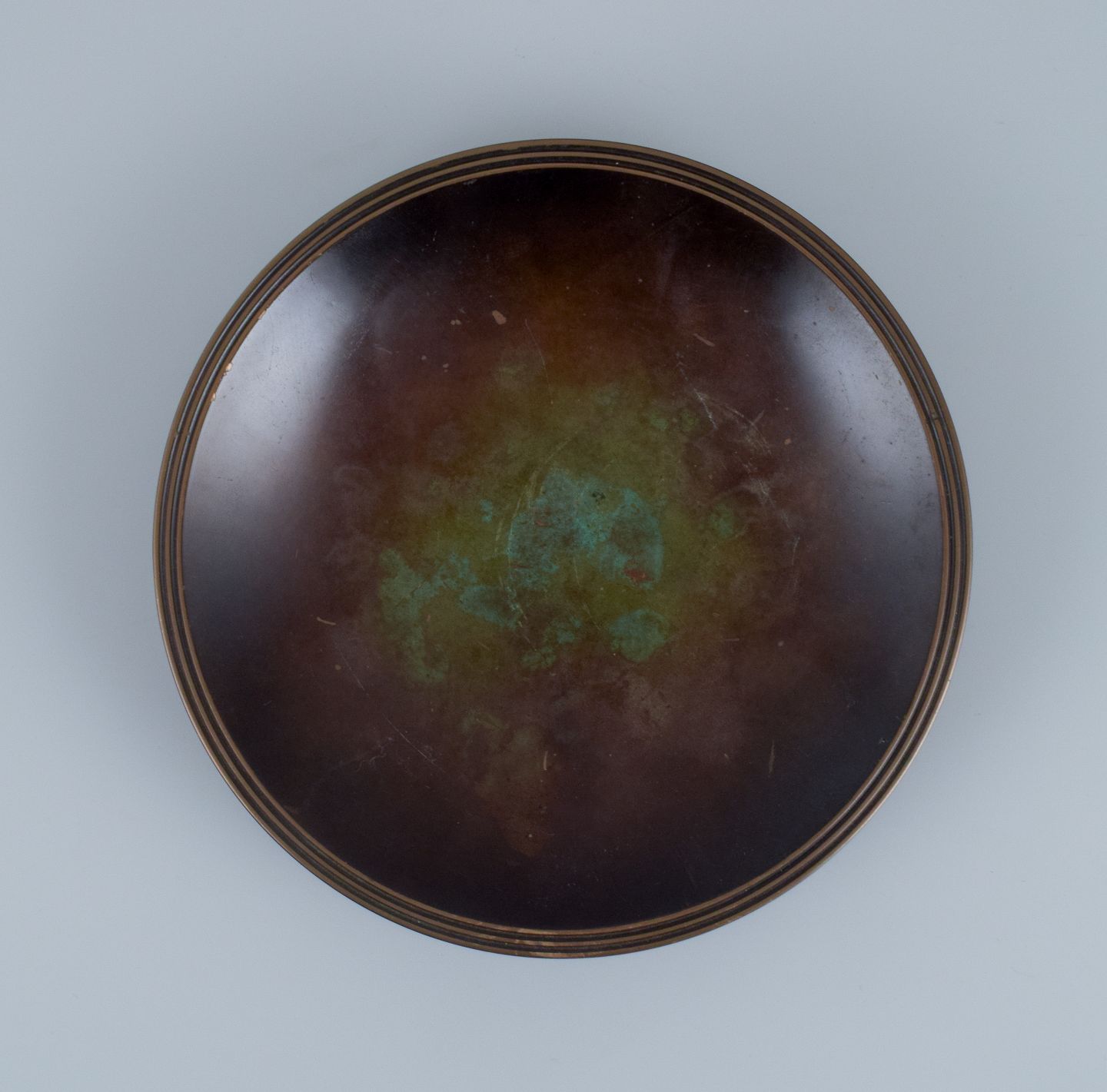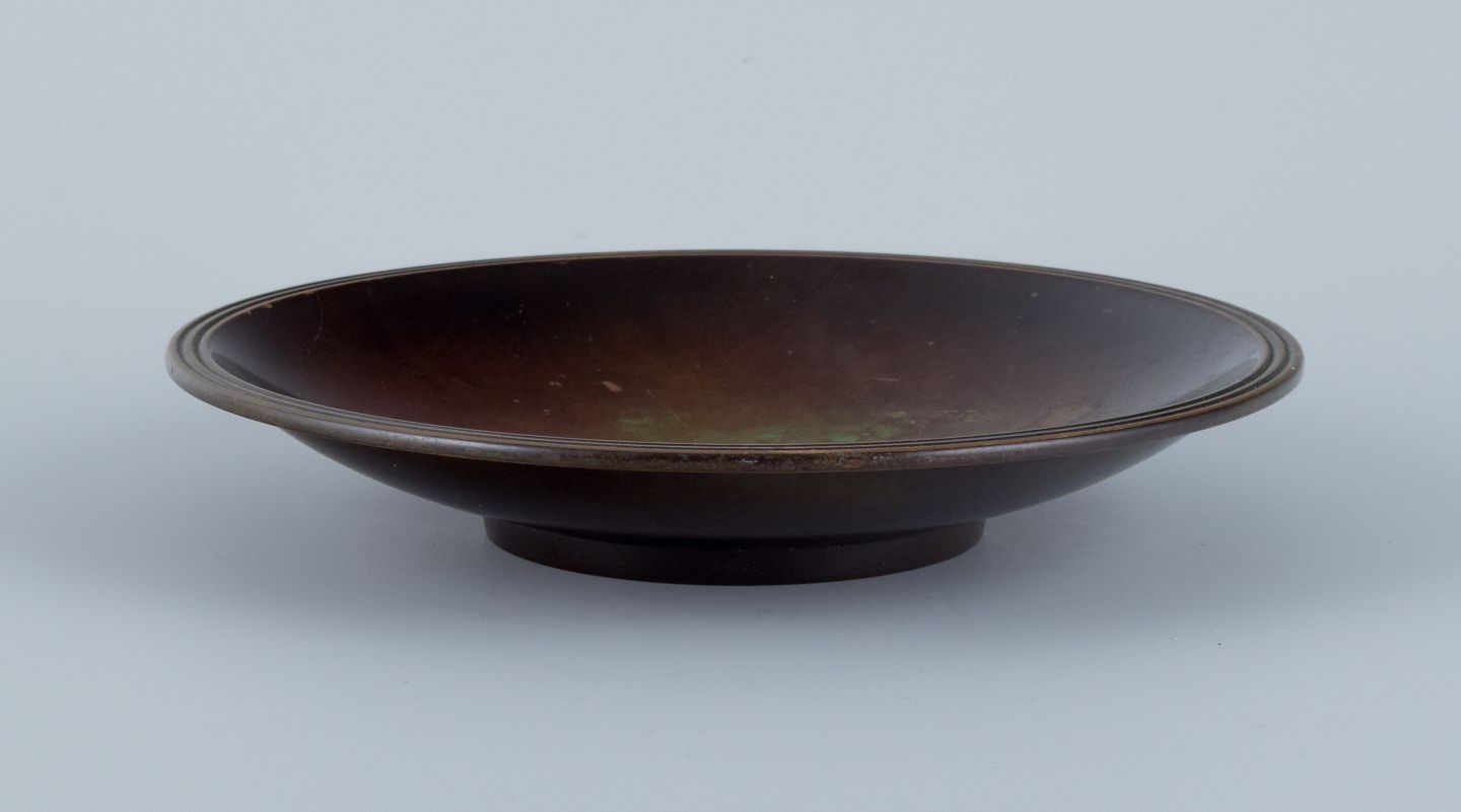 Just Andersen, art deco bronze dish with beautiful patination. 1930s. Model B1775 In perfect condition. Marked. Dimensions: D 16.5 x H 3.0 cm