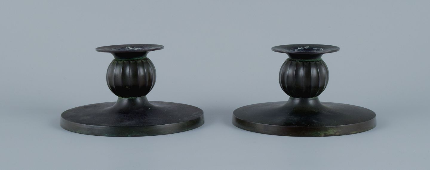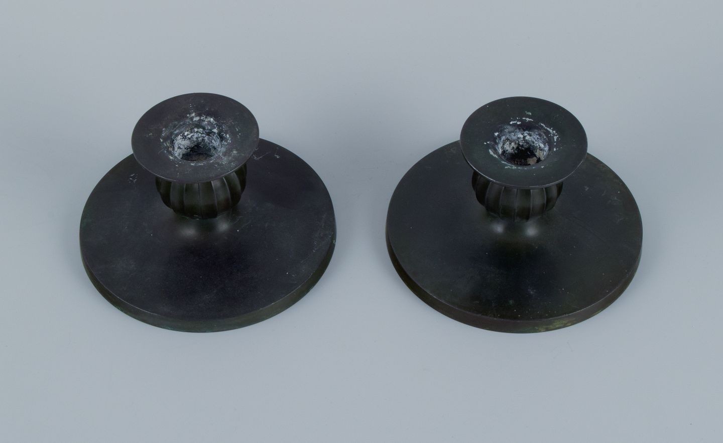 Just Andersen, a pair of Art Deco stands in disco metal. 1940s. Model number 1606. Marked. In good condition, traces of use and some scratches. Dimensions: D 12.5 x H 7.0 cm.