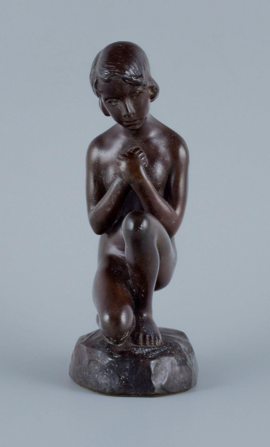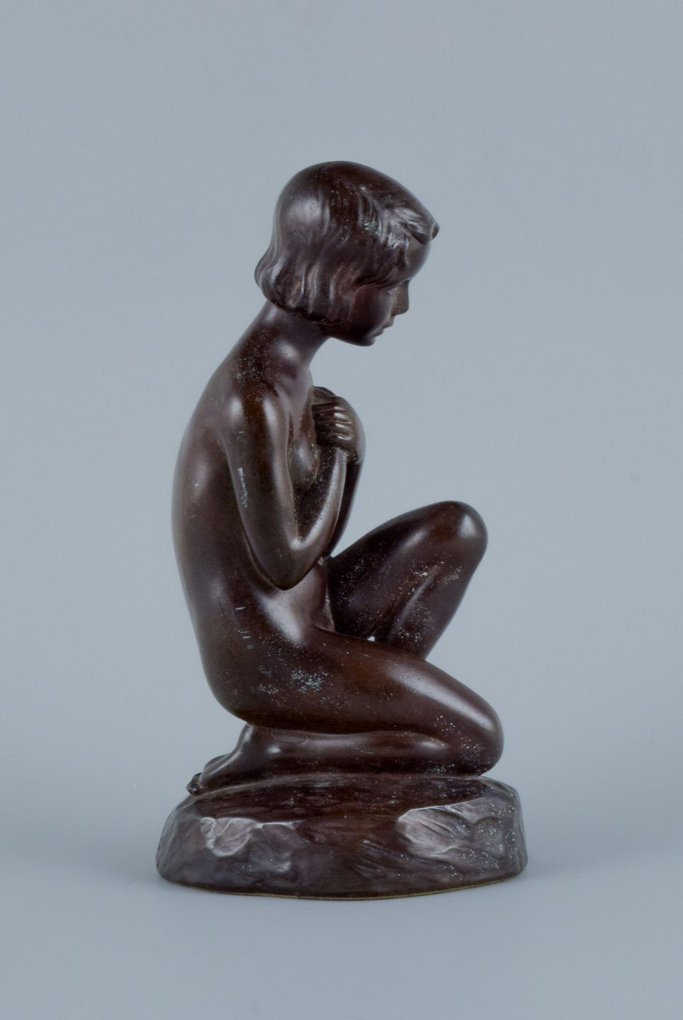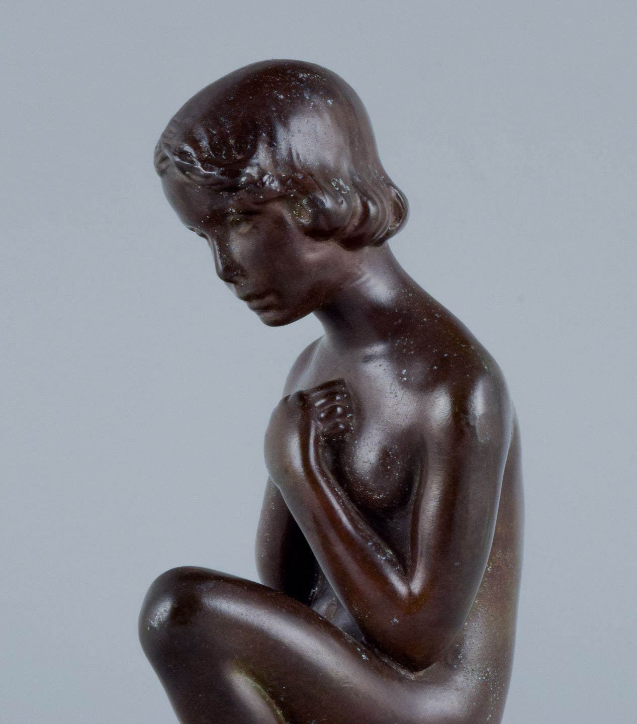 Borch for Just Andersen. Art Deco sculpture of young nude woman. In good condition with minor signs of use. Excellent patina. 1940s. Model number D2017 Marked. Dimensions: H 17.0 x W 9.0 x D 6.0 cm.