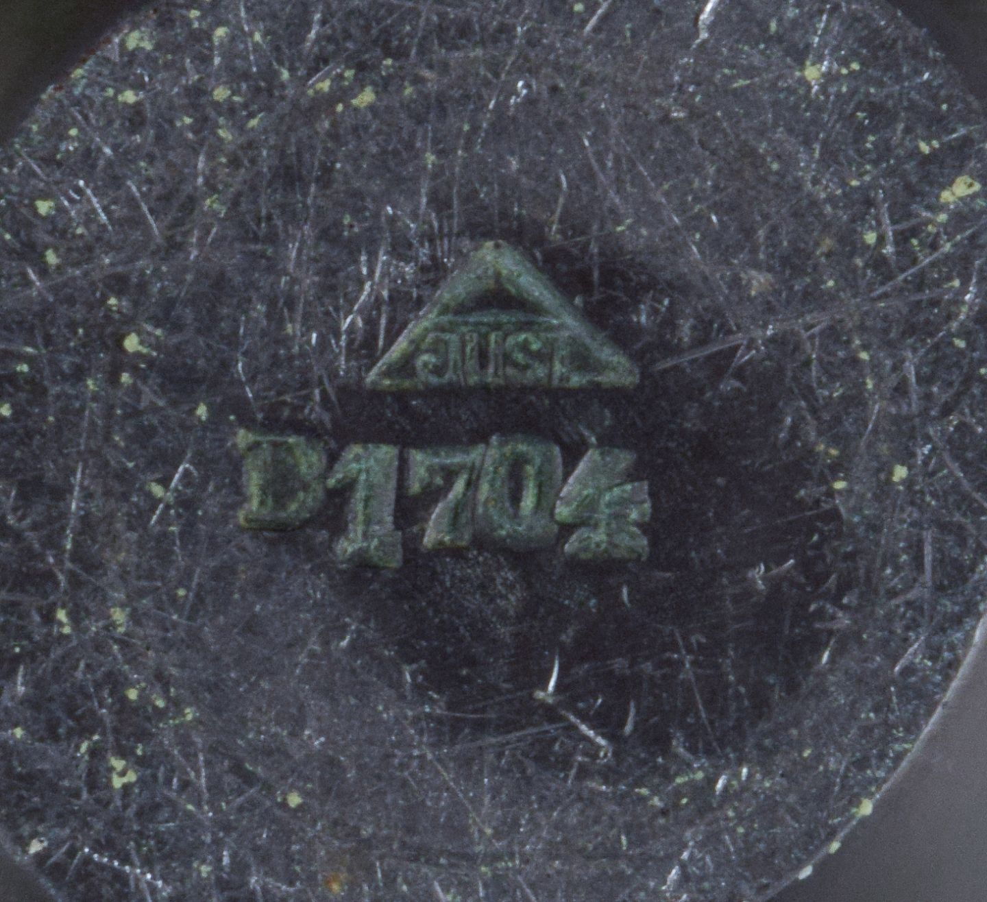 Just Andersen. Lille Art Deco vase i diskometal. I flot stand. 1940’erne. Modelnummer D1704 Stemplet. Mål: H 6,5 x L 7,0 cm.