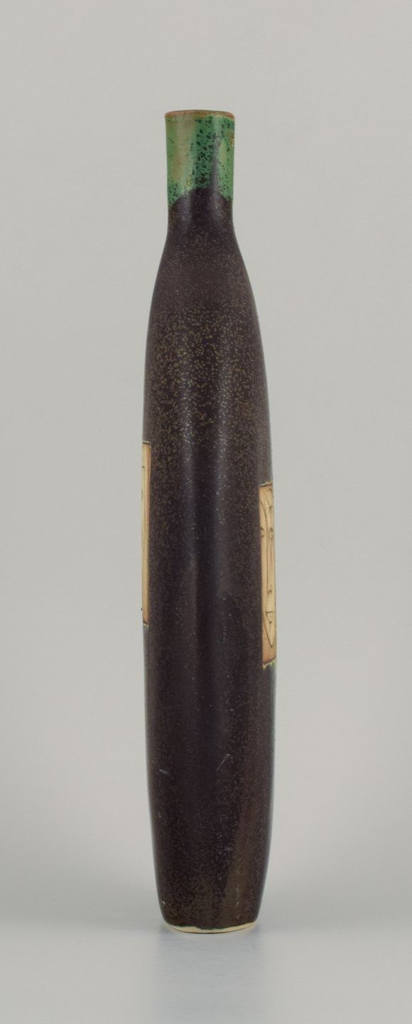 Pirjo Nylander, Finnish ceramist, tall unique ceramic vase with motif of a woman's face. Approx. 1960s/70s. Signed. In excellent condition. Dimensions: H 37.0 x W 16.0 cm.