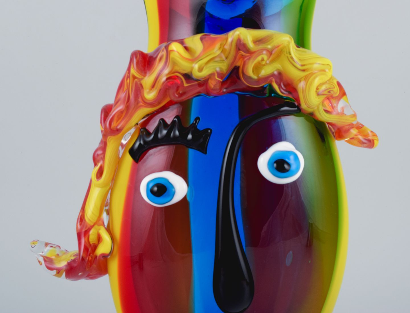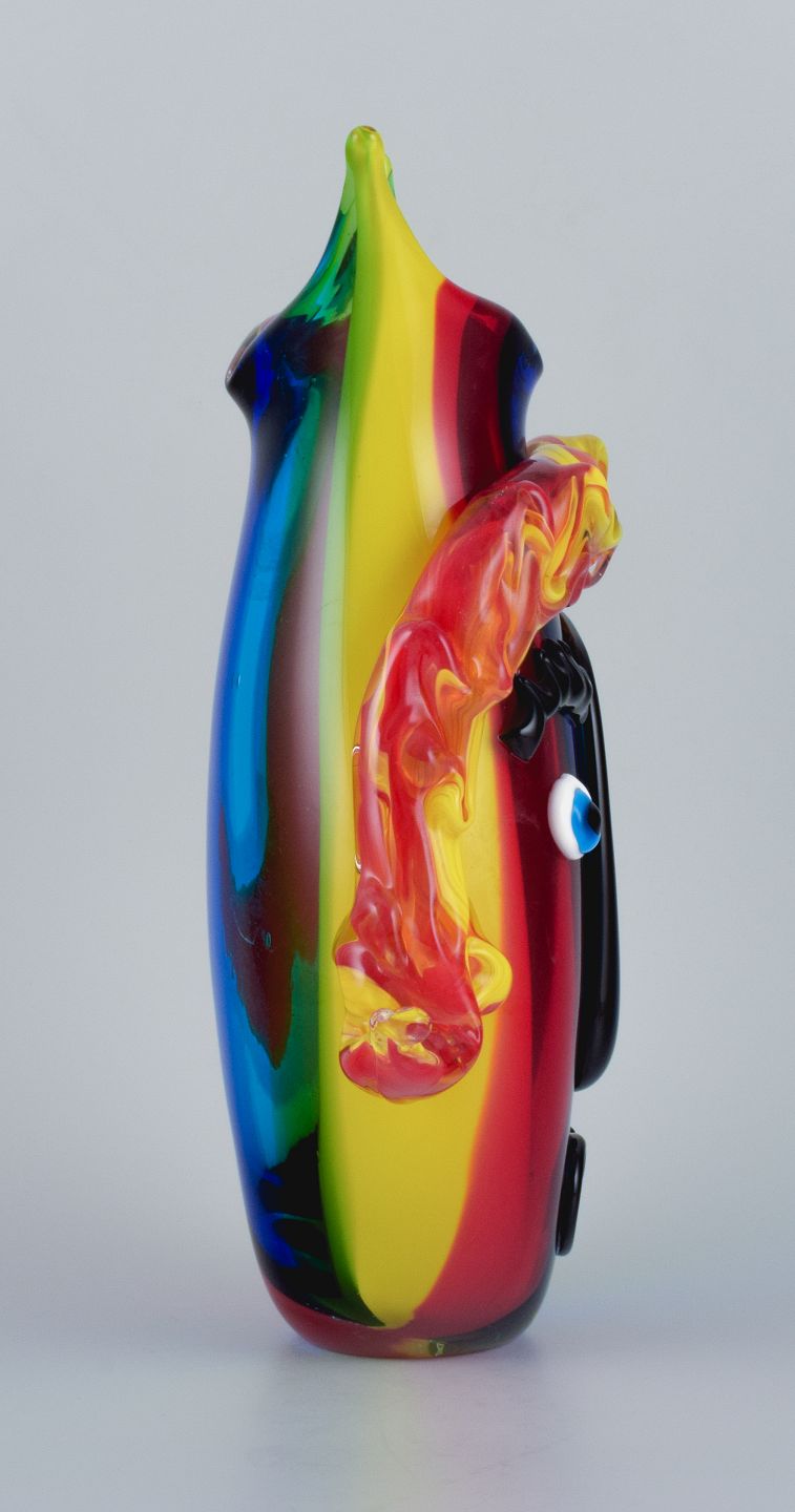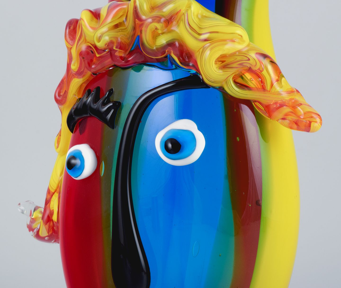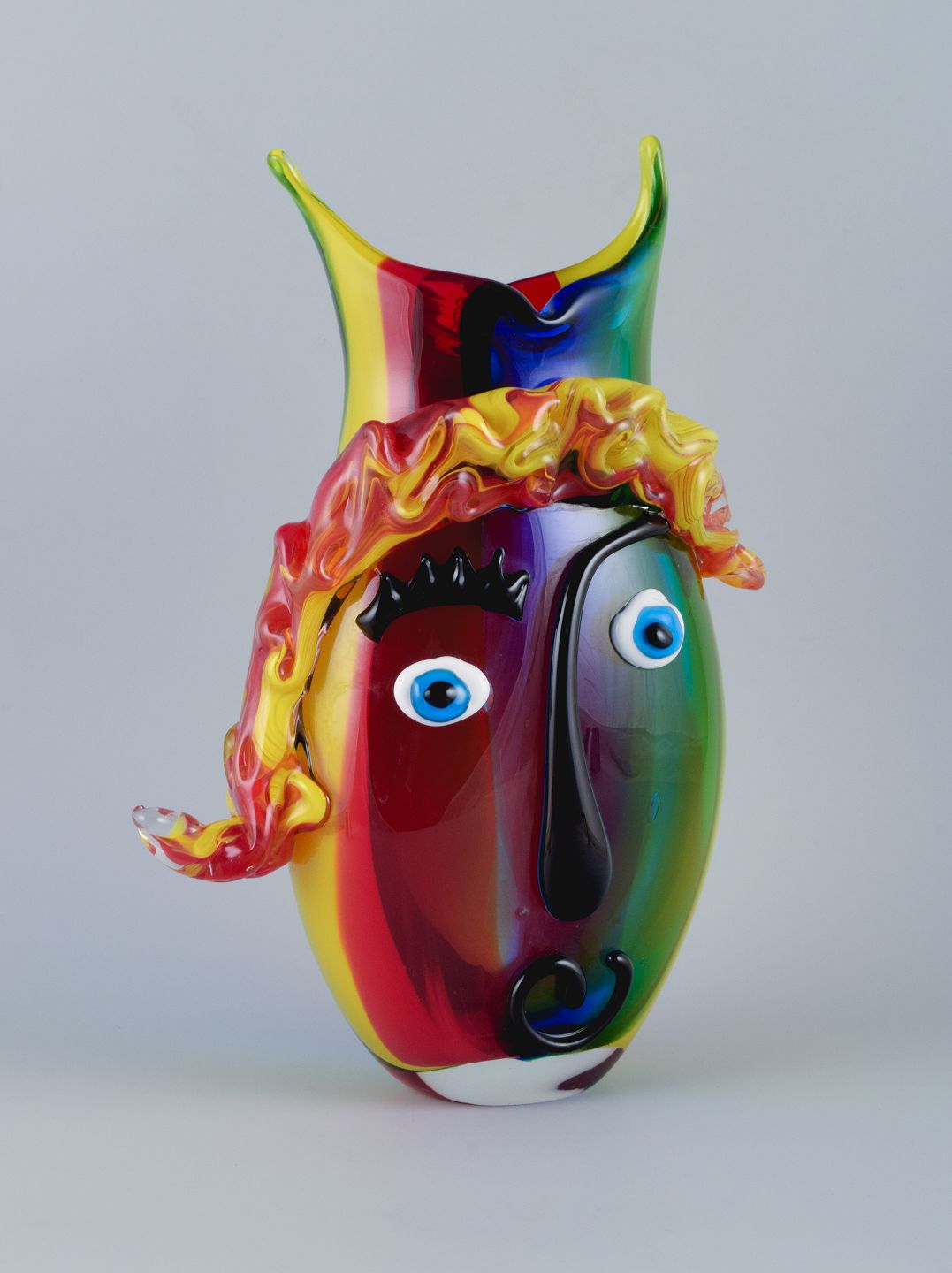 Stor vase i Picasso stil i farverigt mundblæst kunstglas.