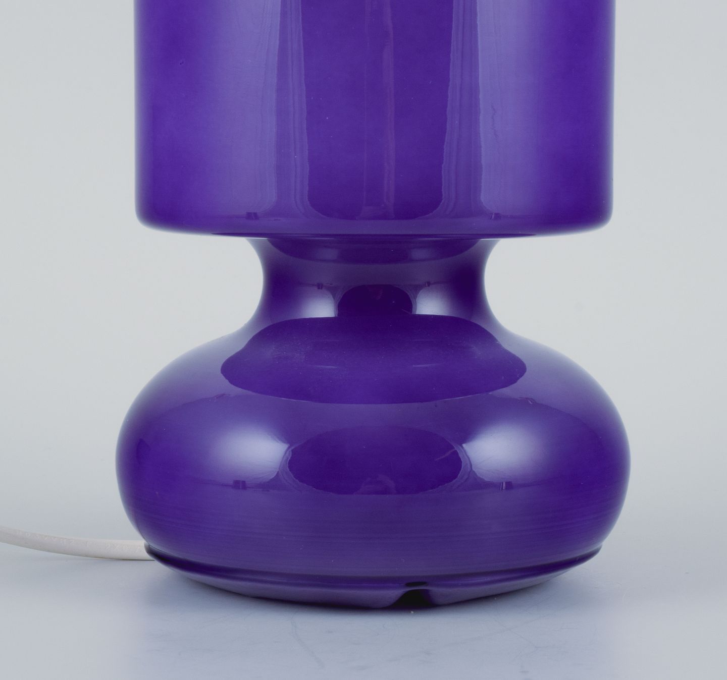 Scandinavian designer, table lamp in purple glass. Late 1900s. Handmade. Dimensions: H 25 x D 13.0 cm. Wire approx. 200 cm. with switch.